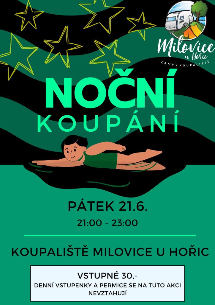 Noční koupání začíná již tento pátek od 21:00 hodin. Vstupné 30,- Kč