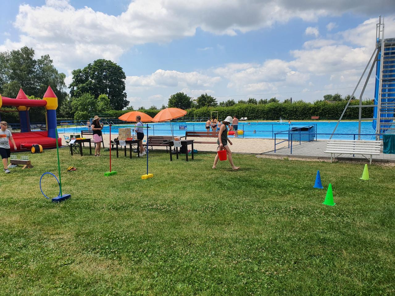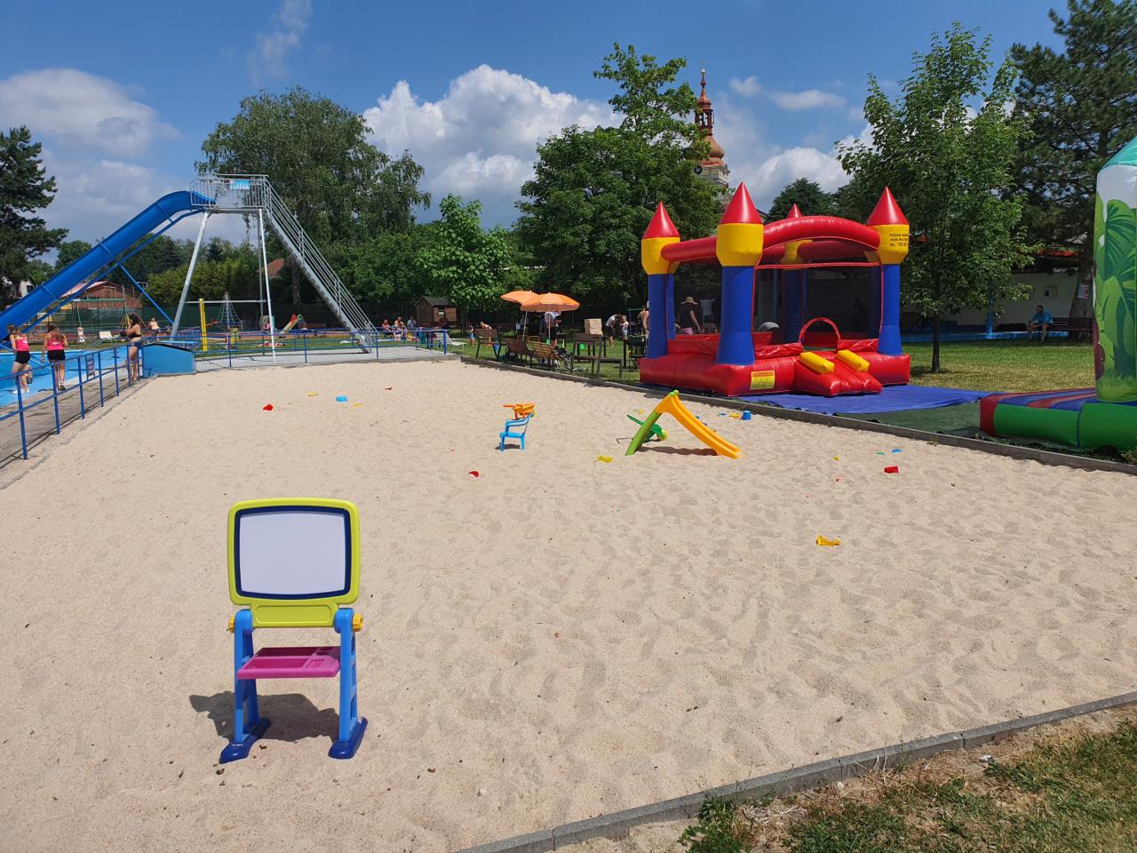Areál koupaliště nabízí bohaté sportovní vyžití i klid pro relaxaci. K dispozici je plavecký bazén s obří skluzavkou a skokánkem.