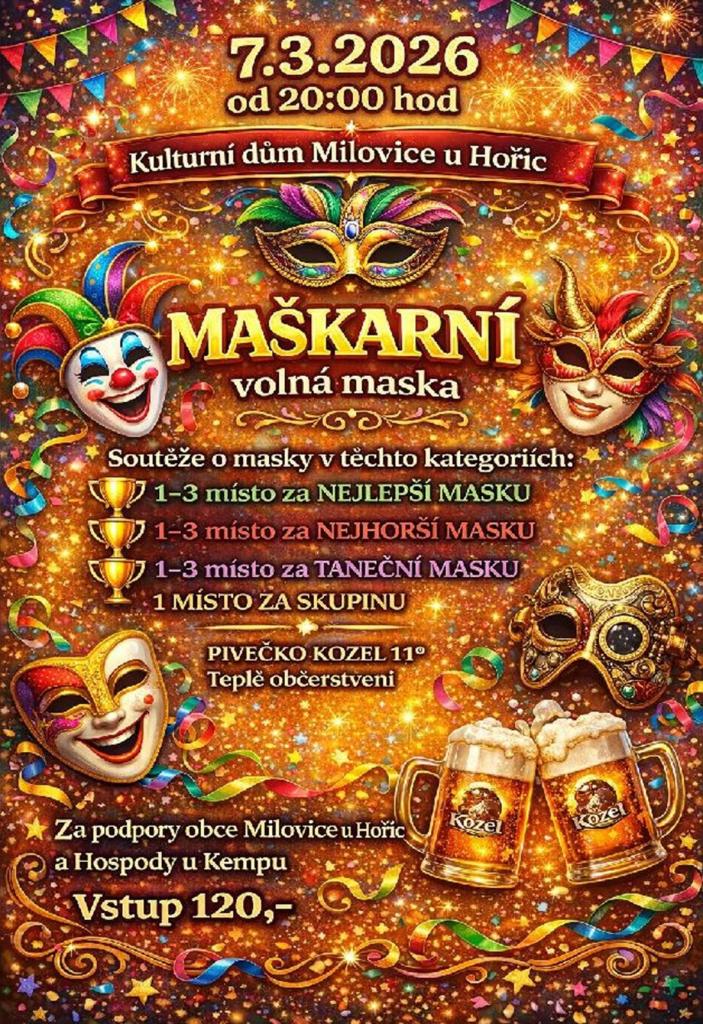 Přijďte oslavit večer plný tance, zábavy a tajemství! Oblékněte si svůj nejzajímavější, nejzábavnější nebo nejneobvyklejší kostým a připravte se na nezapomenutelnou noc.