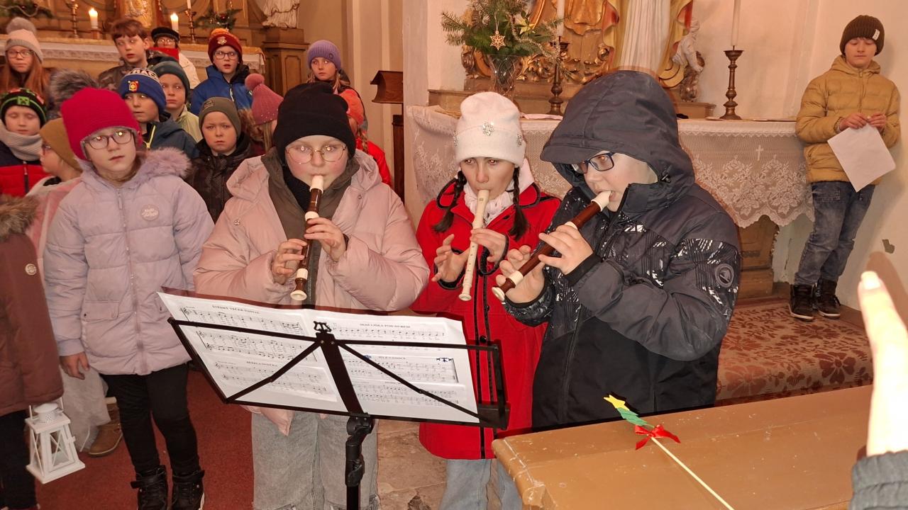 V úterý 16.12.2025 žáci místní základní školy předvedli v kostele pásmo ,, Vánoční koledování". Foto P. Balihar