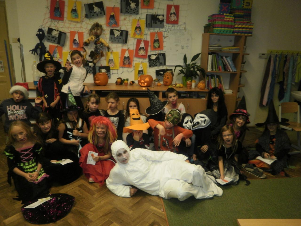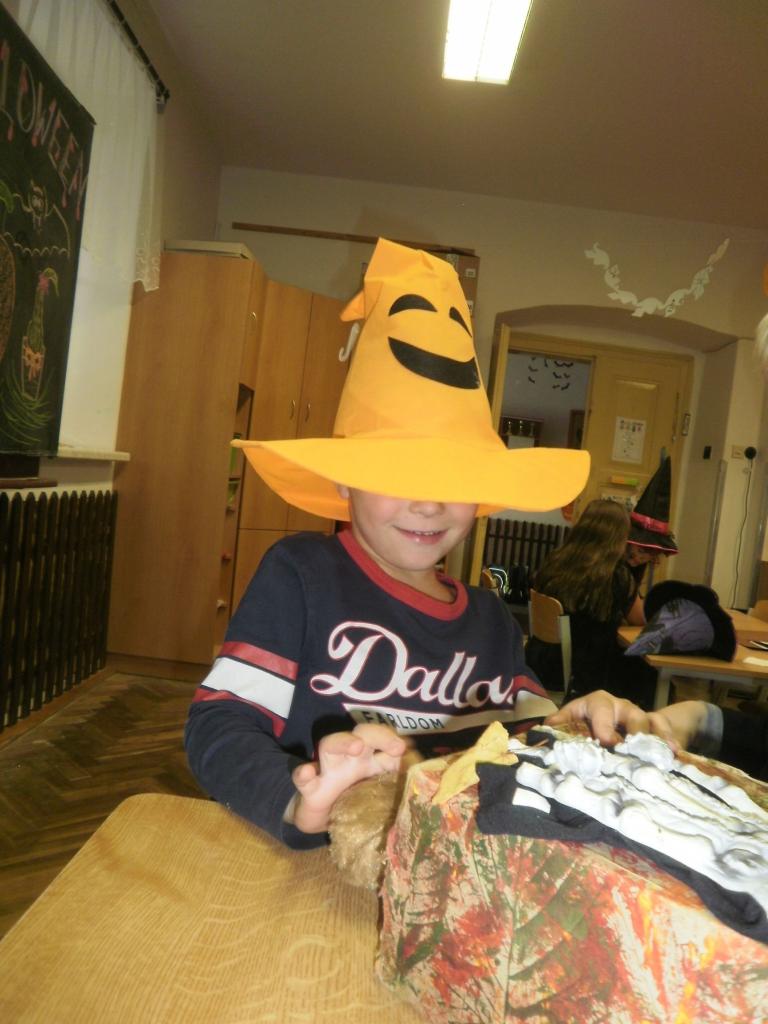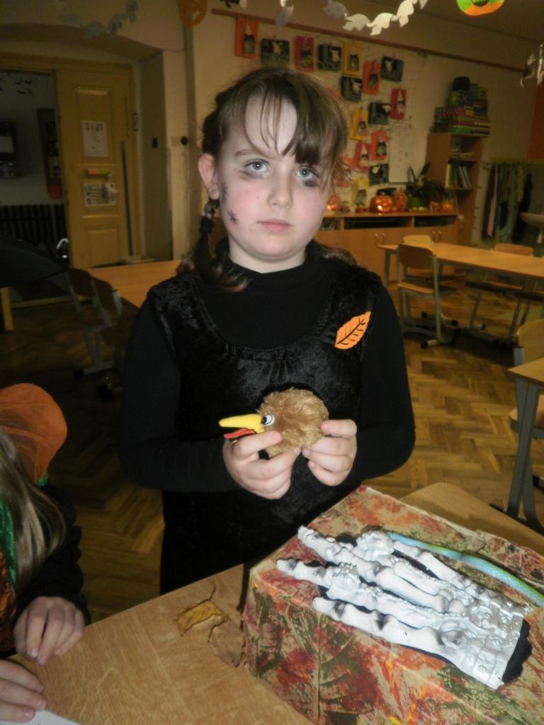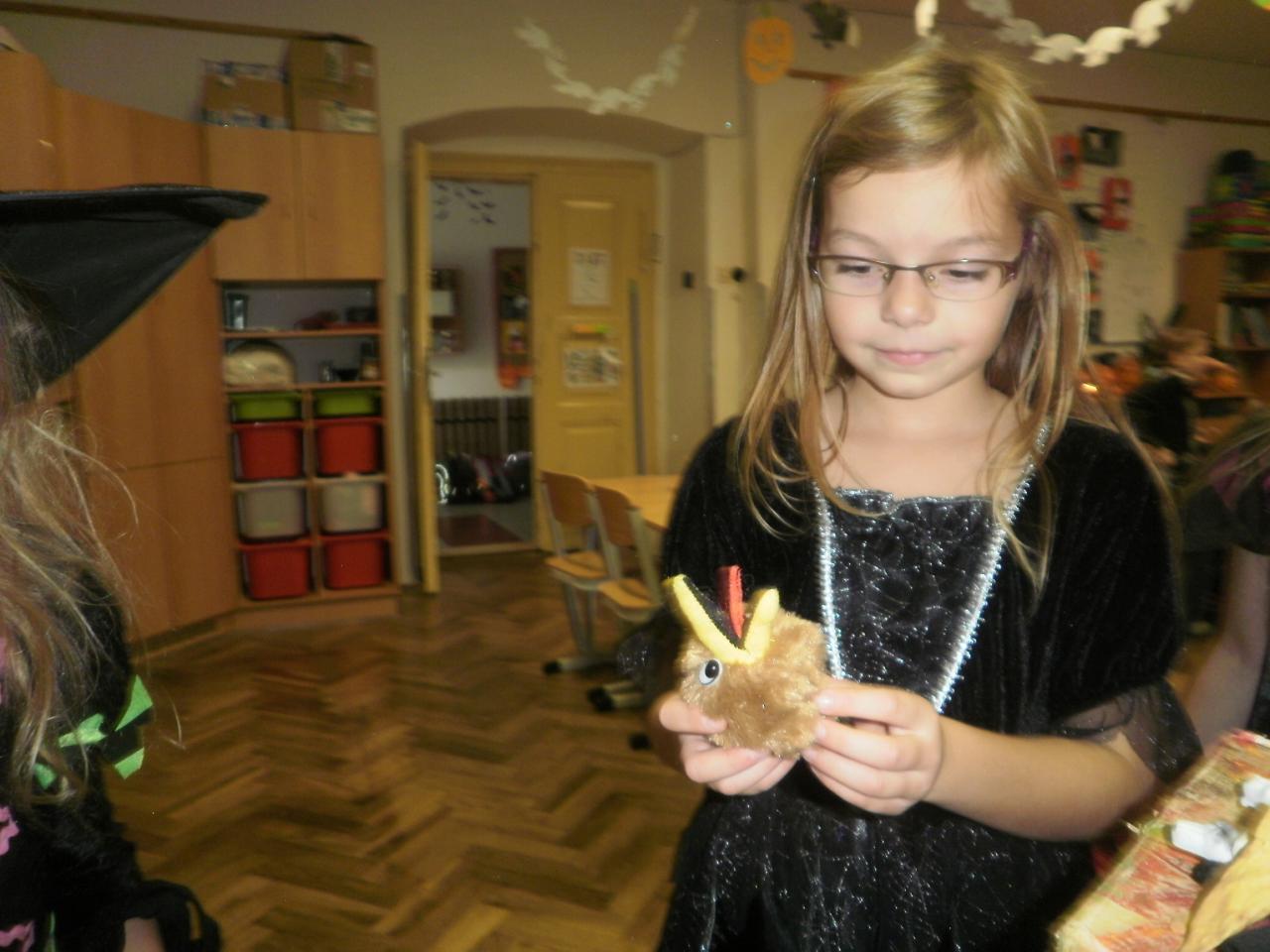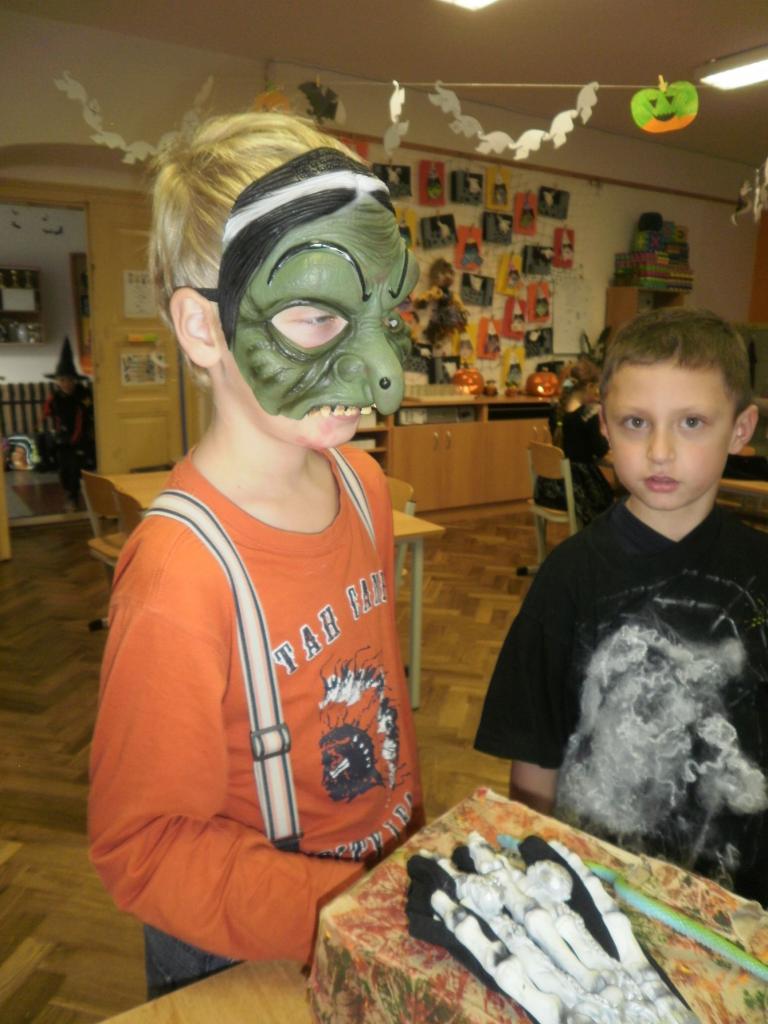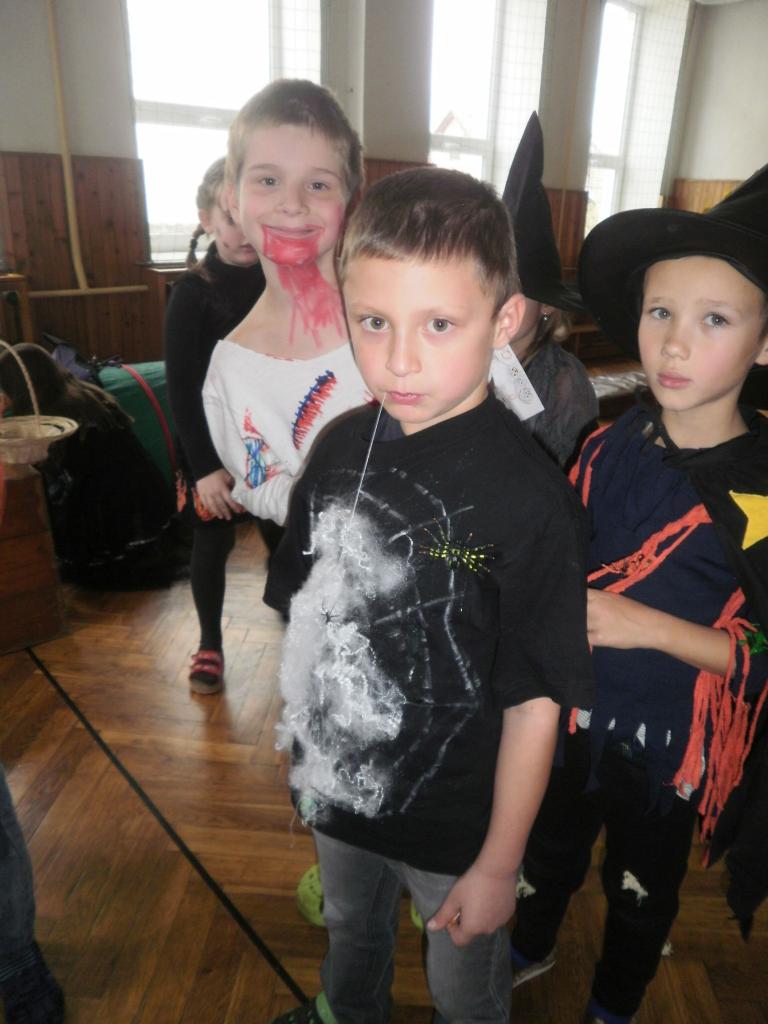 V úterý jsme si připomněli keltský svátek Halloween. I když v naší zemi není tradičním svátkem, odpoledne v maskách jsme si užili. Při vyprávění pověsti O Jackovi jsme se dozvěděli, jak tento svátek vznikl. Zabavili jsme se plněním různých úkolů. Hráli jsme dýňové kuželky, hadím jazykem namotávali bonbón do pusy, po překonání překážkové dráhy jsme svoji účast potvrdili krvavým podpisem, hledali jsme ptačí hlavu do kouzelného lektvaru a skládali puzzle. Strašidláckým hlasováním jsme vybrali Miss strašidlo. Nechybělo občerstvení v podobě upíří krve, pavoučí sliny a žabího lektvaru, doplněné dýňovými hlavičkami.