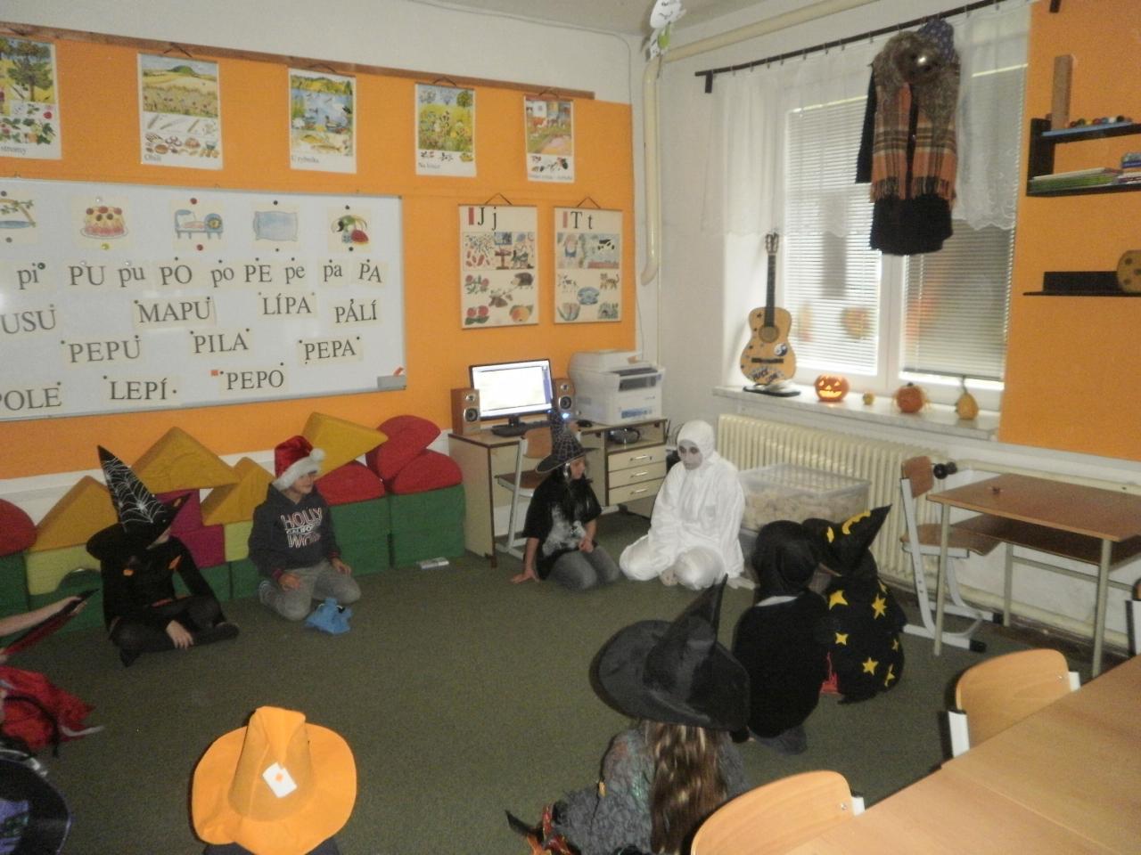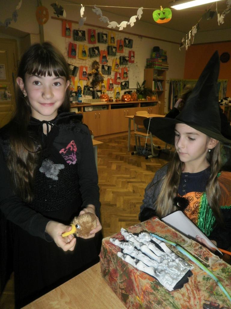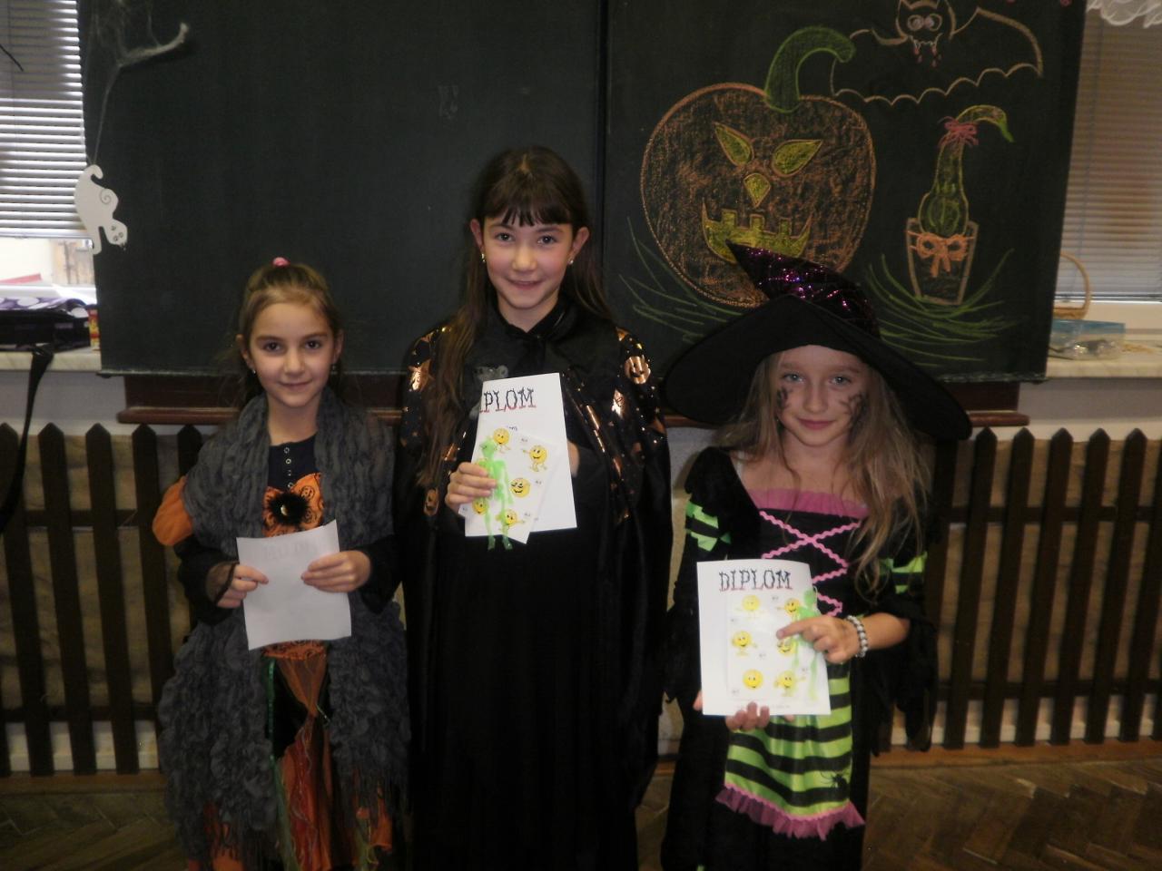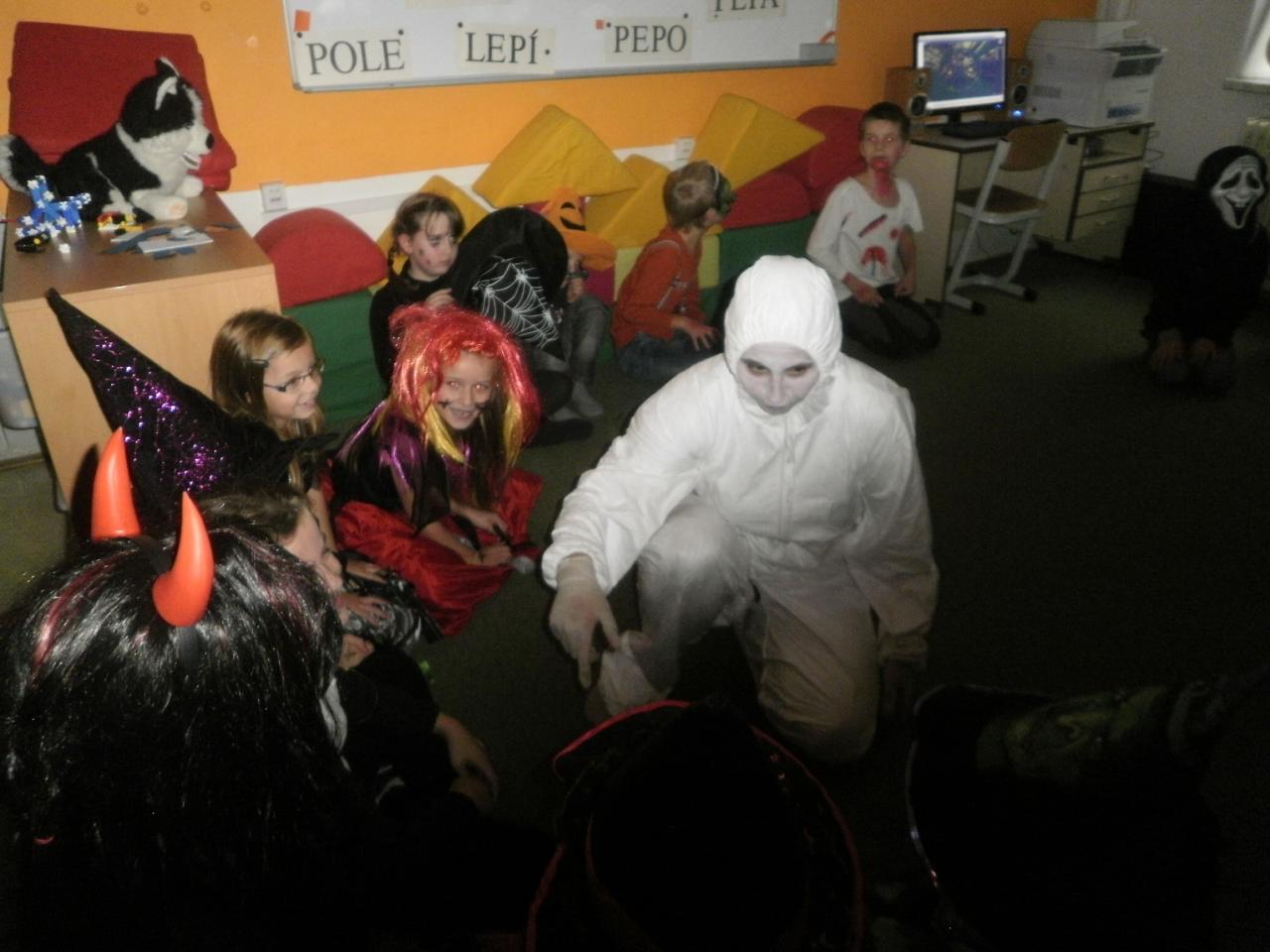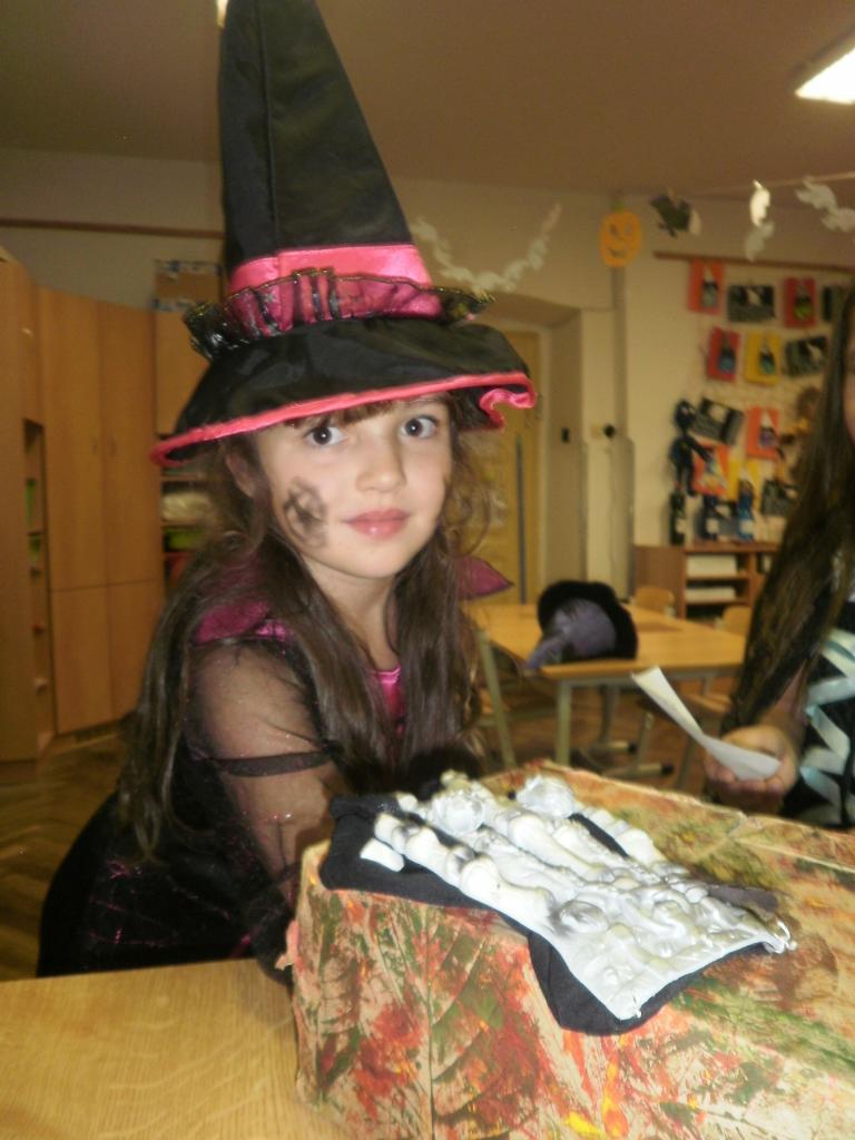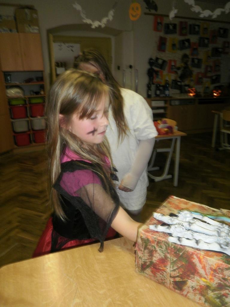 V úterý jsme si připomněli keltský svátek Halloween. I když v naší zemi není tradičním svátkem, odpoledne v maskách jsme si užili. Při vyprávění pověsti O Jackovi jsme se dozvěděli, jak tento svátek vznikl. Zabavili jsme se plněním různých úkolů. Hráli jsme dýňové kuželky, hadím jazykem namotávali bonbón do pusy, po překonání překážkové dráhy jsme svoji účast potvrdili krvavým podpisem, hledali jsme ptačí hlavu do kouzelného lektvaru a skládali puzzle. Strašidláckým hlasováním jsme vybrali Miss strašidlo. Nechybělo občerstvení v podobě upíří krve, pavoučí sliny a žabího lektvaru, doplněné dýňovými hlavičkami.