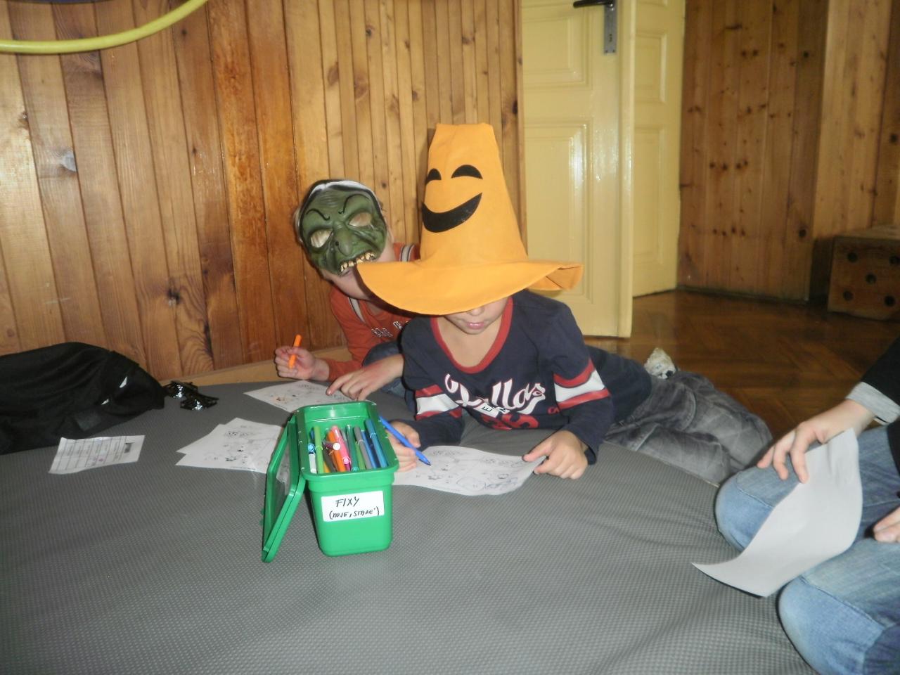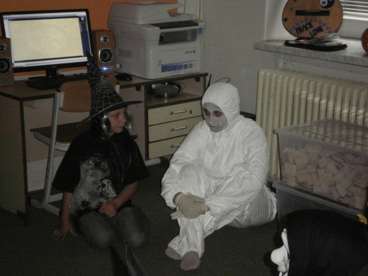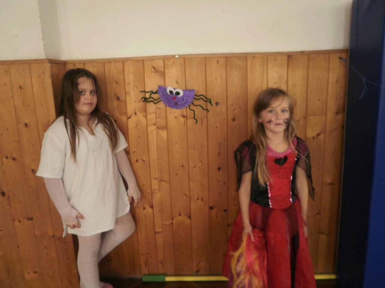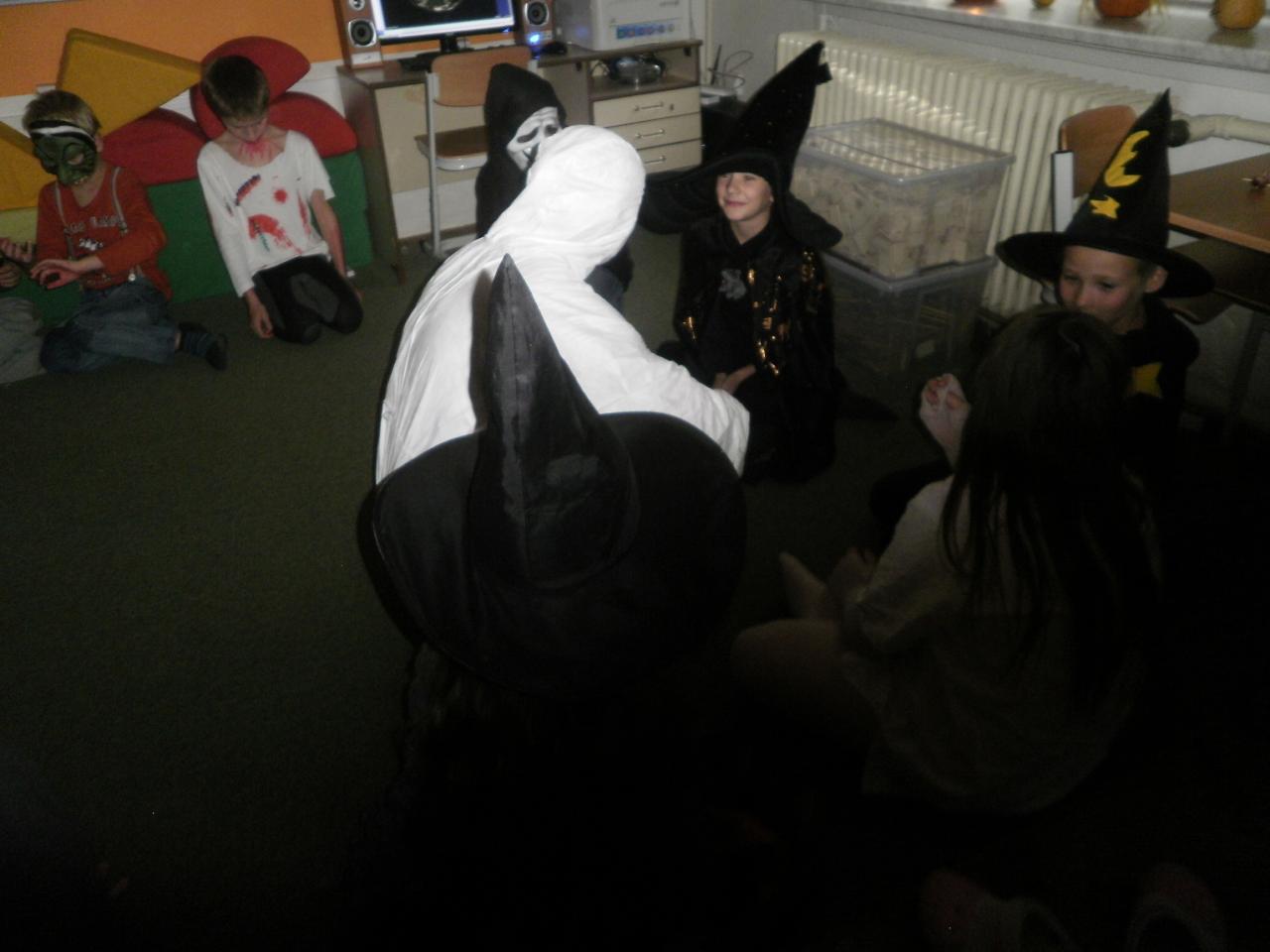 V úterý jsme si připomněli keltský svátek Halloween. I když v naší zemi není tradičním svátkem, odpoledne v maskách jsme si užili. Při vyprávění pověsti O Jackovi jsme se dozvěděli, jak tento svátek vznikl. Zabavili jsme se plněním různých úkolů. Hráli jsme dýňové kuželky, hadím jazykem namotávali bonbón do pusy, po překonání překážkové dráhy jsme svoji účast potvrdili krvavým podpisem, hledali jsme ptačí hlavu do kouzelného lektvaru a skládali puzzle. Strašidláckým hlasováním jsme vybrali Miss strašidlo. Nechybělo občerstvení v podobě upíří krve, pavoučí sliny a žabího lektvaru, doplněné dýňovými hlavičkami.