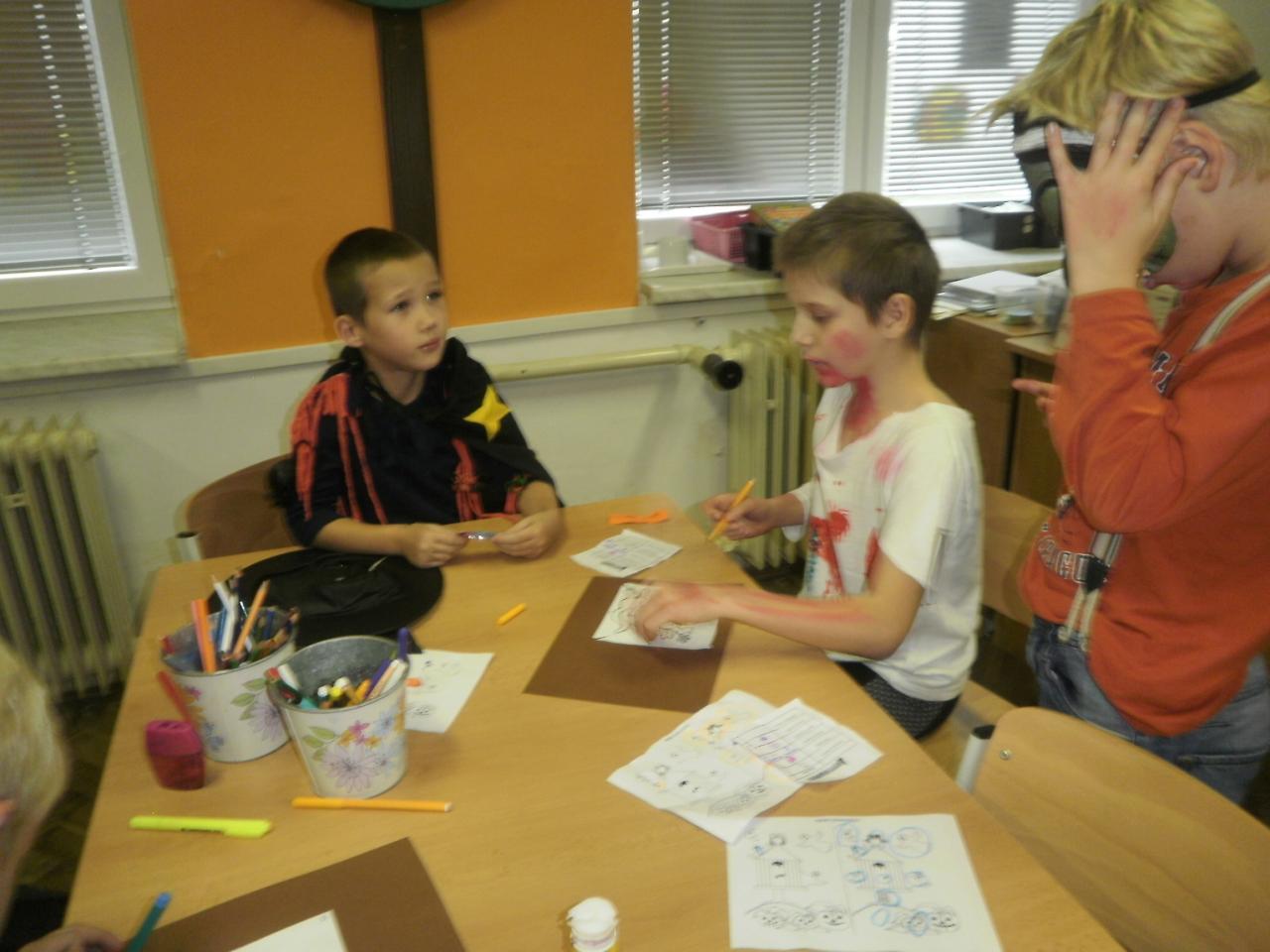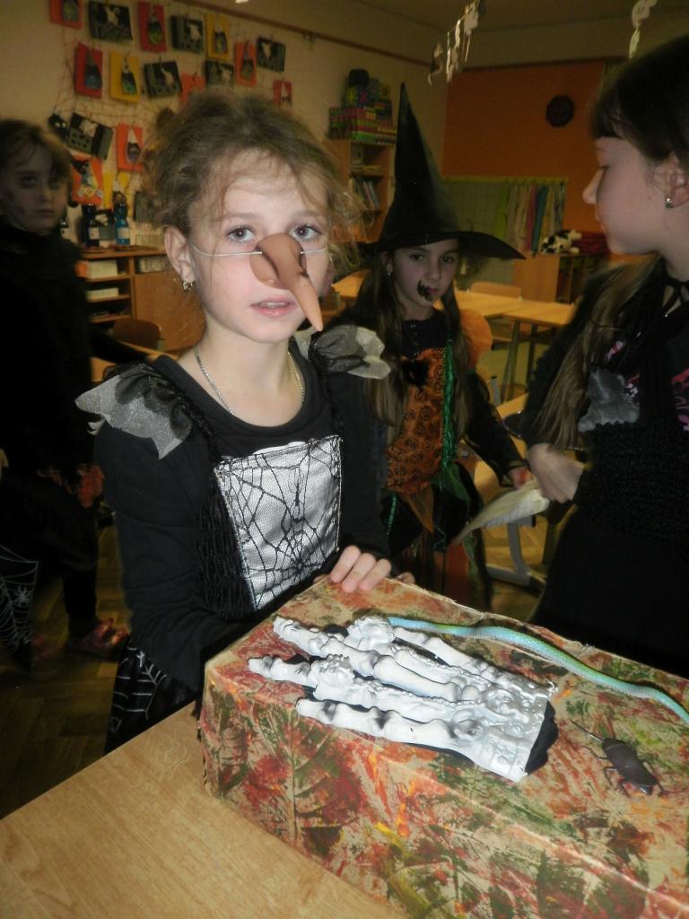 V úterý jsme si připomněli keltský svátek Halloween. I když v naší zemi není tradičním svátkem, odpoledne v maskách jsme si užili. Při vyprávění pověsti O Jackovi jsme se dozvěděli, jak tento svátek vznikl. Zabavili jsme se plněním různých úkolů. Hráli jsme dýňové kuželky, hadím jazykem namotávali bonbón do pusy, po překonání překážkové dráhy jsme svoji účast potvrdili krvavým podpisem, hledali jsme ptačí hlavu do kouzelného lektvaru a skládali puzzle. Strašidláckým hlasováním jsme vybrali Miss strašidlo. Nechybělo občerstvení v podobě upíří krve, pavoučí sliny a žabího lektvaru, doplněné dýňovými hlavičkami.
