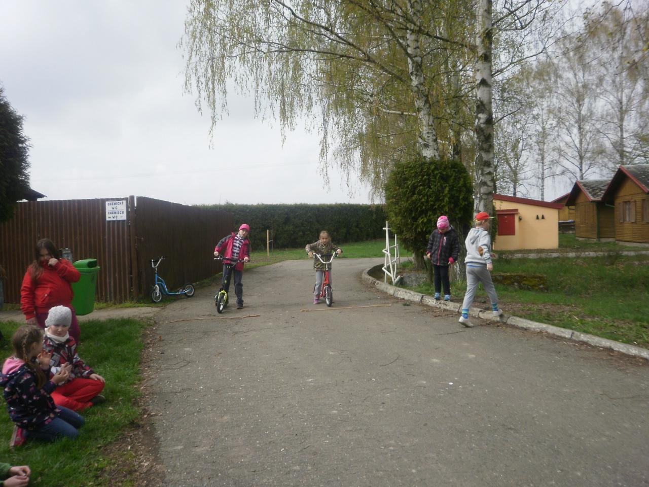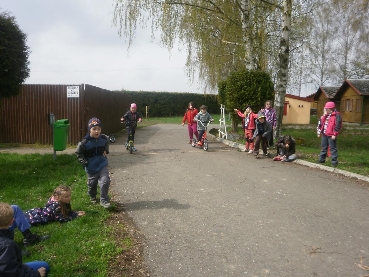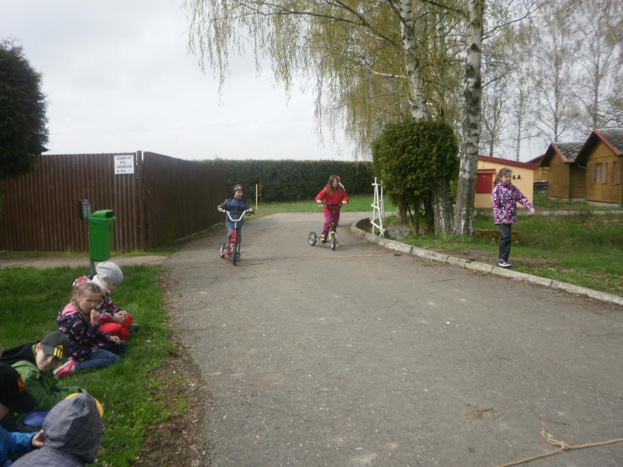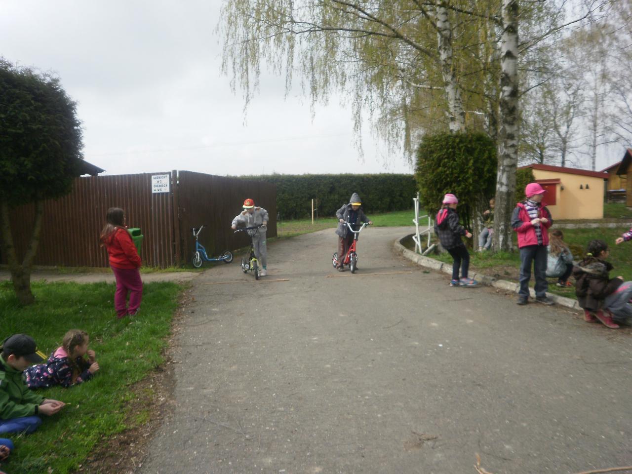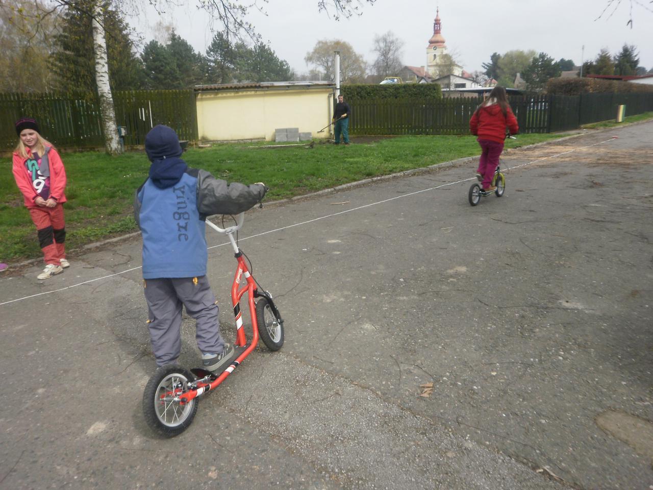 Díky panu Machkovi a dotačnímu programu Ústecké komunitní nadace jsme jako škola dostali dotaci na nákup sportovního vybavení. Tu jsme využili ke koupi tří koloběžek do školní družiny. Jen, co se udělalo hezky, uspořádali jsme koloběžkové závody. Soutěžili jsme v překážkové dráze a v krasojízdě do dálky.
