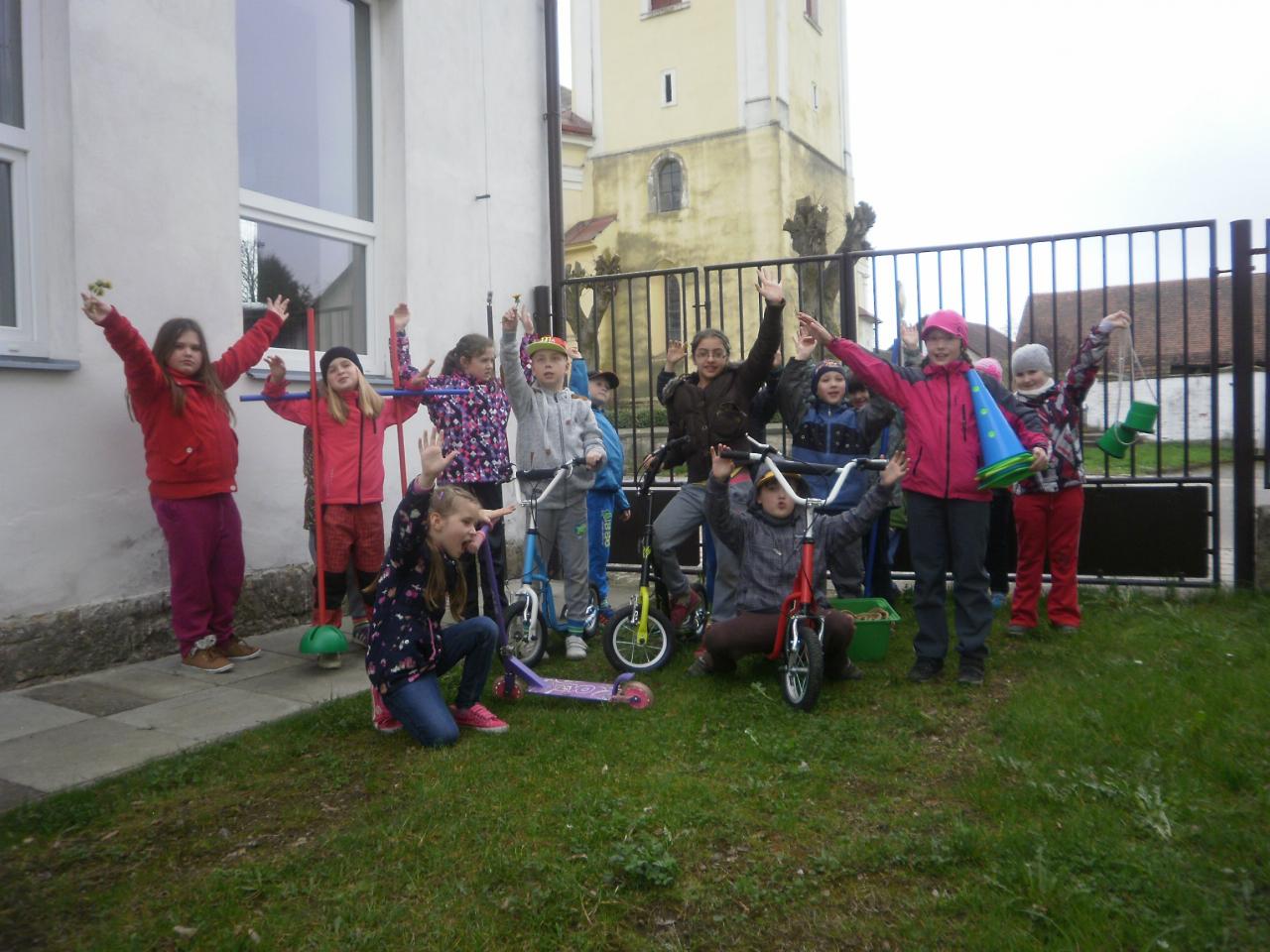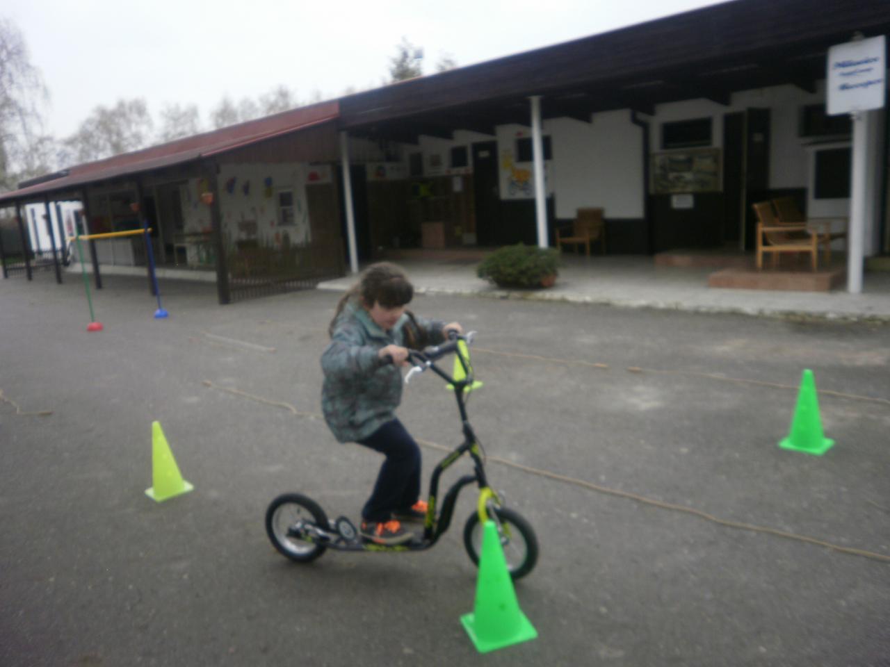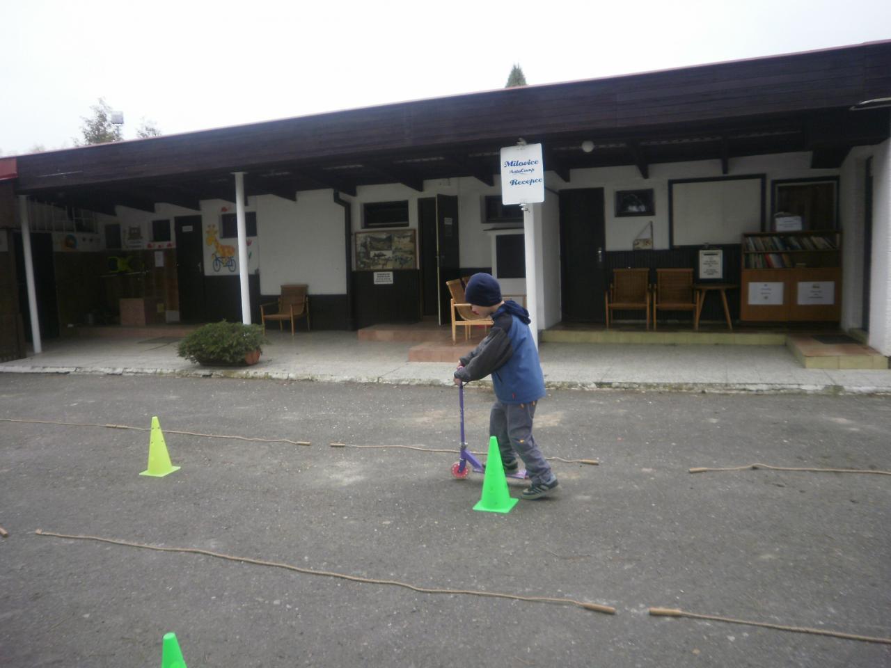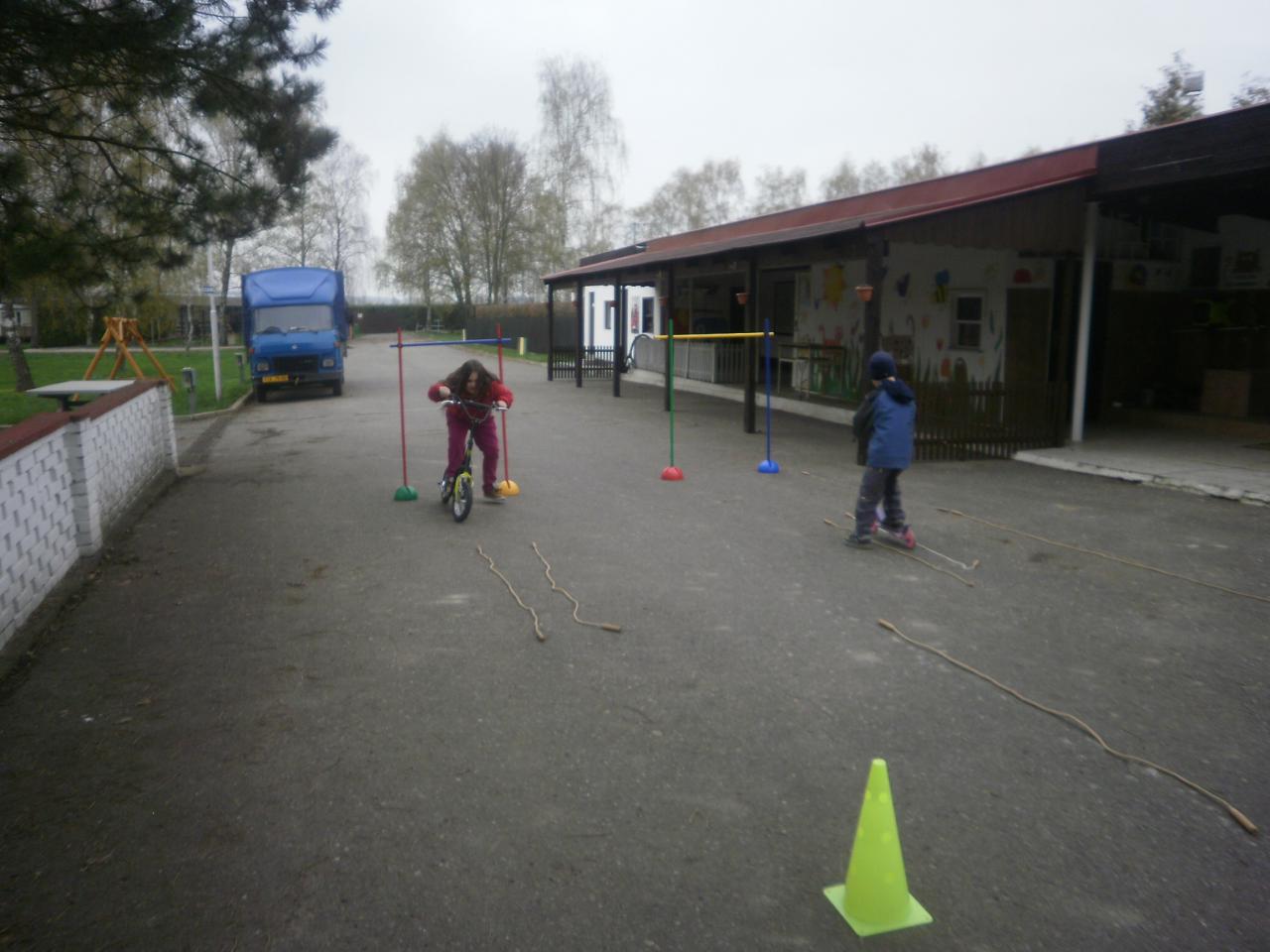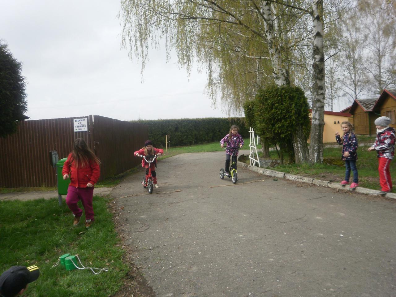 Díky panu Machkovi a dotačnímu programu Ústecké komunitní nadace jsme jako škola dostali dotaci na nákup sportovního vybavení. Tu jsme využili ke koupi tří koloběžek do školní družiny. Jen, co se udělalo hezky, uspořádali jsme koloběžkové závody. Soutěžili jsme v překážkové dráze a v krasojízdě do dálky.