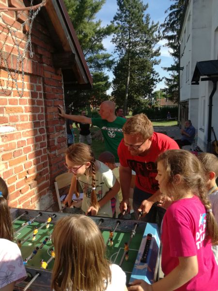 Na čtvrtek si naši malí piráti připravili malou oslavu Dne otců. Pro své tatínky si připravili malé občerstvení a společně si vyrobili dřevěné sovičky, slony nebo myšky. Rodinné týmy si užily zábavu při stolním fotbálku a v turnaji v šipkách. Radost a spokojenost září ze všech zúčastněných.