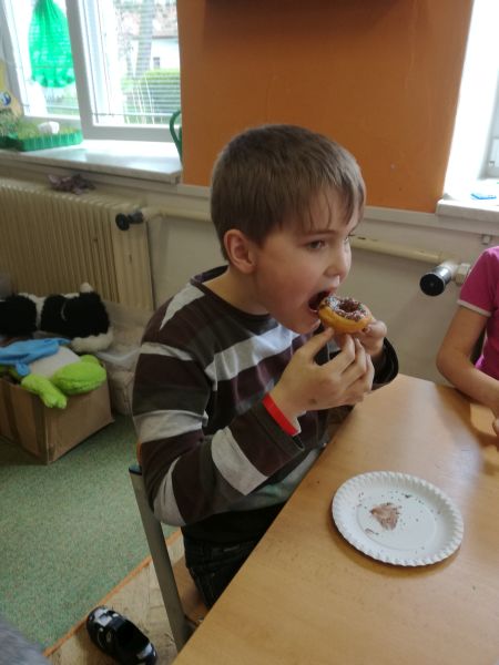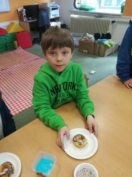 Při honbě za pokladem kapitána Borgessa se naši piráti dostali do USA. Aby ochutnali americký život, připravili si v odpolední družince tradiční sladký pokrm "donughts" - sladké koblížky s dírou uprostřed.