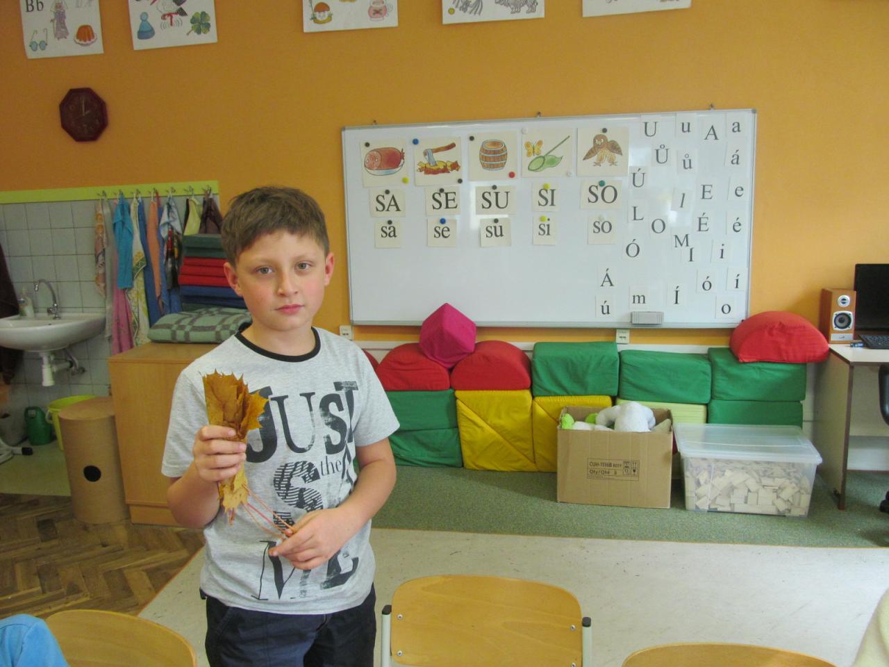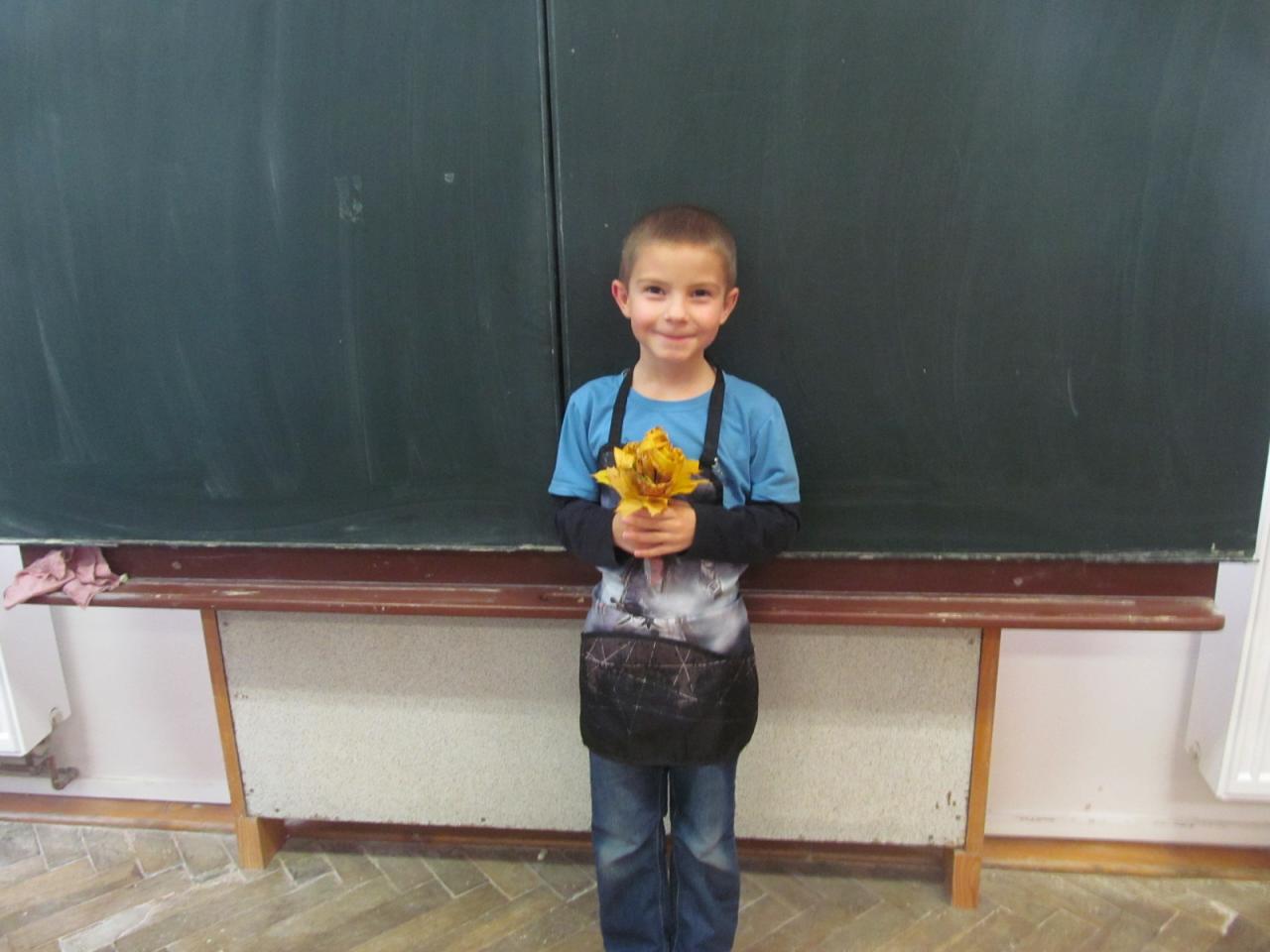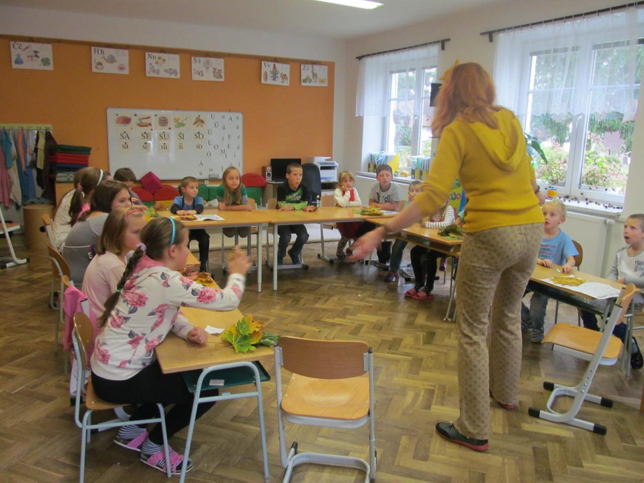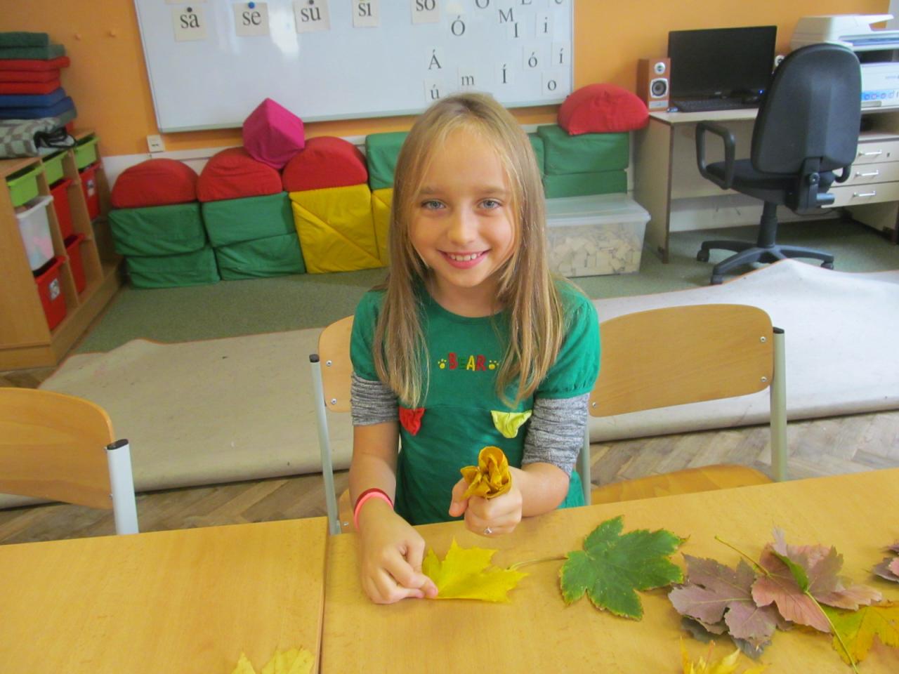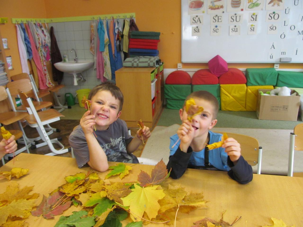 V rámci kroužku "Ruční práce" žáci vyráběli s paní Gembalovou z barevného podzimního listí kytice.