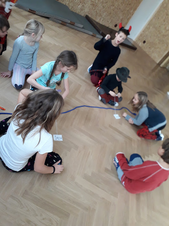 Odpoledne jsme si v družině moc užily. Děti si vytvořily masky, zasoutěžily. Jako správní čerti hrály karty a ochutnaly zelí.