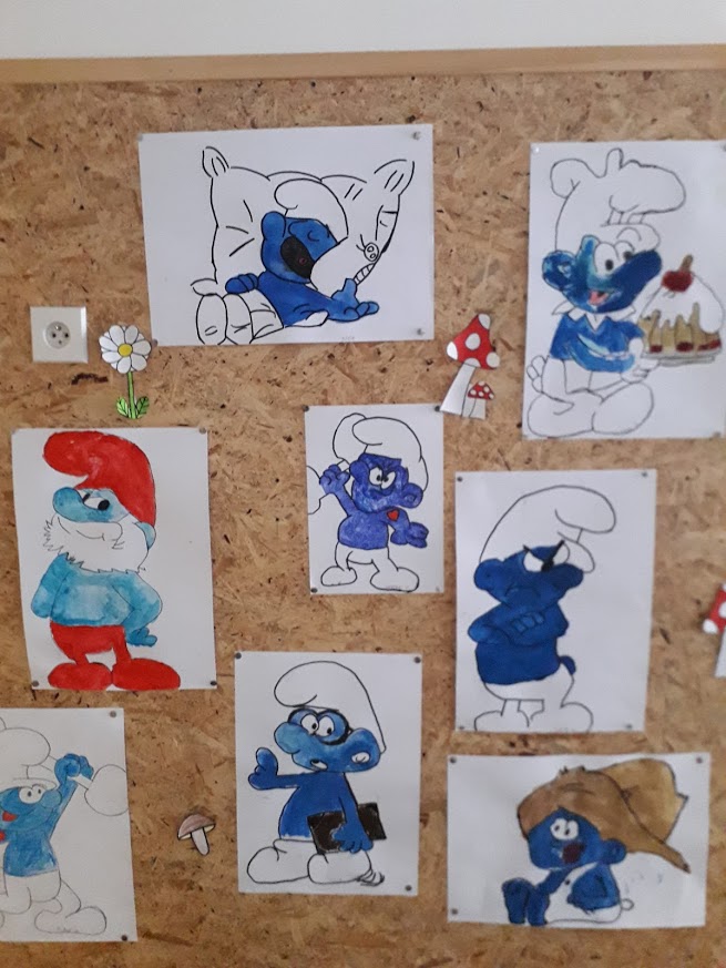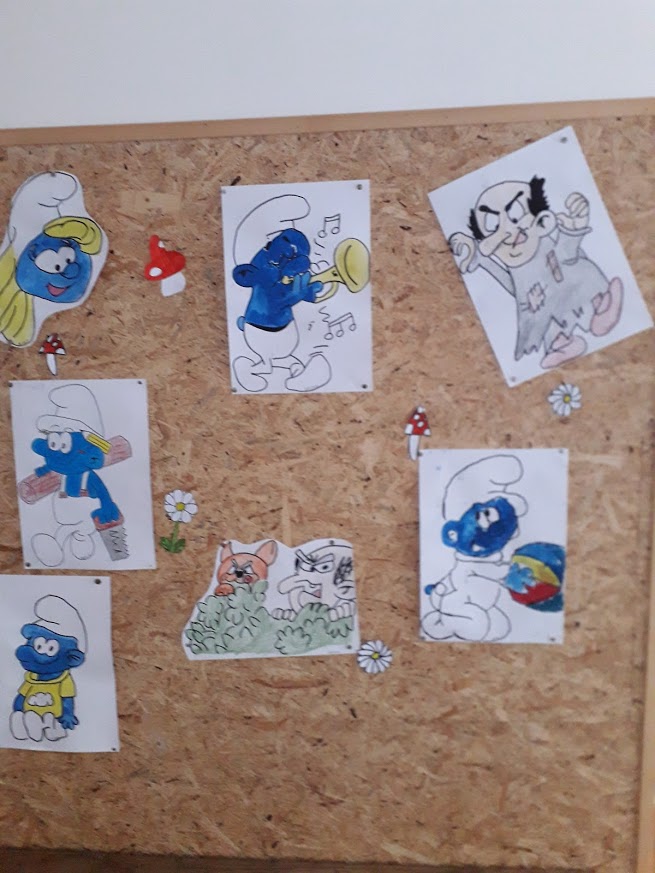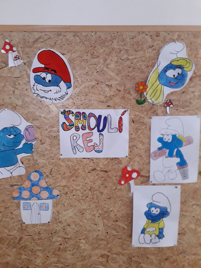 Děti vytvořily v družině krásnou výzdobu na milovické maškarní ve šmoulím tématu.
