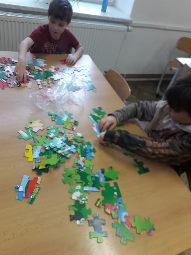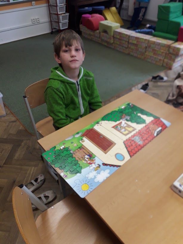 Věnují se i jiným aktivitám, baví je magnetické pohádky třeba O třech kůzlátkách, kdy různě pracují s příběhem. Ať už skládají puzzle, hrají pexeso či zkouší sami převyprávět pohádku.