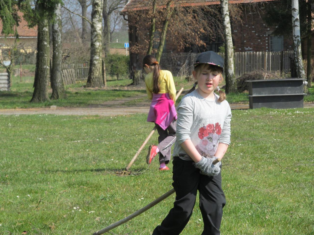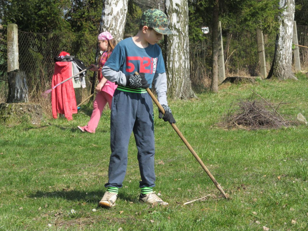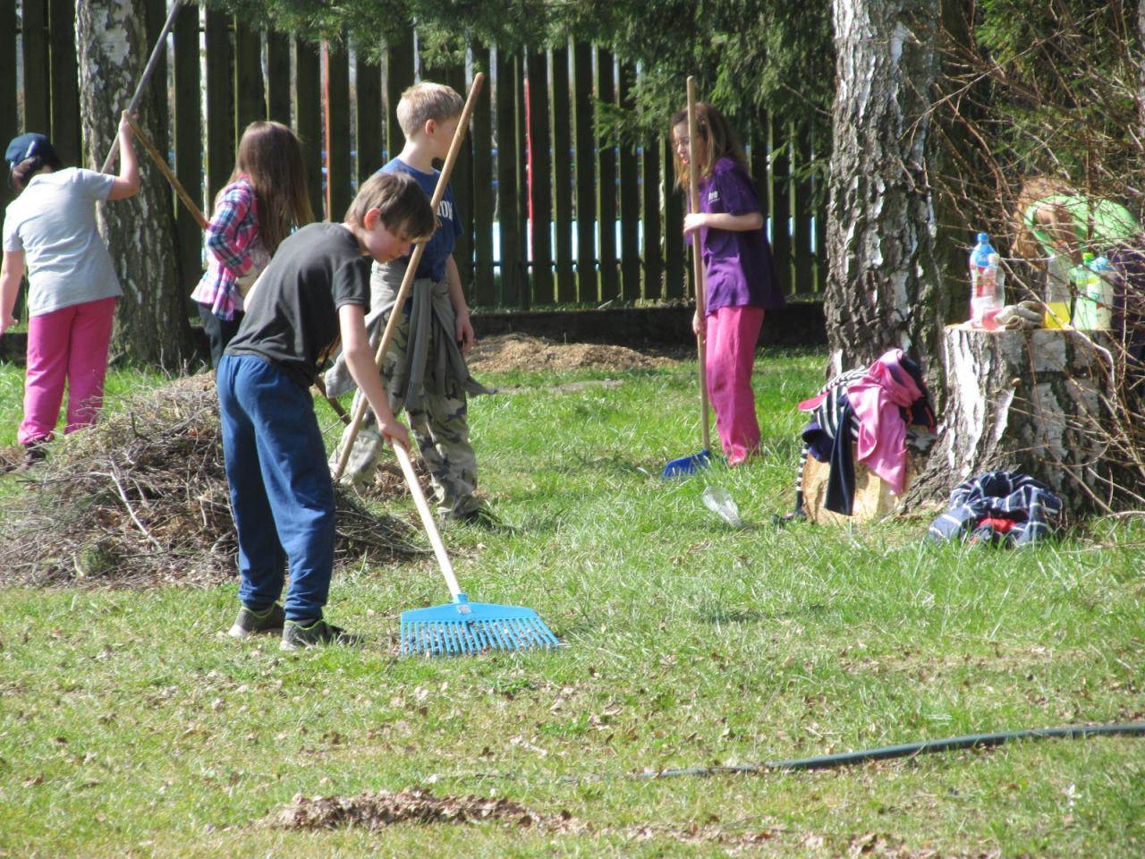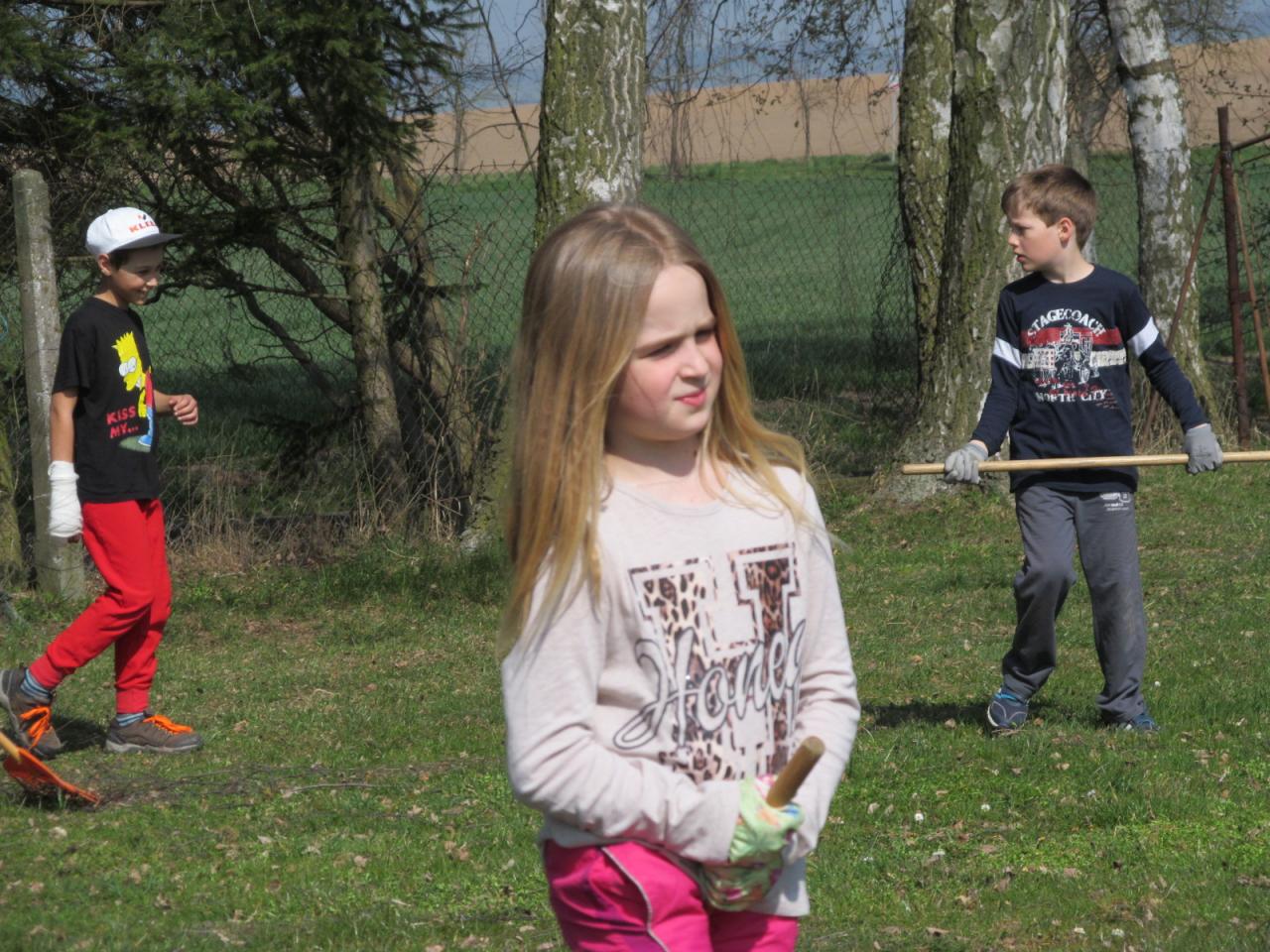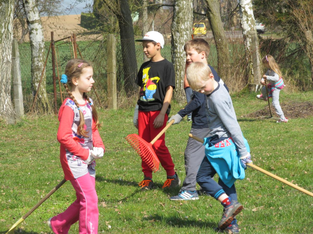 V pátek 10. dubna 2015 si do školy žáci přinesli hrábě a rukavice a vydali se na milovické hřiště na tradiční brigádu.