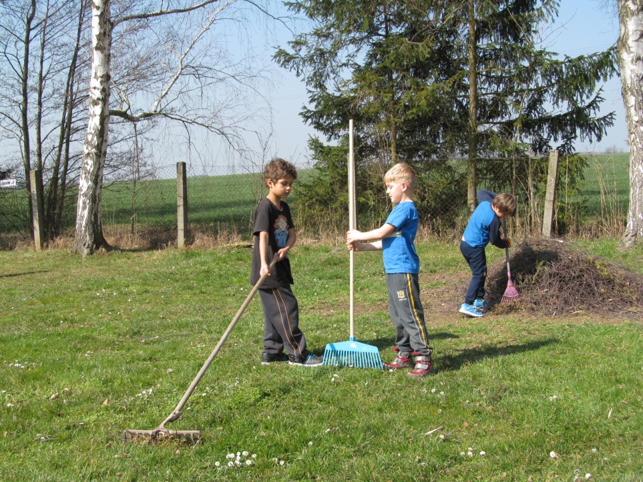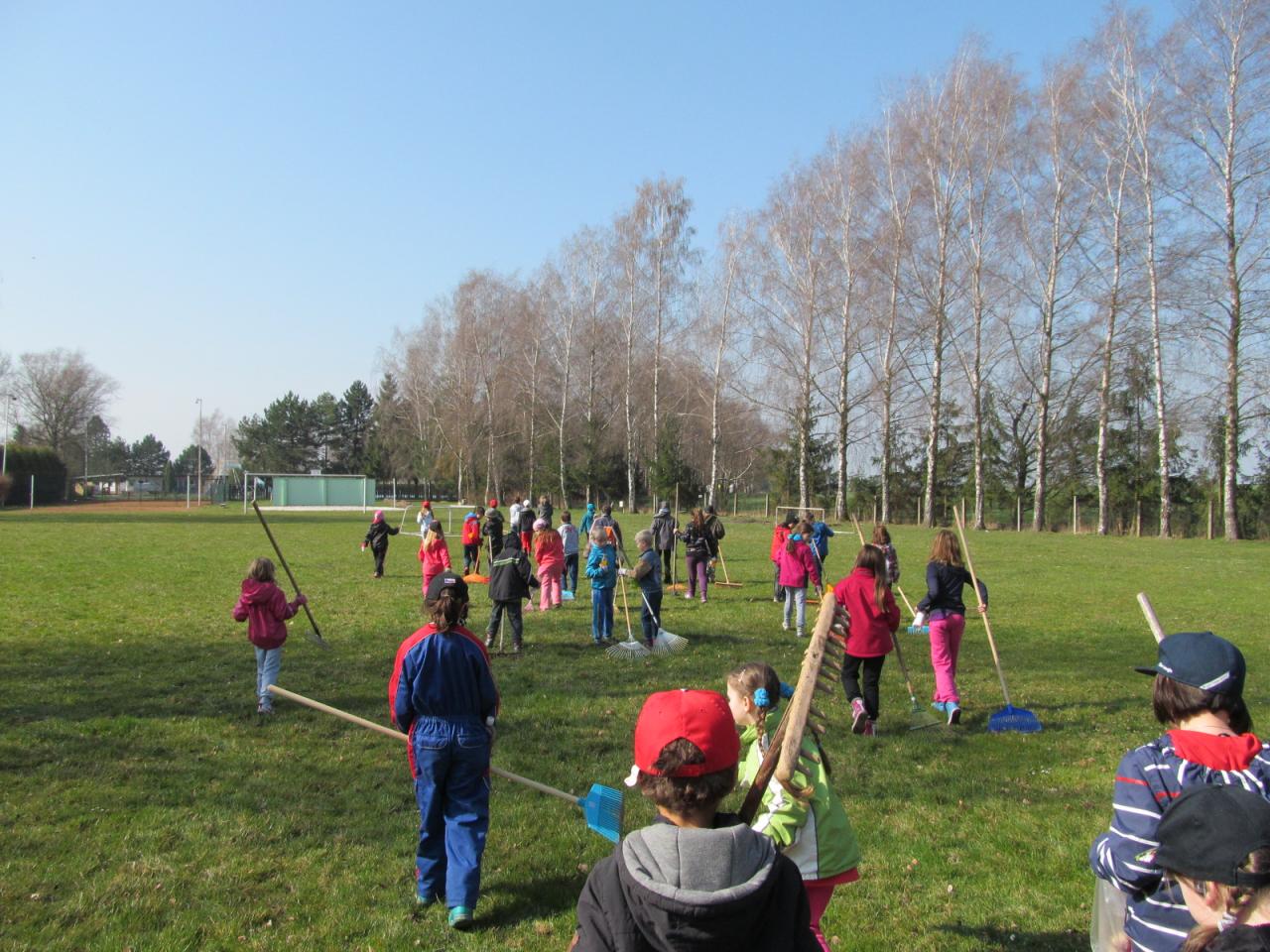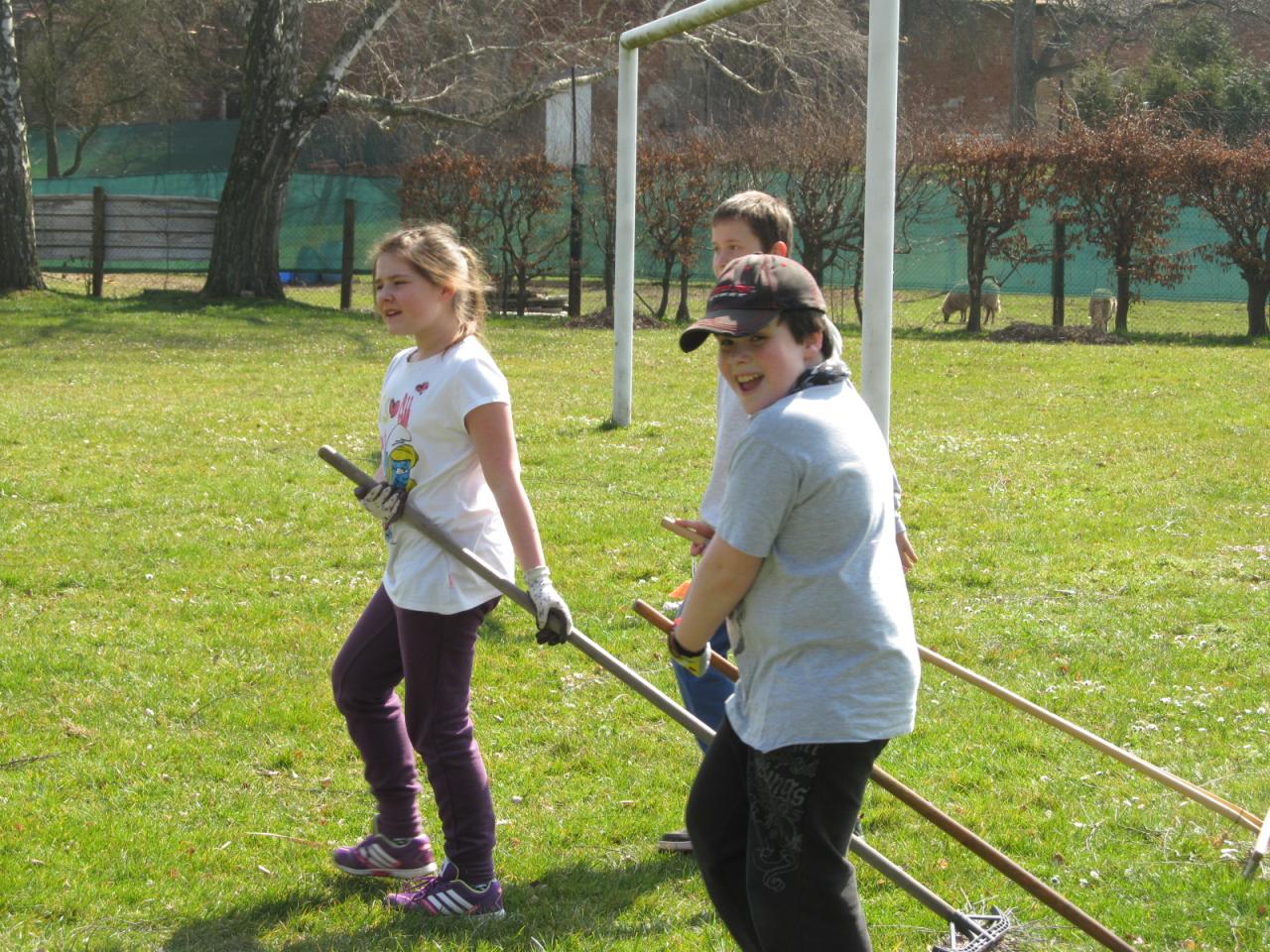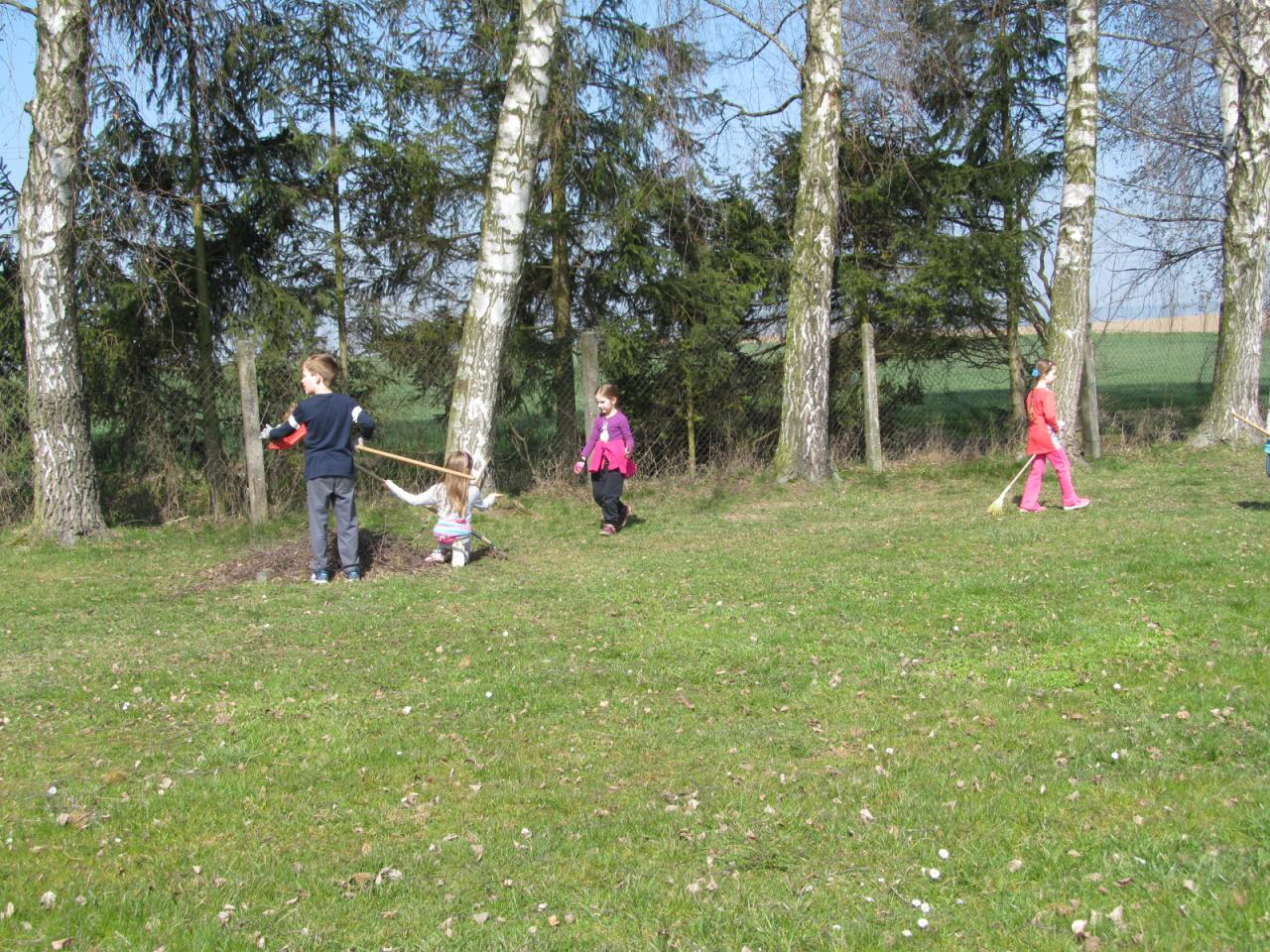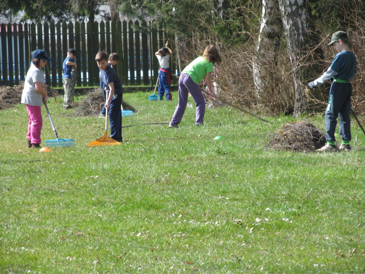 V pátek 10. dubna 2015 si do školy žáci přinesli hrábě a rukavice a vydali se na milovické hřiště na tradiční brigádu.