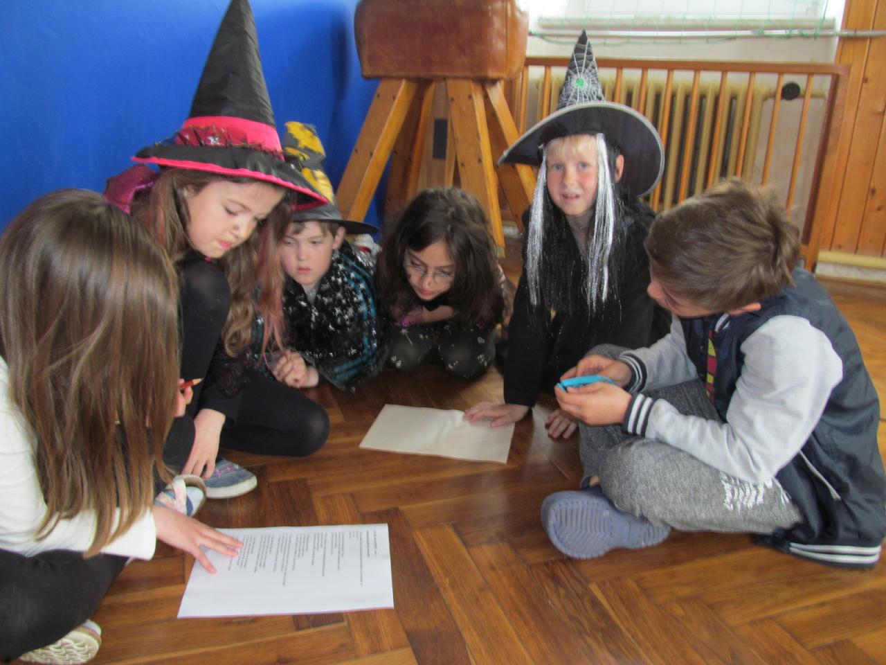 Ve čtvrtek 30. dubna 2015 se v tělocvičně sešli čarodějové a čarodějnice, aby prověřili své schopnosti. Poznávali přísady do lektvarů dle chuti nebo hmatu, skládali zkoušku z pravidel letového provozu a nakonec ve skupinkách jednu vlastní čarodějnici vyrobili.