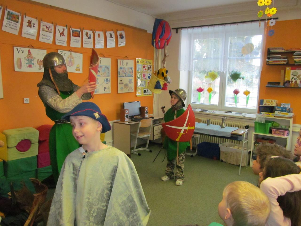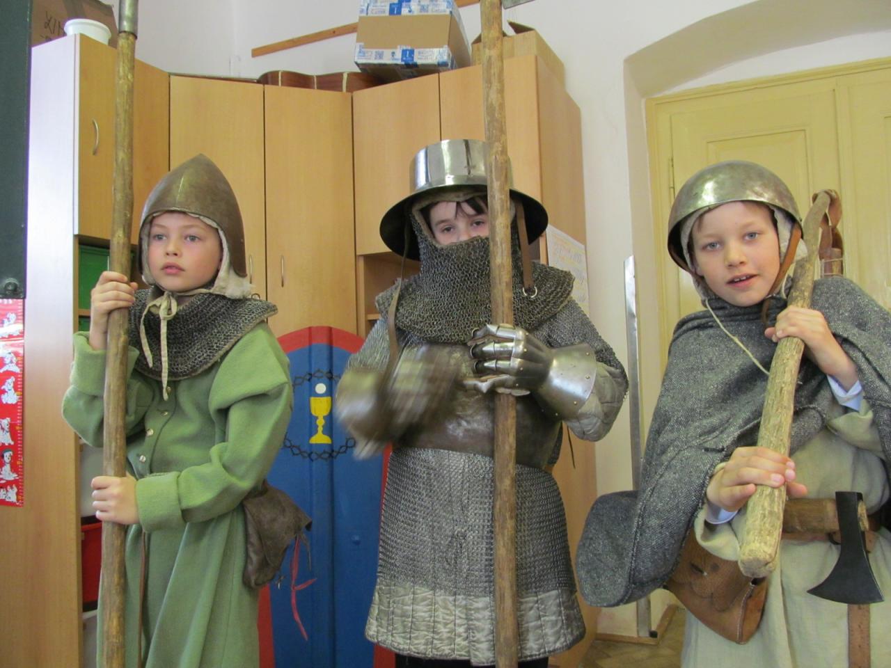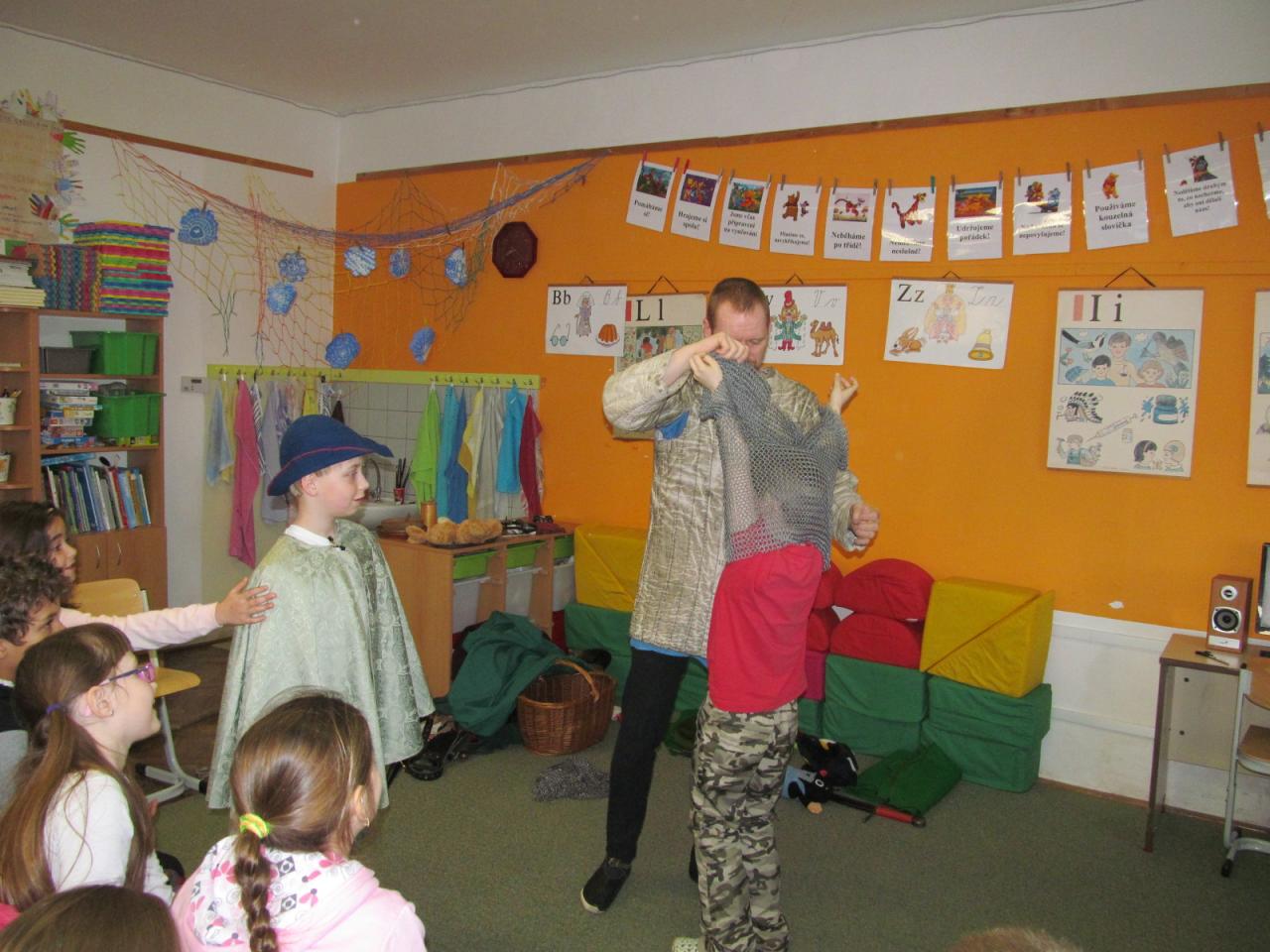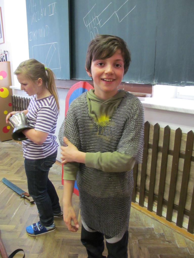 V úterý 7. dubna 2015 navštívil naši školu pan Richter s vlastivědným programem pro mladší žáky "Jak se z pážete stal rytíř", ve kterém je seznámil s povinnostmi a zvyky ve středověku. Žáci si mohli také prohlédnout a osahat středověké zbraně a oblečení. Pro starší žáky měl připravený program o husitských válkách s názvem "Proti všem".