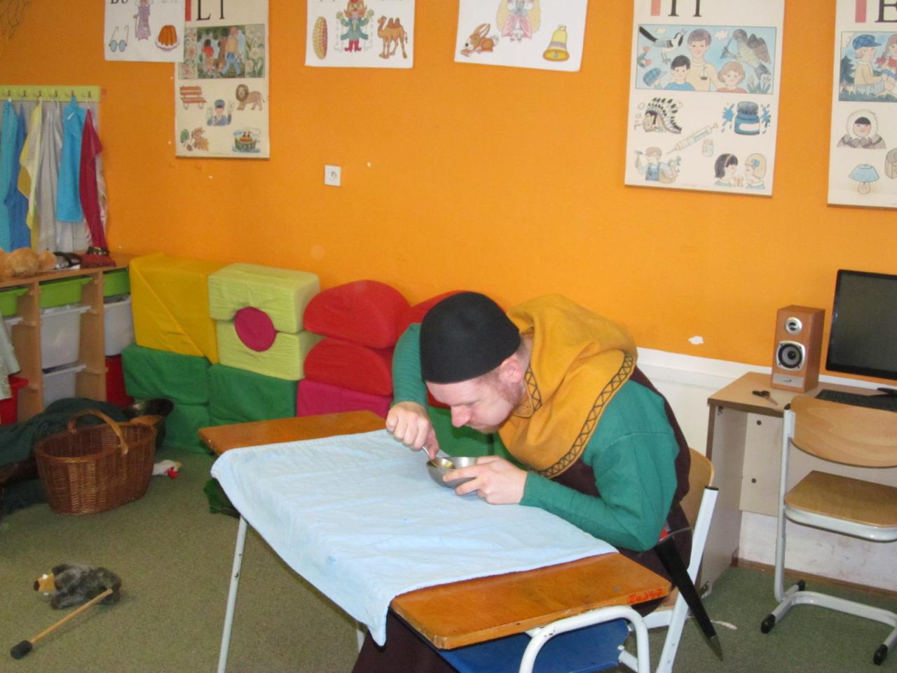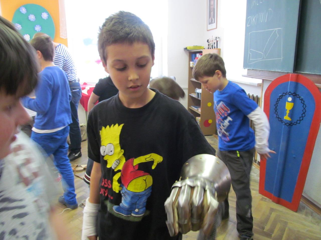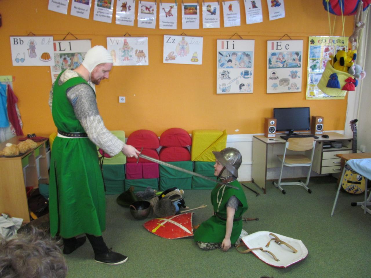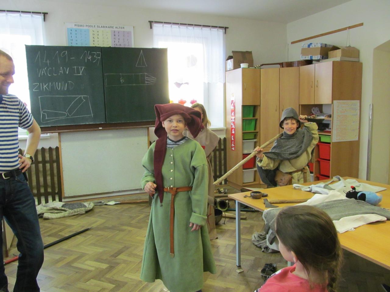 V úterý 7. dubna 2015 navštívil naši školu pan Richter s vlastivědným programem pro mladší žáky "Jak se z pážete stal rytíř", ve kterém je seznámil s povinnostmi a zvyky ve středověku. Žáci si mohli také prohlédnout a osahat středověké zbraně a oblečení. Pro starší žáky měl připravený program o husitských válkách s názvem "Proti všem".
