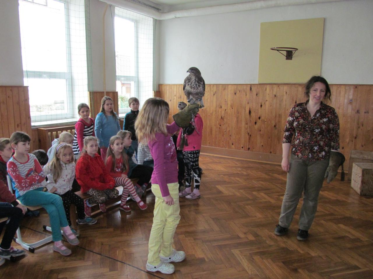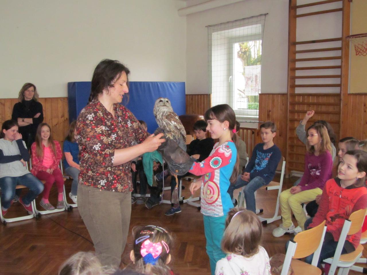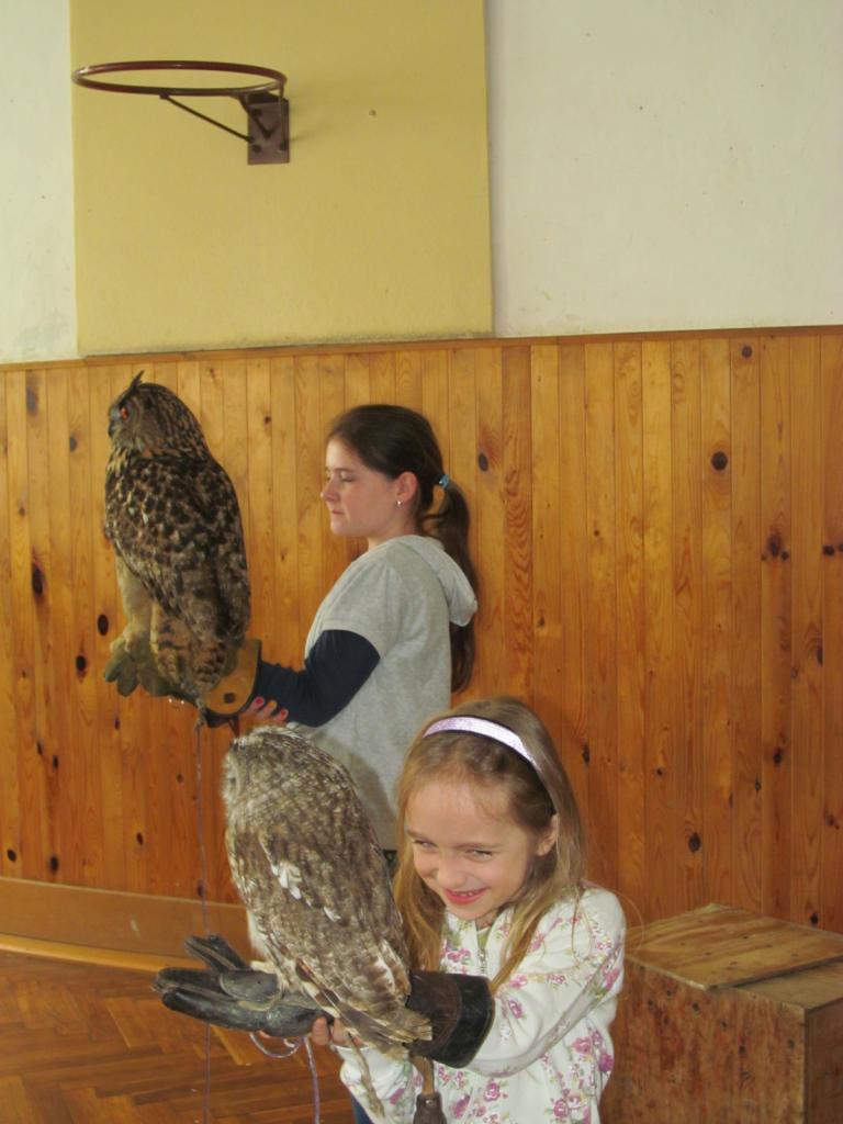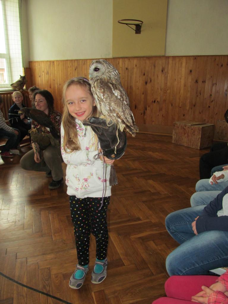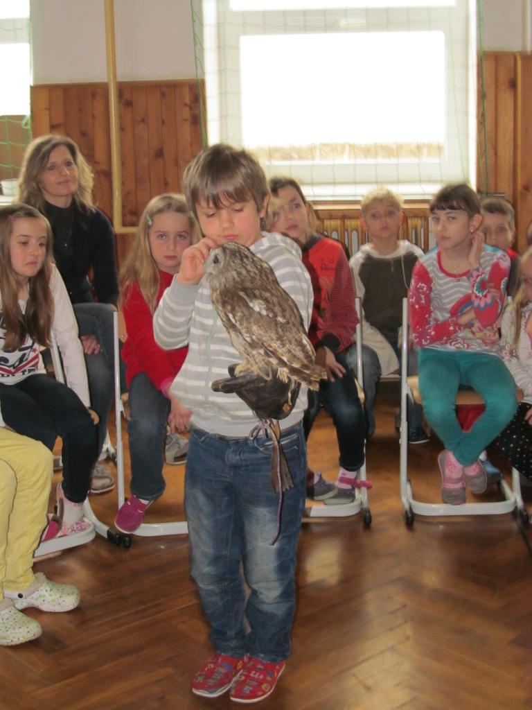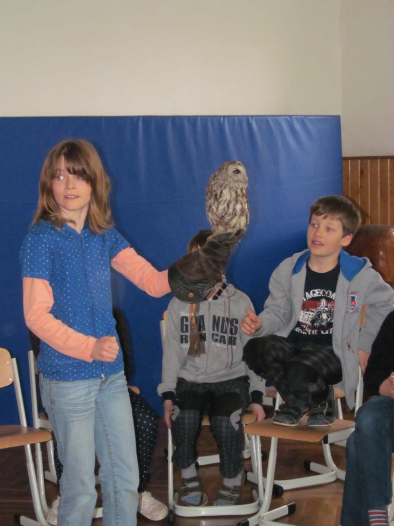 V pondělí 30. března 2015 přijela do školy paní Mazuchová se sovami a dravci. Žáci měli možnost vidět a vzít si na ruku například puštíka, sovu pálenou, káně či výra a dozvěděli se nejen o těchto zvířatech spoustu zajímavostí.