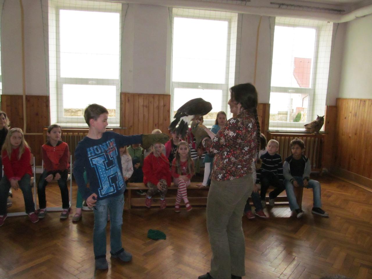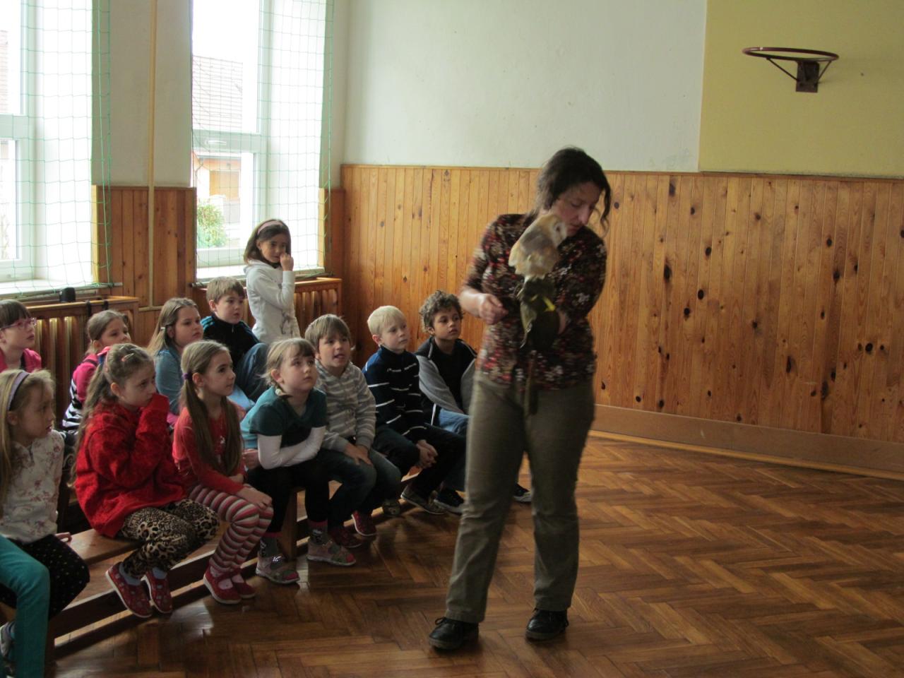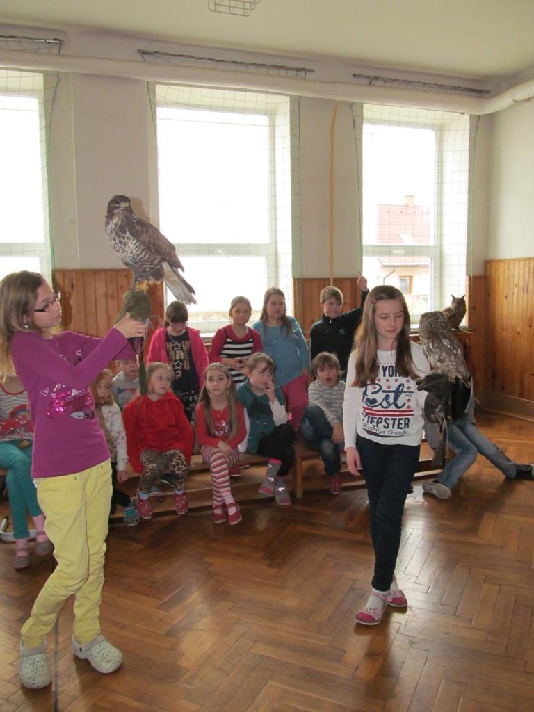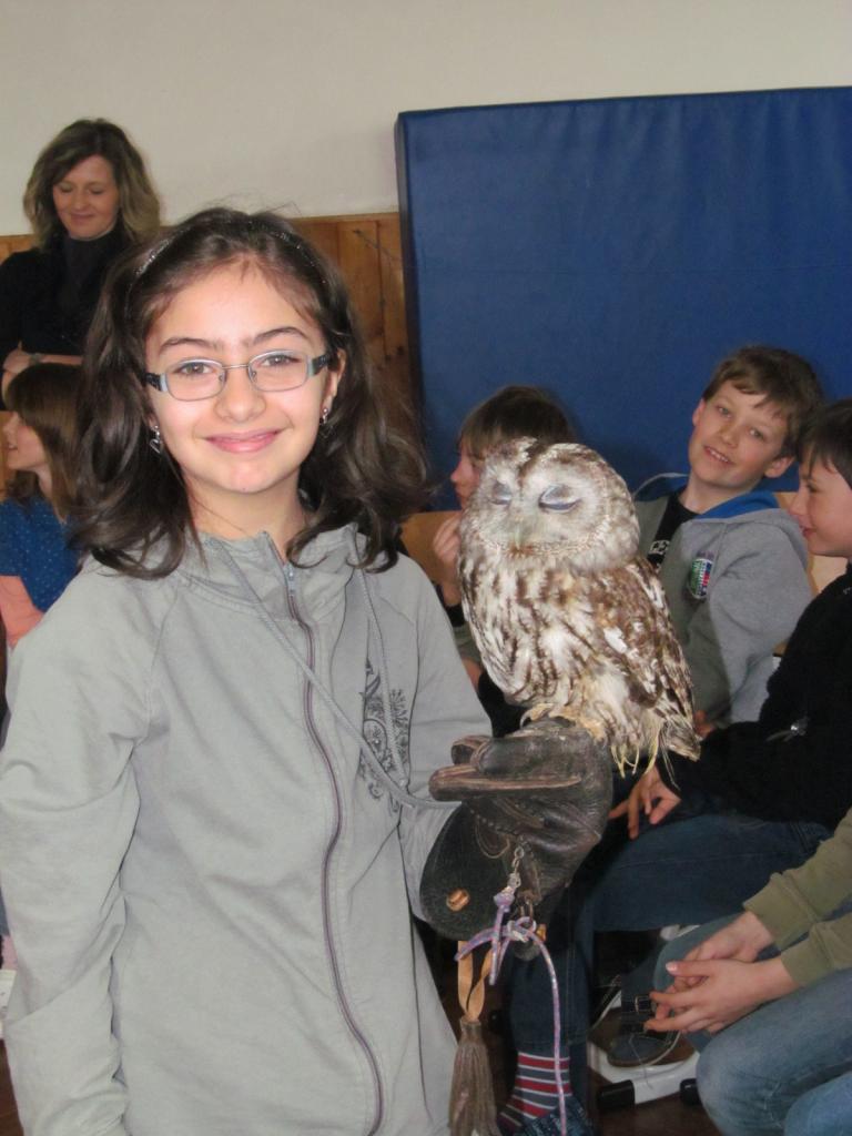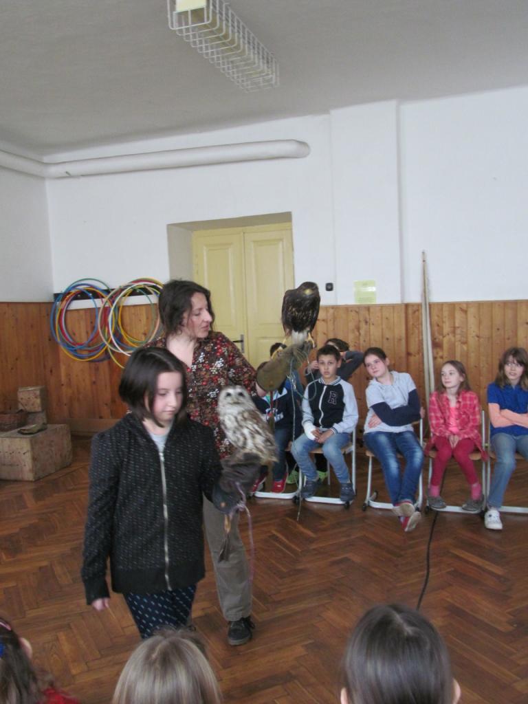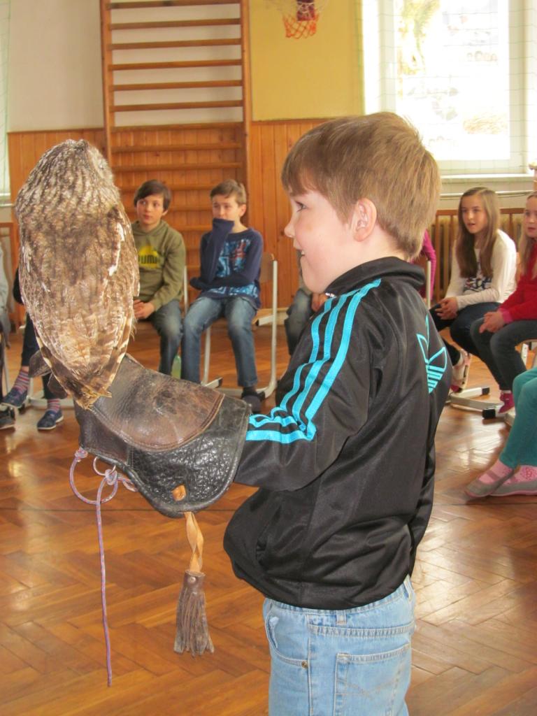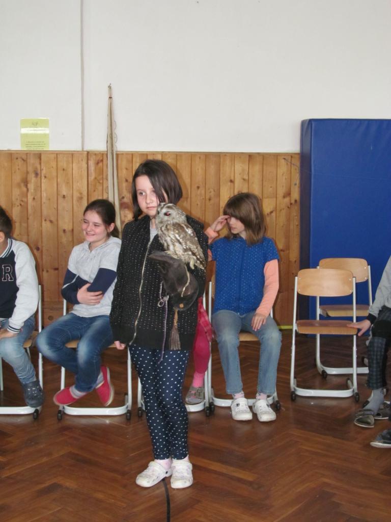 V pondělí 30. března 2015 přijela do školy paní Mazuchová se sovami a dravci. Žáci měli možnost vidět a vzít si na ruku například puštíka, sovu pálenou, káně či výra a dozvěděli se nejen o těchto zvířatech spoustu zajímavostí.
