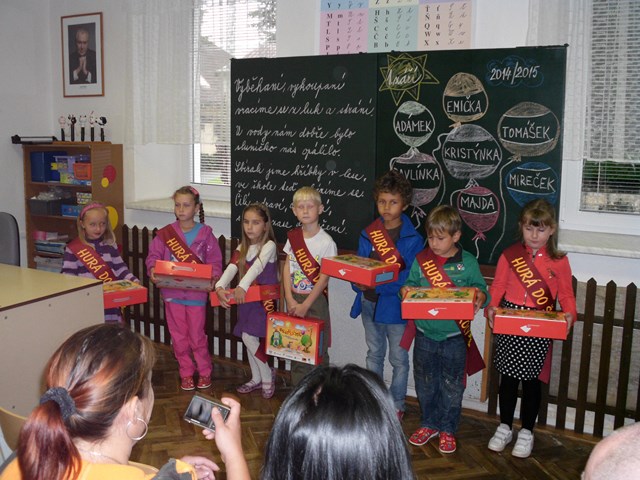 V pondělí 1. září 2014 přivítal pan starosta, paní učitelky a starší spolužáci ve škole 7 nových prvňáčků. Ti byli slavnostně pasováni na školáky, dostali šerpu, kufřík s překvapením a sladkou dobrotu.