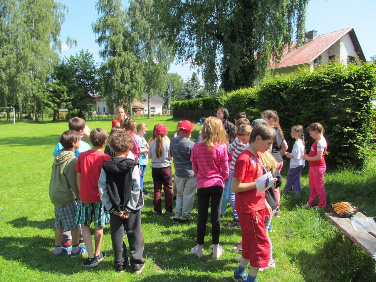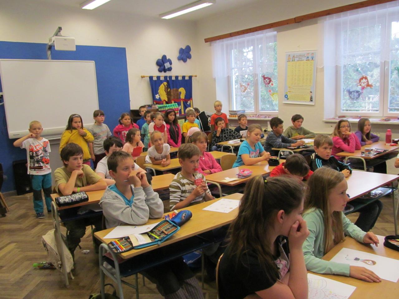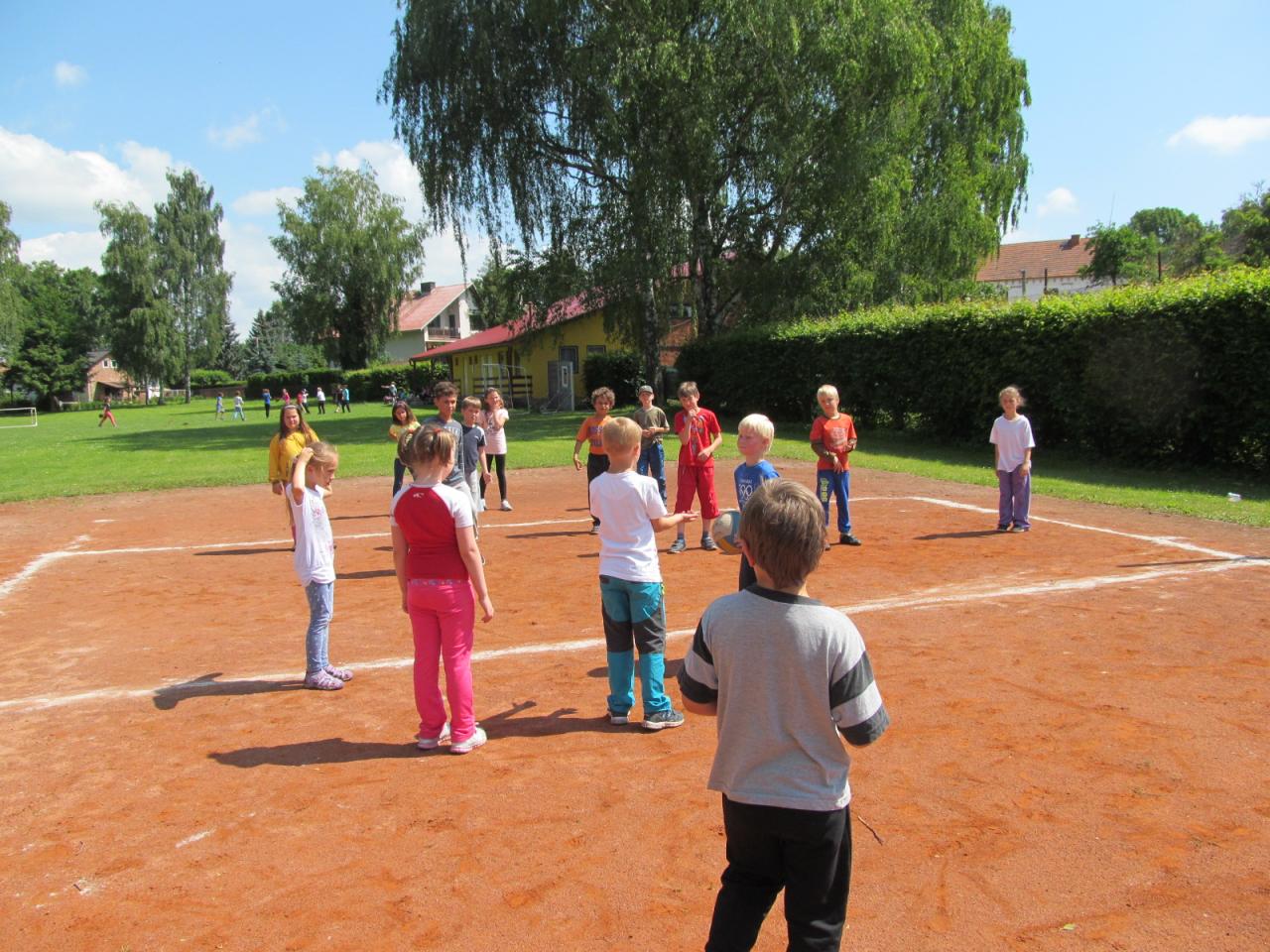 Ve čtvrtek dopoledne přišel do školy pan starosta Ing. Alois Jirsák, aby žákům poděkoval za spolupráci s obcí, předal jim permanentky na koupaliště a popřál hezké prázdniny. Poté šli žáci na hřiště, kde si zahráli běhací hru "Mravenci", baseball a vybíjenou.