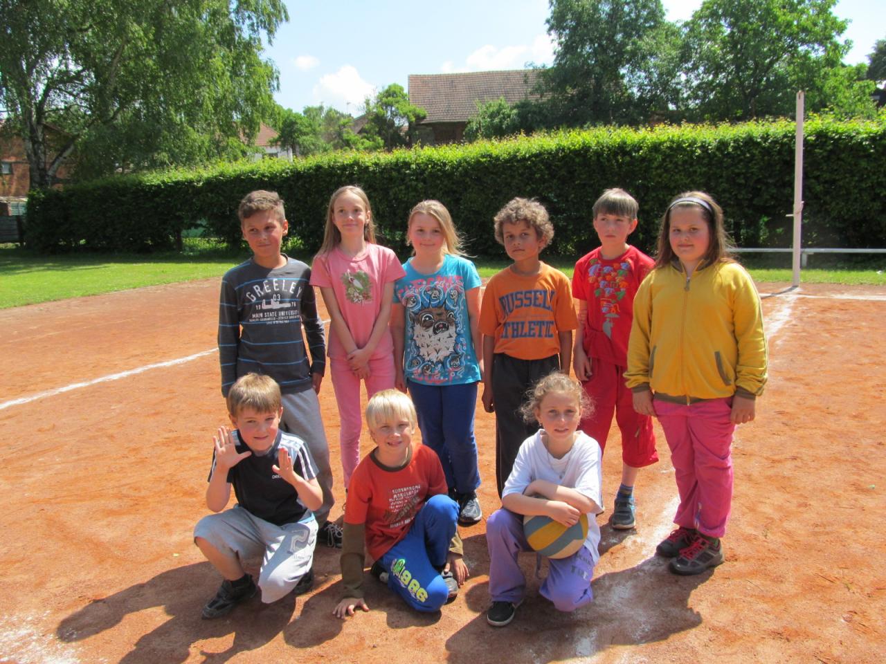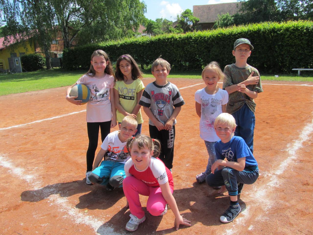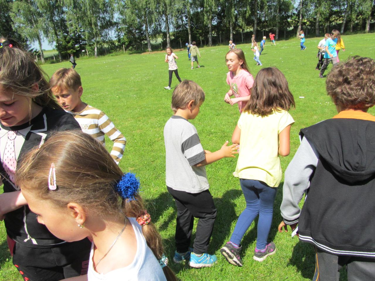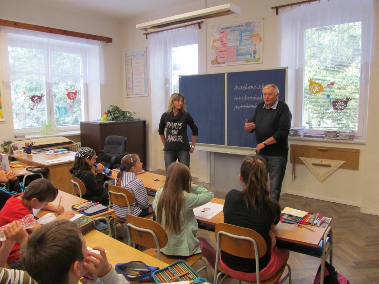 Ve čtvrtek dopoledne přišel do školy pan starosta Ing. Alois Jirsák, aby žákům poděkoval za spolupráci s obcí, předal jim permanentky na koupaliště a popřál hezké prázdniny. Poté šli žáci na hřiště, kde si zahráli běhací hru "Mravenci", baseball a vybíjenou.