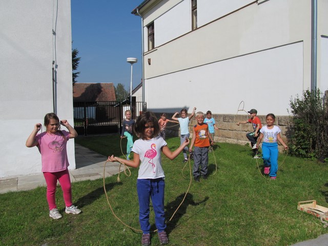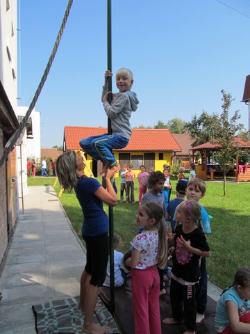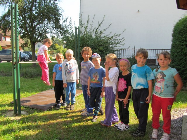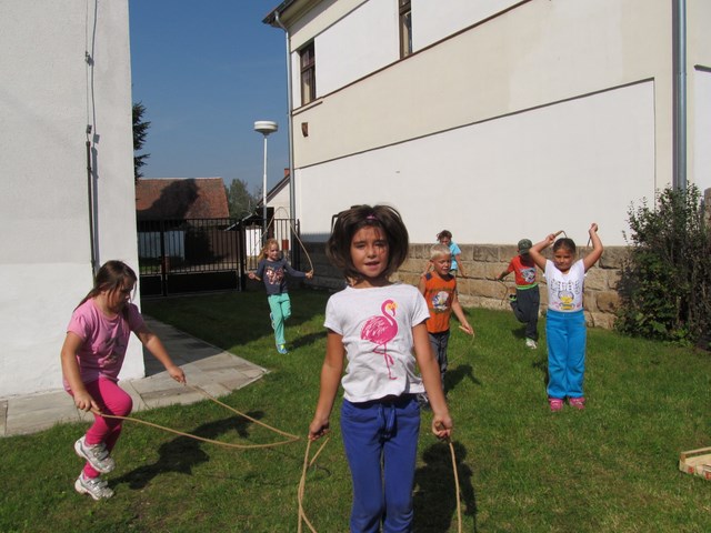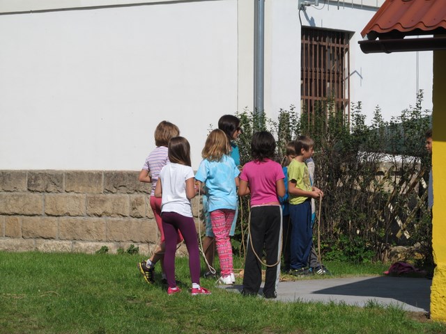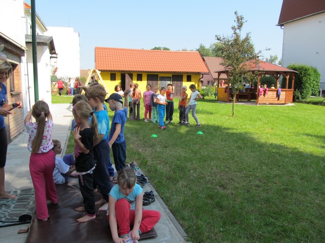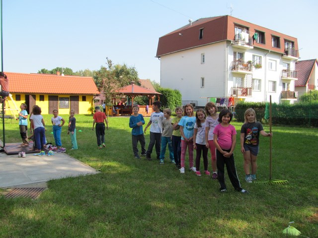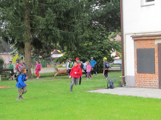 V průběhu prvního školního týdne jsme se nejen seznamovali s tím, co nás ve školním roce 2014/2015 čeká, ale také jsme sportovali. Ve středu šli žáci na minivýšlap po Milovicích - hledali lístečky s hádankami významných míst v obci, na konci našli sladkou odměnu a na hřišti si pak zahráli několik sportovních her. V pátek sportovali na školní zahradě - skákali přes švihadlo, do písku, šplhali na tyči a cvičili na hrazdě.