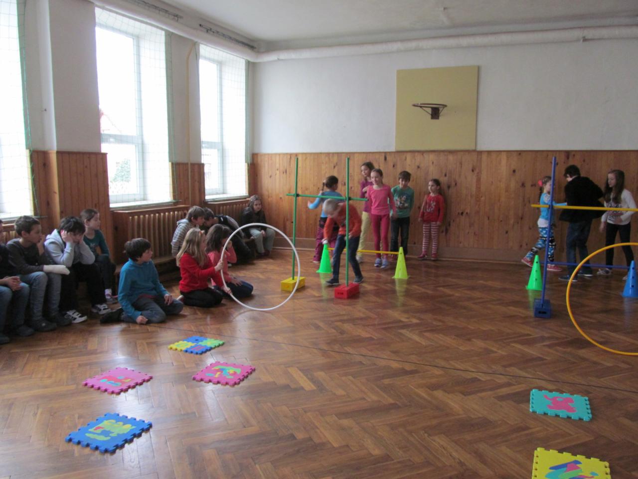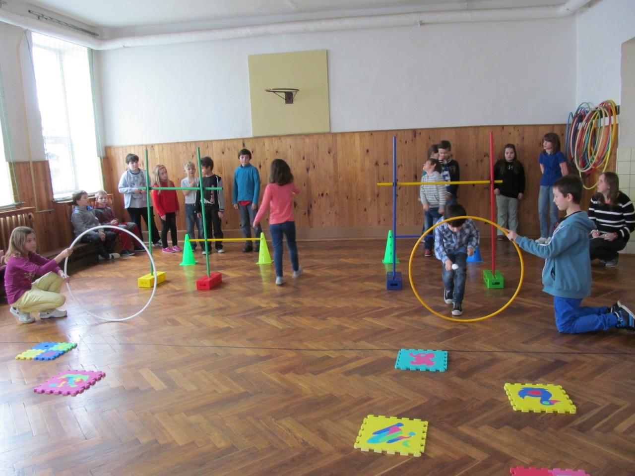 Ve středu 1. dubna 2015 čekaly na žáky v tělocvičně velikonoční úkoly. Nejprve měli zdolat překážkovou dráhu na čas s vajíčkem na lžíci, potom sestavovali velikonoční tangram a nakonec hledali po třídách barevná vajíčka. Za splnění všech úkolů dostali sladkou odměnu.