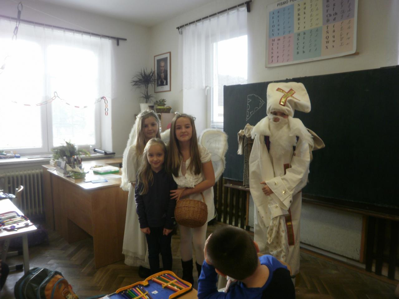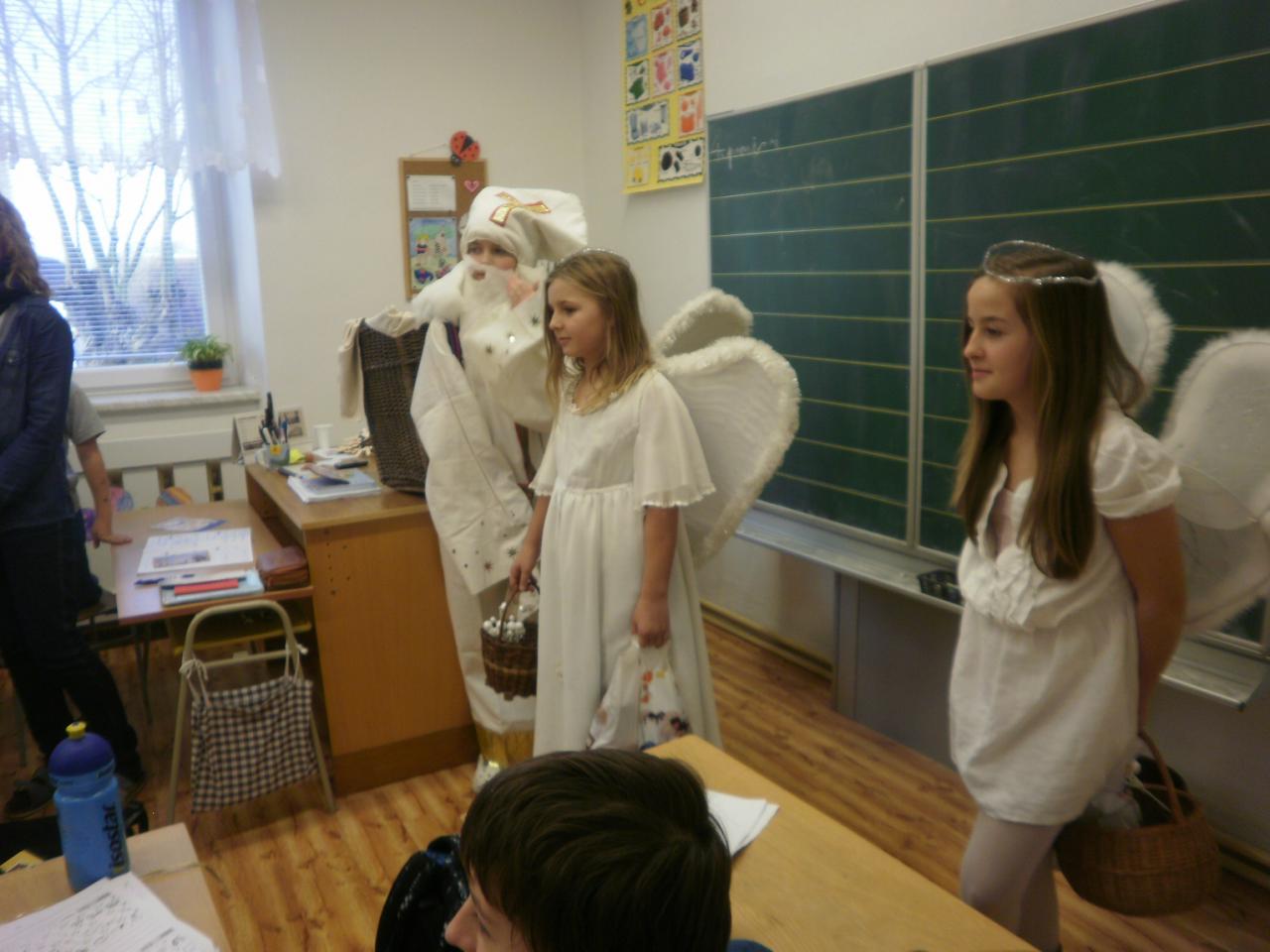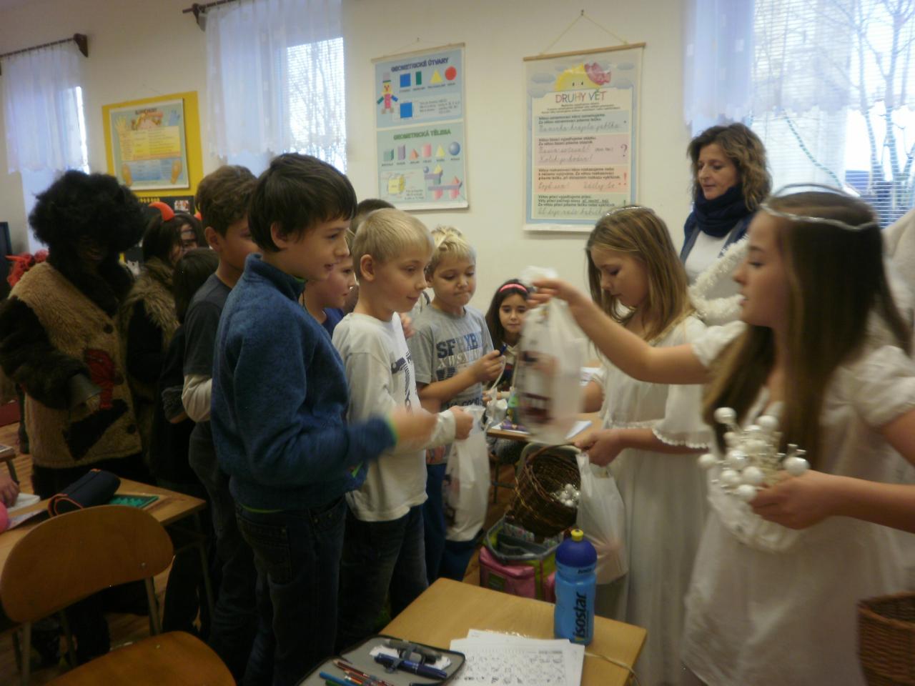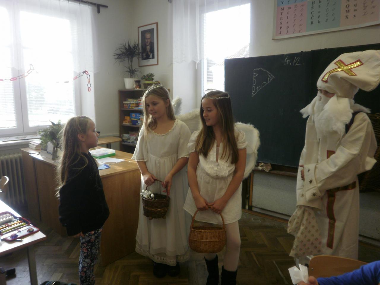 V pátek 4. prosince navštívil naši školu Mikuláš s anděly a čerty. Některé děti se sice nejdřív trošku bály, ale nakonec všechny zvládly básničku nebo písničku a dostaly za to sladkou odměnu. Čertovské pytle zůstaly pro tentokrát prázdné.