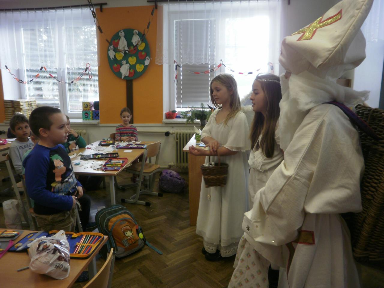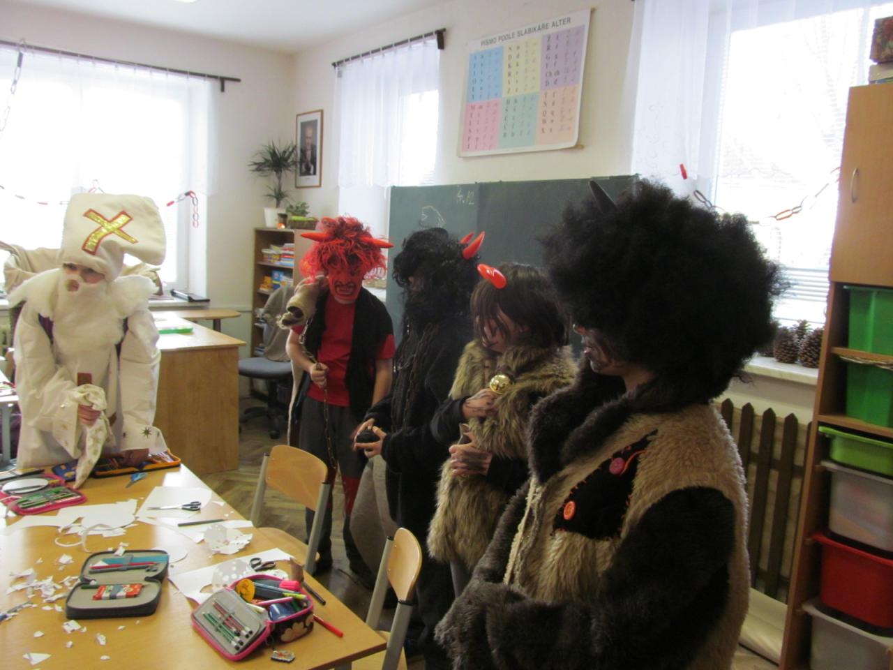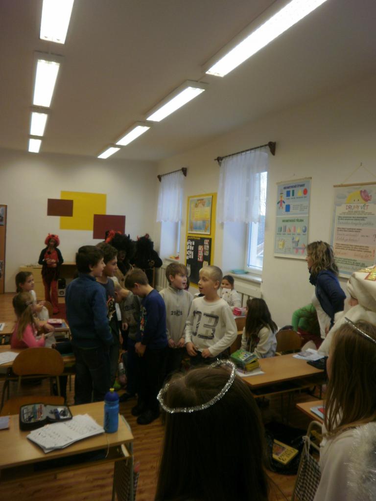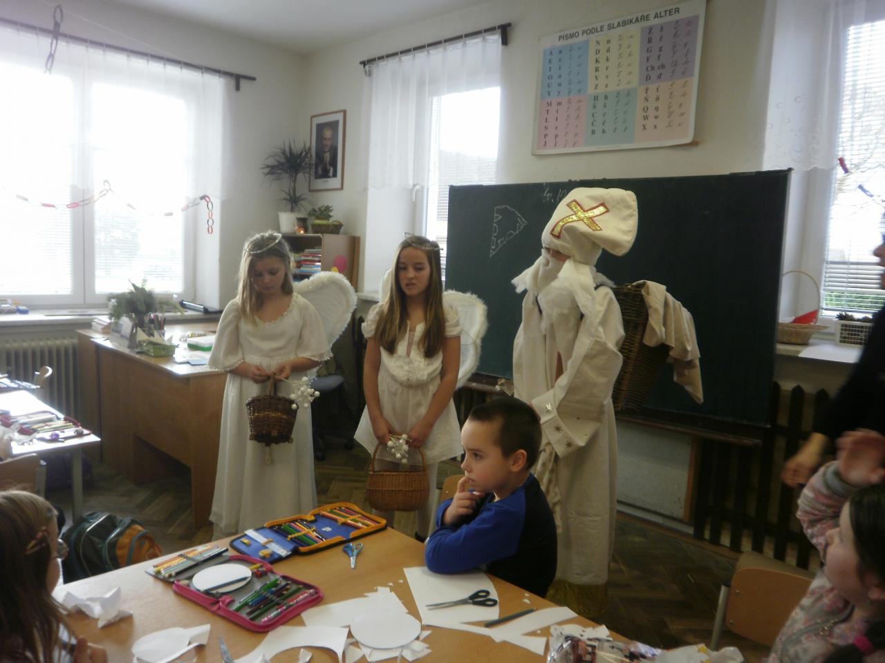 V pátek 4. prosince navštívil naši školu Mikuláš s anděly a čerty. Některé děti se sice nejdřív trošku bály, ale nakonec všechny zvládly básničku nebo písničku a dostaly za to sladkou odměnu. Čertovské pytle zůstaly pro tentokrát prázdné.