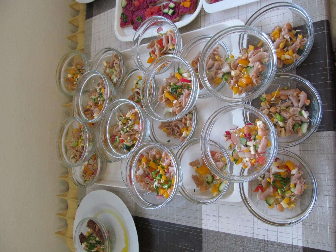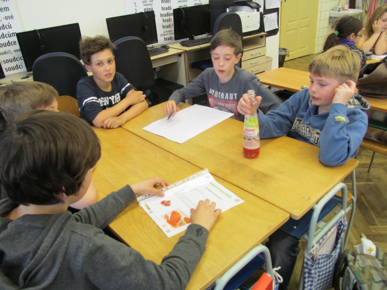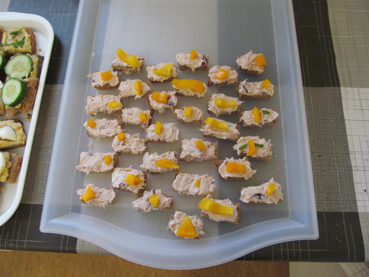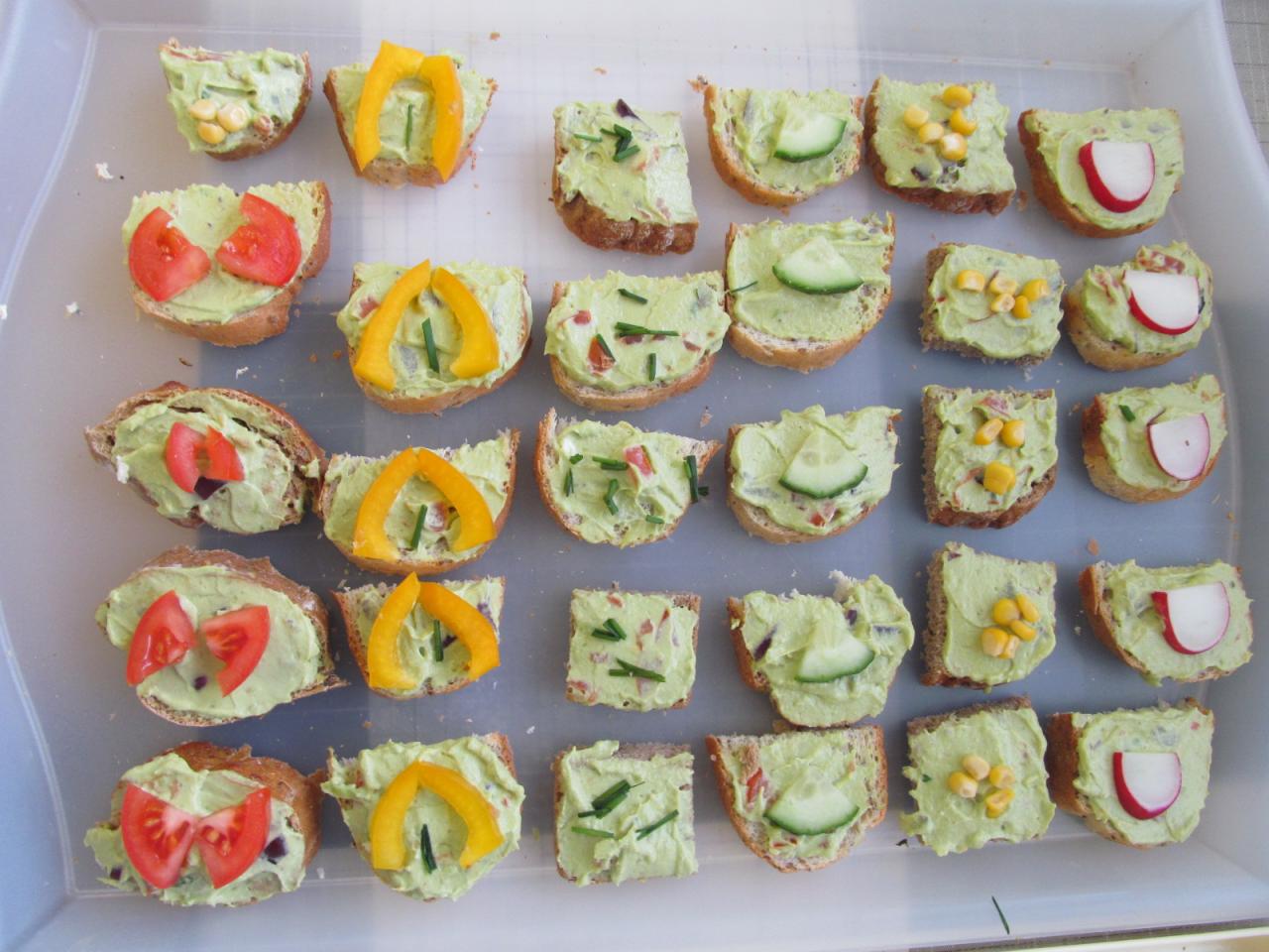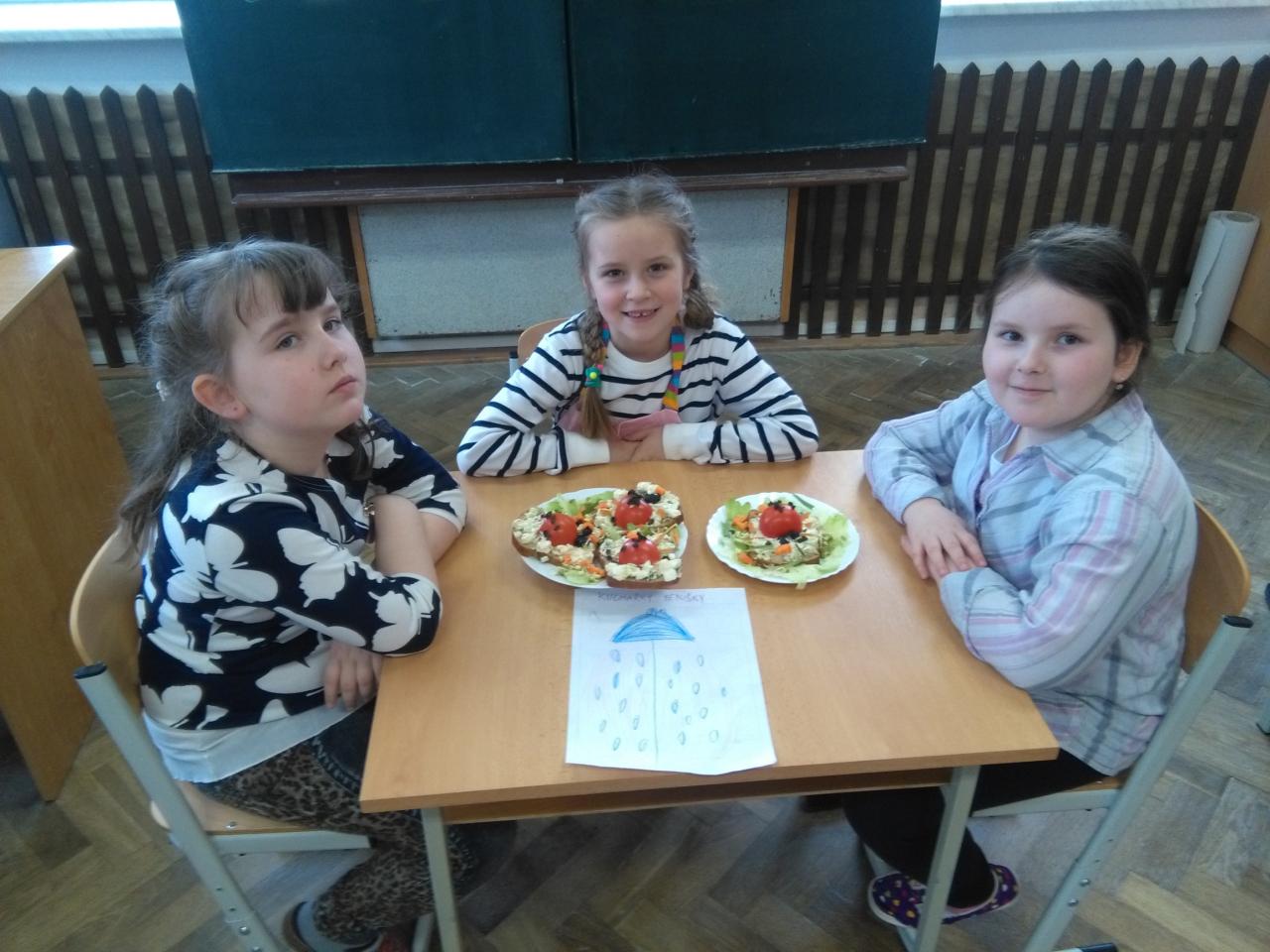 Žáci 1. a 2. ročníku s pomocí paní učitelek připravili ovocný koktejl, sladké chlebíčky, jednohubky s mrkvovou a vajíčkovou pomazánkou nebo šnečky ze šunky, sýra a pomazánkového másla.