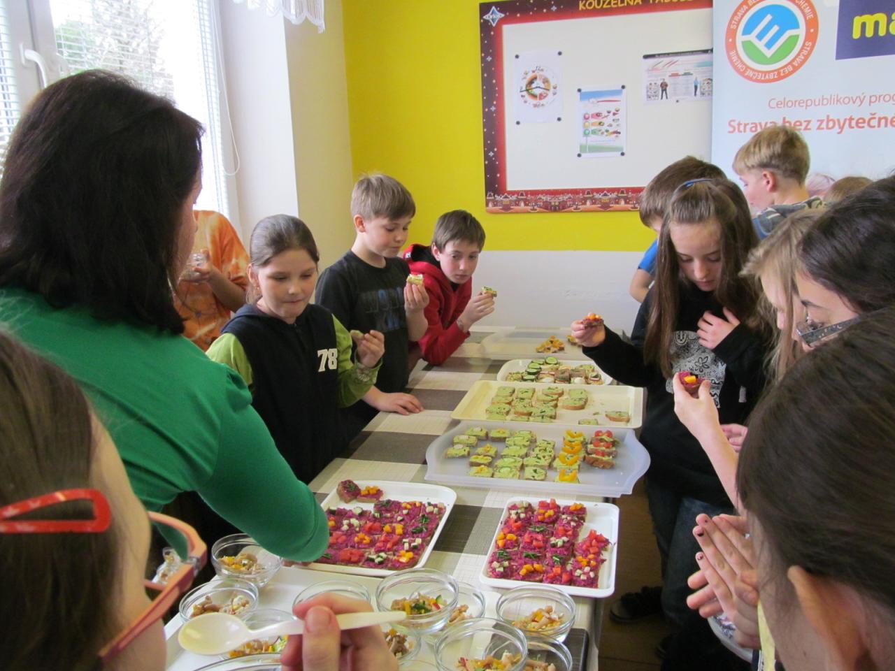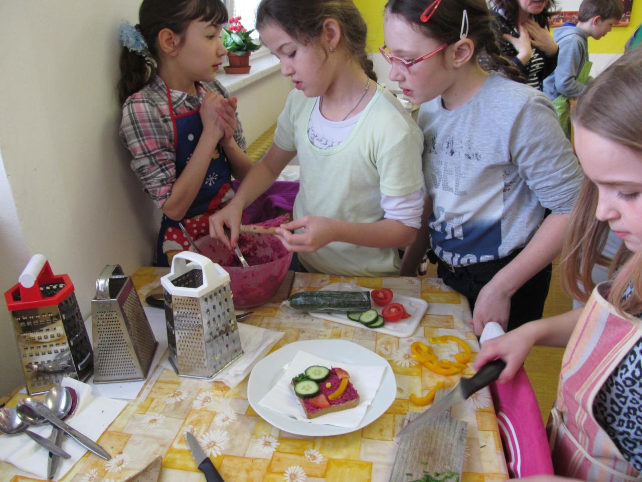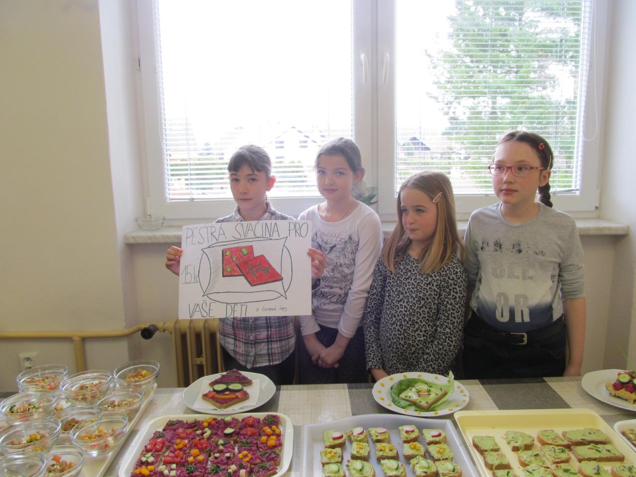 Ve středu 30. března se ve škole uskutečnil projektový den s názvem "Pestrá strava". Žáci 3., 4. a 5. ročníku si povídali s paní Víravovou o stravě bez zbytečné chemie a připravovali ve skupinkách těstovinový salát, jednohubky s tuňákovou, avokádovou, čočkovou pomazánkou nebo pomazánkou z červené řepy.
