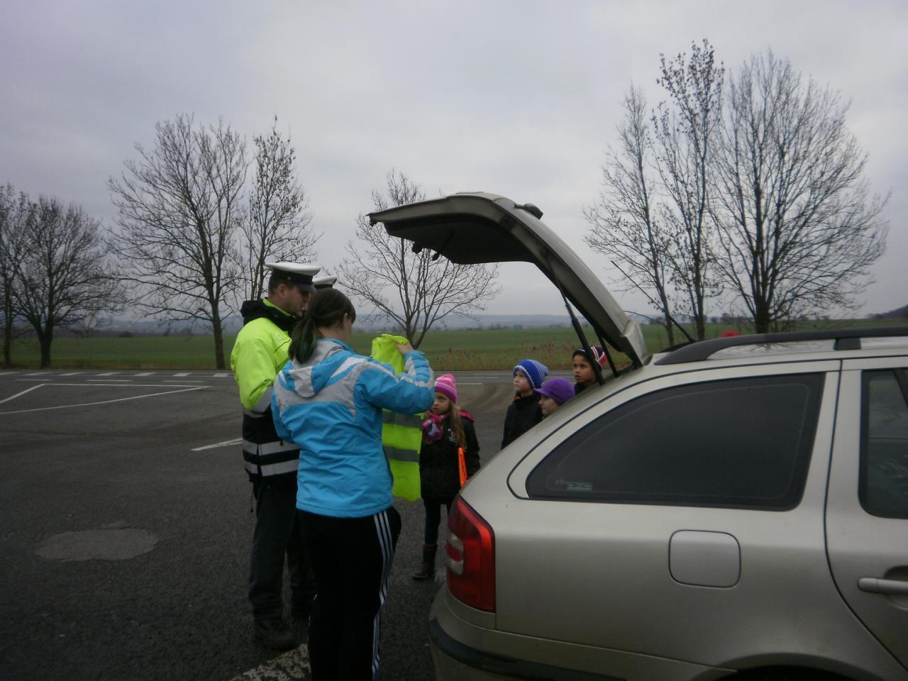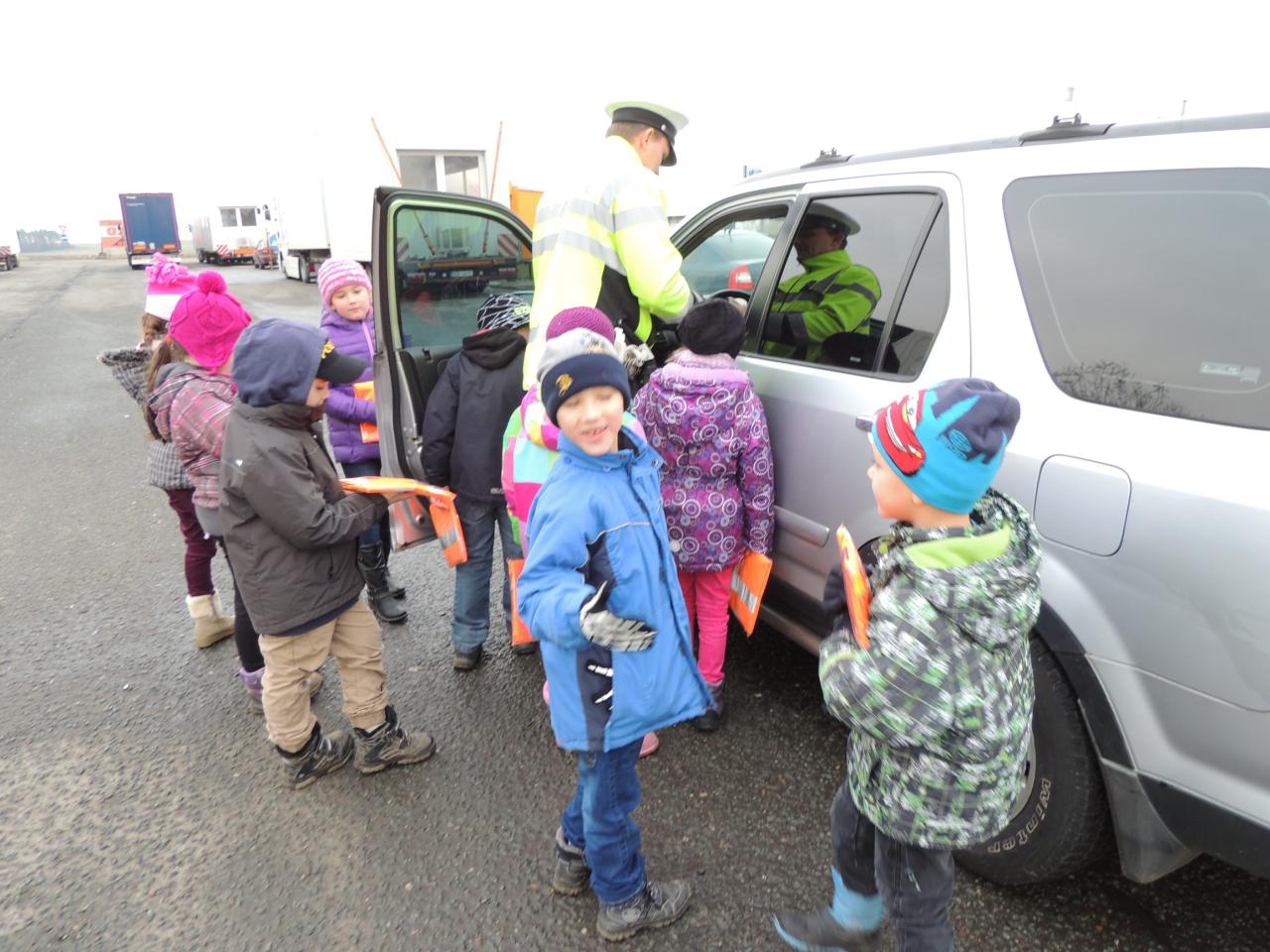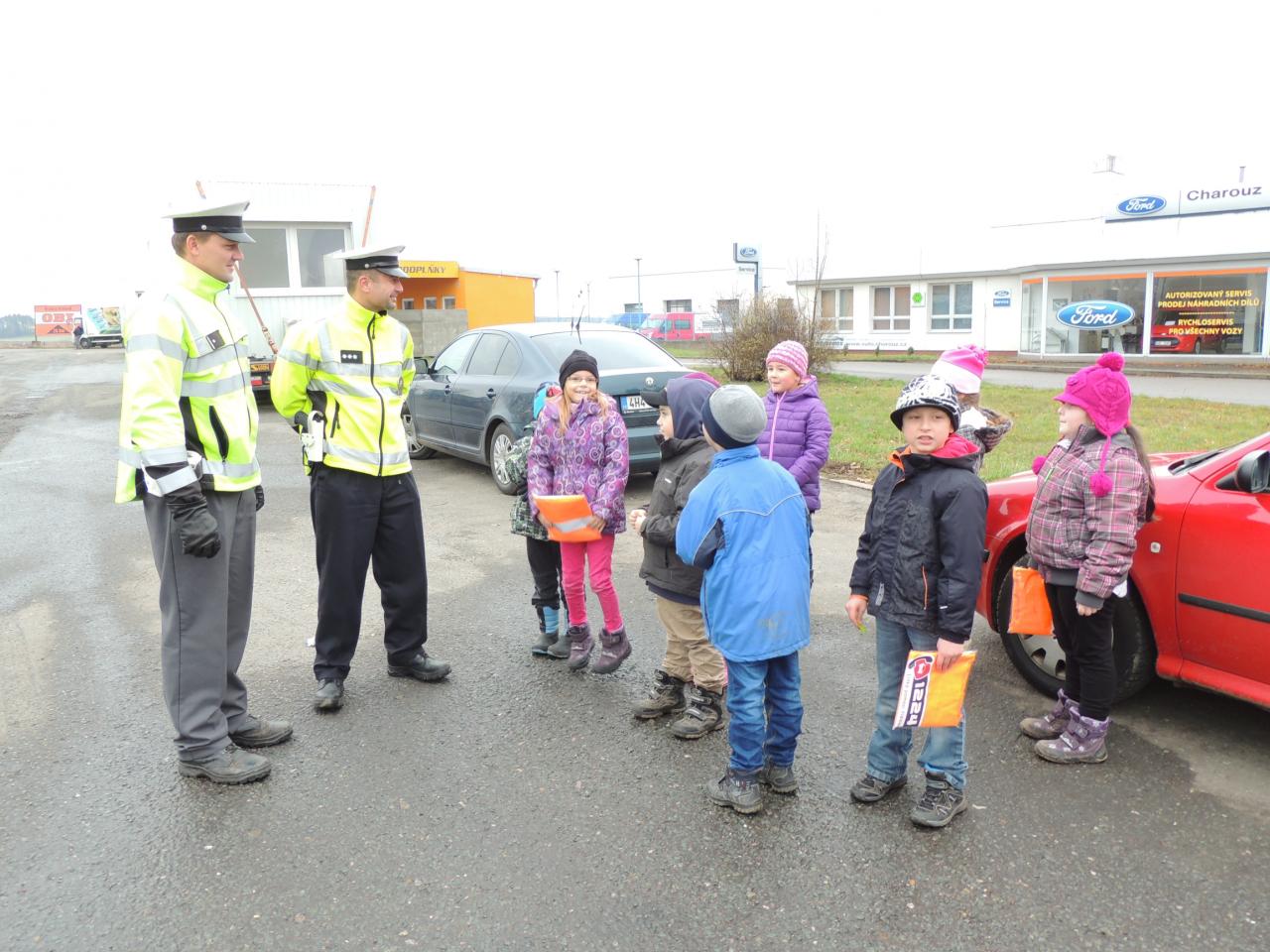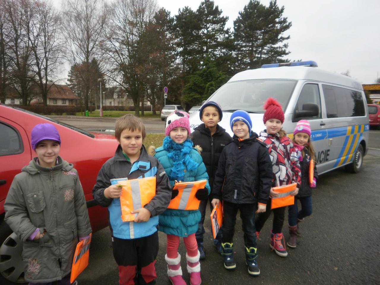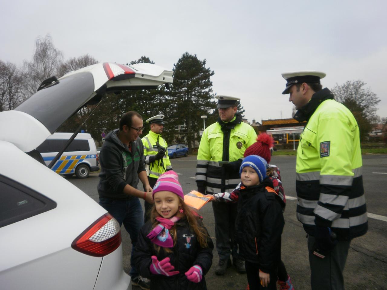 V pondělí se žáci 1. a 2.ročníku zúčastnili policejní akce Policie ČR pomáhá a chrání neoznačené účastníky silnic. V rámci prevence rozdávali řidičům reflexní vesty. Pro ty, kteří vestu u sebe měli, si děti připravily jako odměnu veselé smajlíky. Děkujeme pánům policistům, že nám umožnili vidět jejich práci a spolupracovat s nimi.