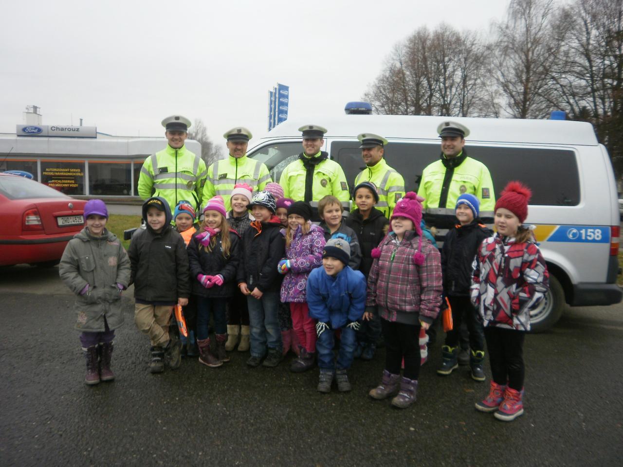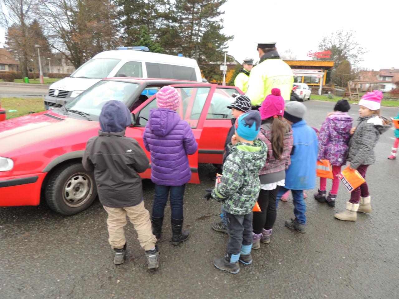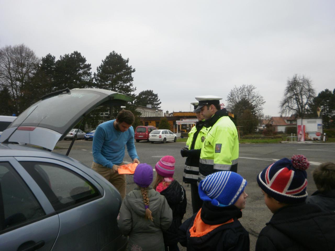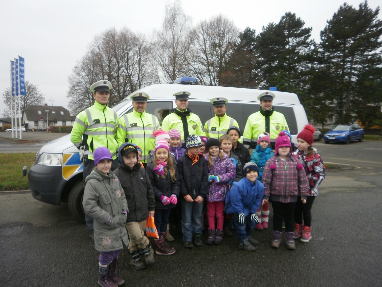 V pondělí se žáci 1. a 2.ročníku zúčastnili policejní akce Policie ČR pomáhá a chrání neoznačené účastníky silnic. V rámci prevence rozdávali řidičům reflexní vesty. Pro ty, kteří vestu u sebe měli, si děti připravily jako odměnu veselé smajlíky. Děkujeme pánům policistům, že nám umožnili vidět jejich práci a spolupracovat s nimi.