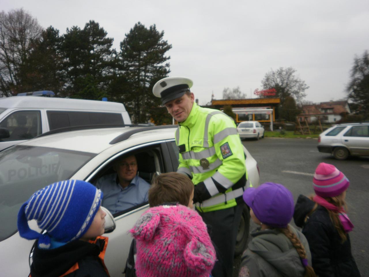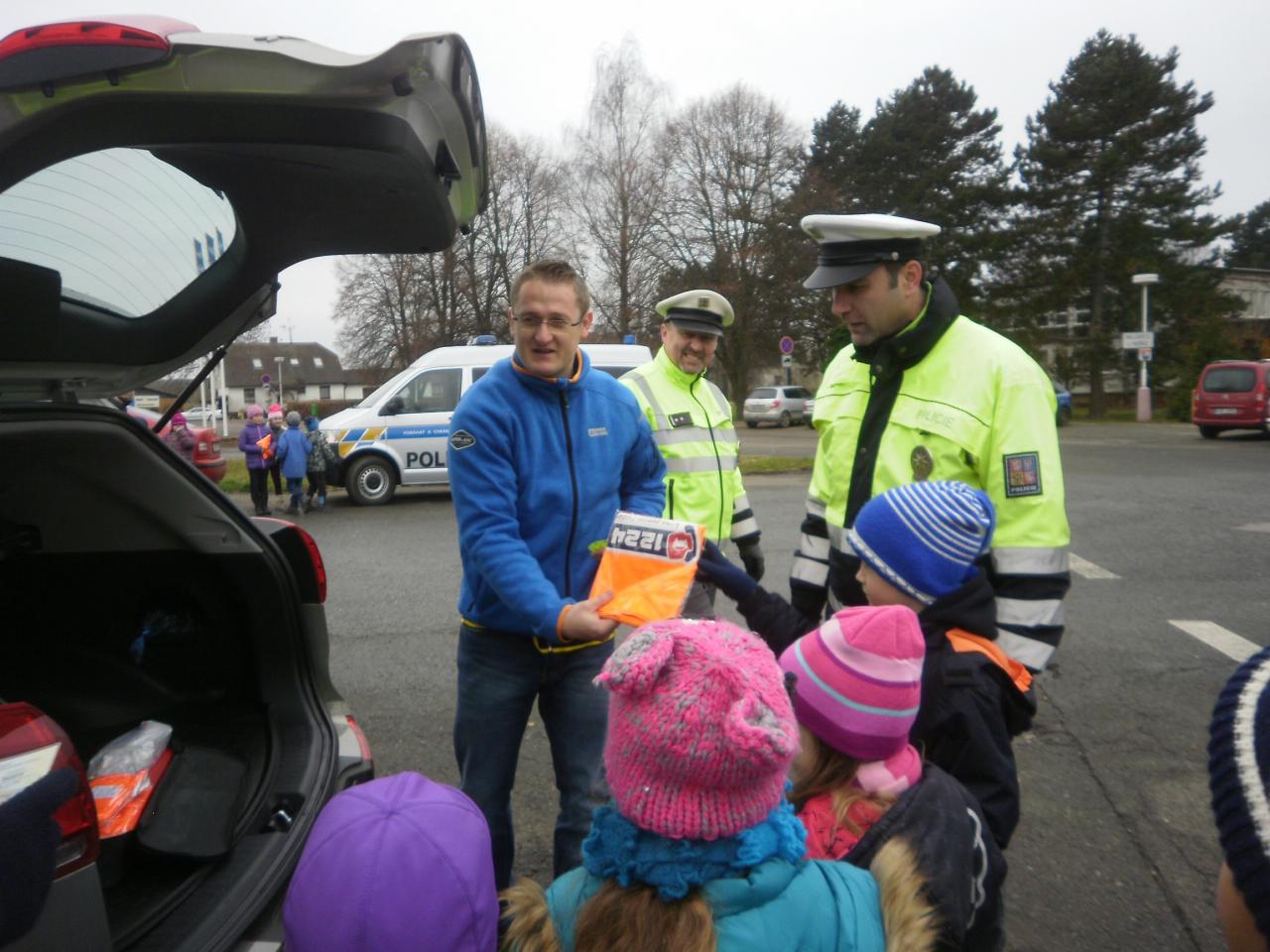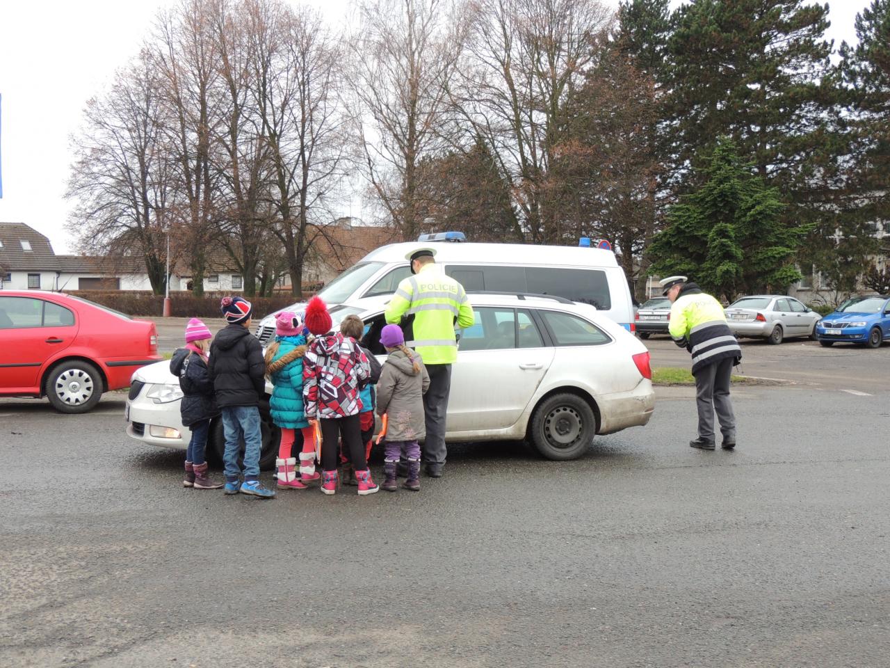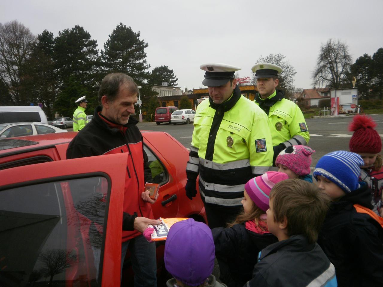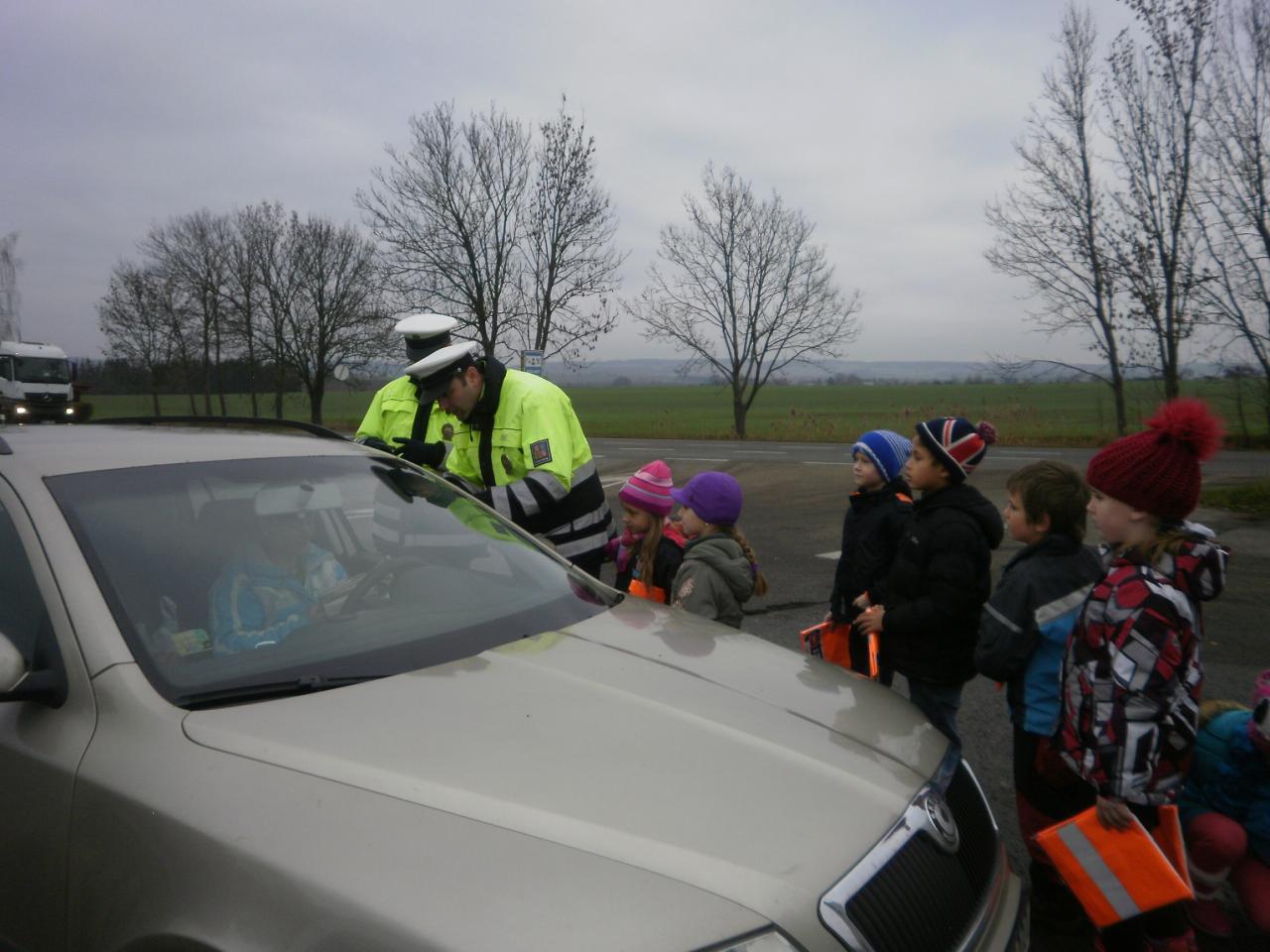 V pondělí se žáci 1. a 2.ročníku zúčastnili policejní akce Policie ČR pomáhá a chrání neoznačené účastníky silnic. V rámci prevence rozdávali řidičům reflexní vesty. Pro ty, kteří vestu u sebe měli, si děti připravily jako odměnu veselé smajlíky. Děkujeme pánům policistům, že nám umožnili vidět jejich práci a spolupracovat s nimi.