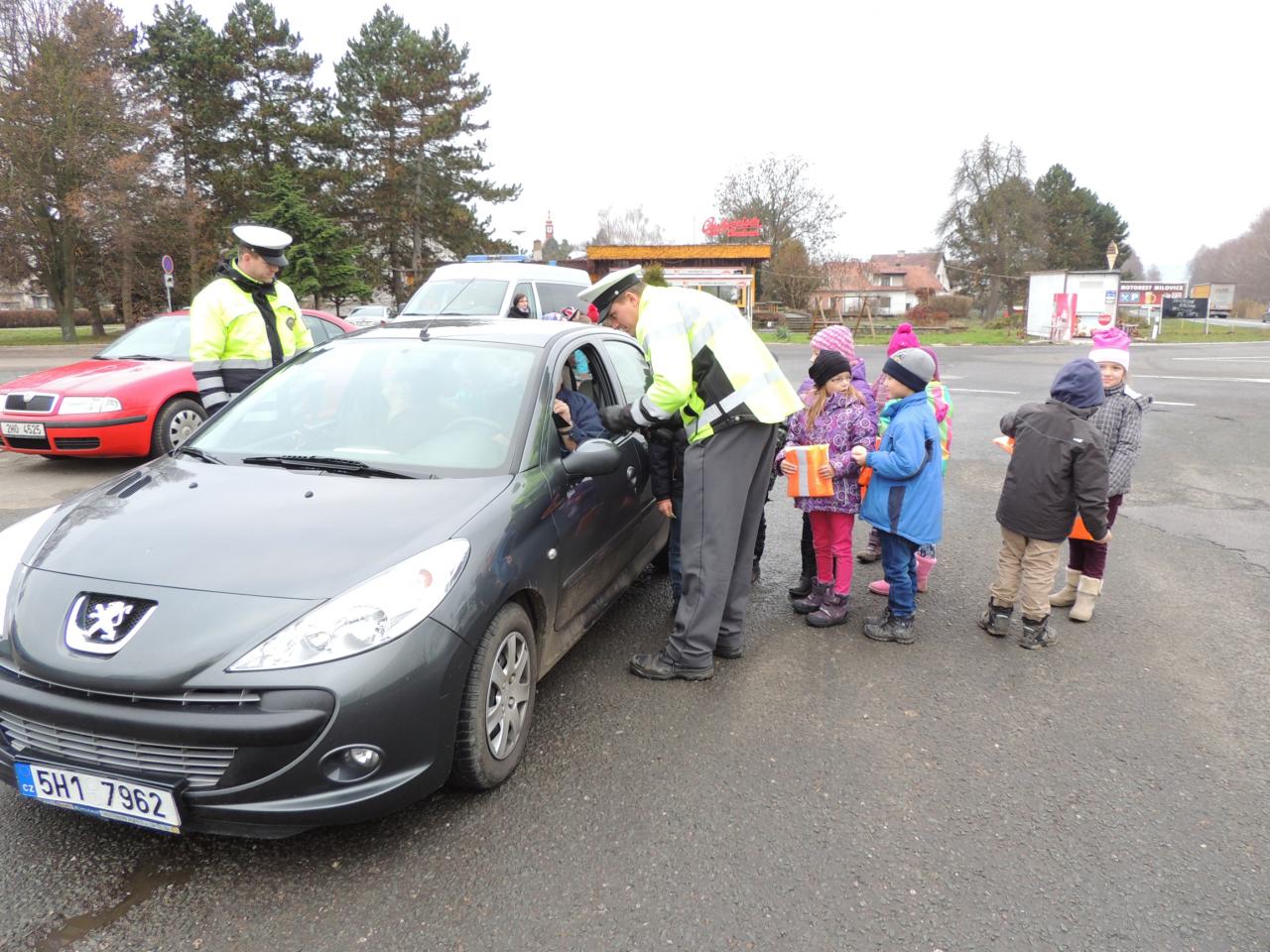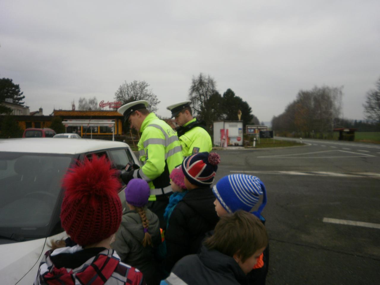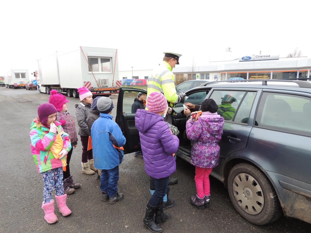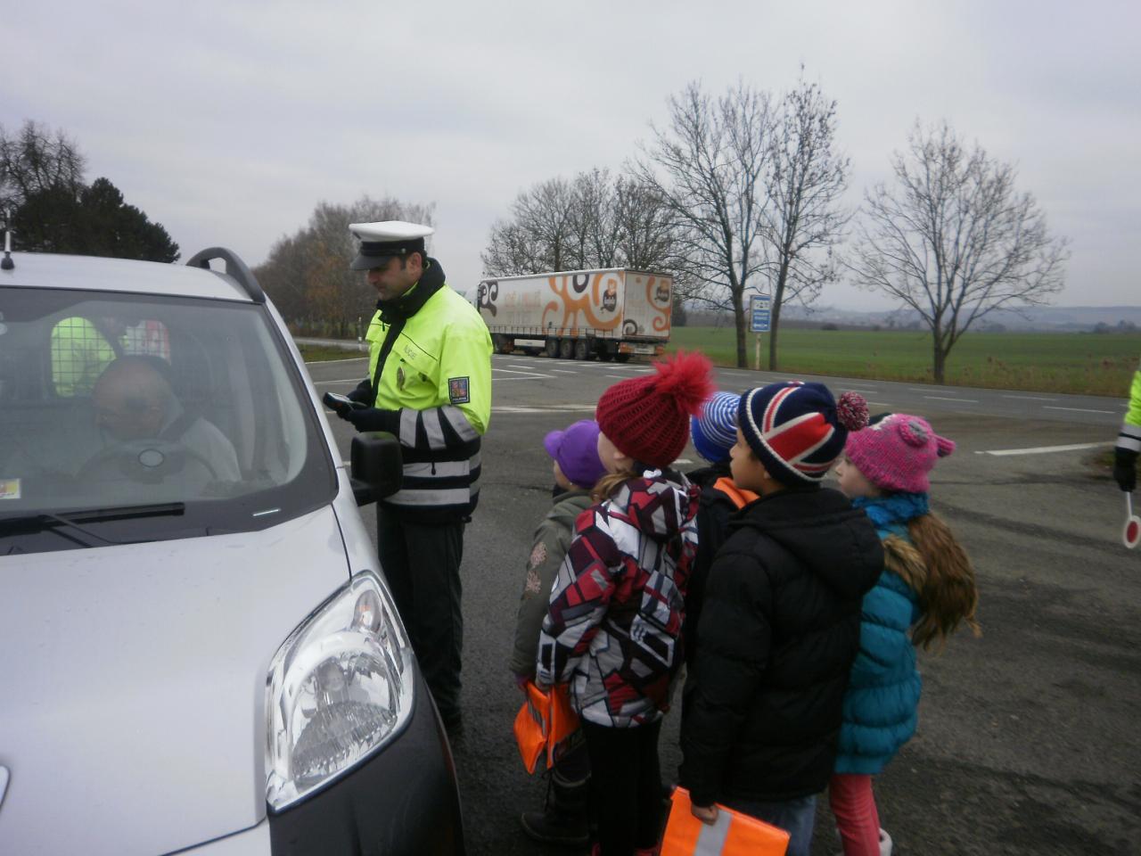 V pondělí se žáci 1. a 2.ročníku zúčastnili policejní akce Policie ČR pomáhá a chrání neoznačené účastníky silnic. V rámci prevence rozdávali řidičům reflexní vesty. Pro ty, kteří vestu u sebe měli, si děti připravily jako odměnu veselé smajlíky. Děkujeme pánům policistům, že nám umožnili vidět jejich práci a spolupracovat s nimi.