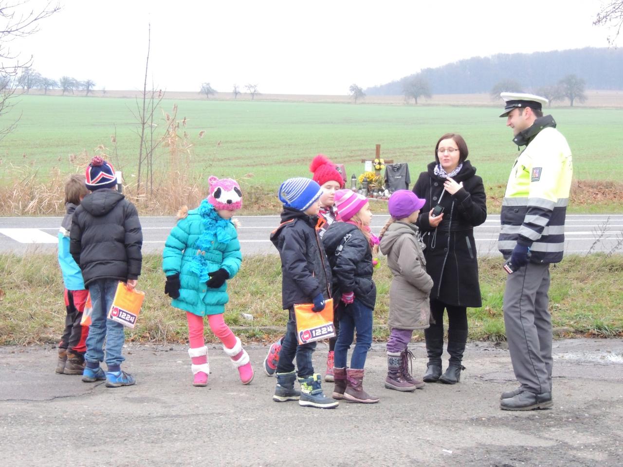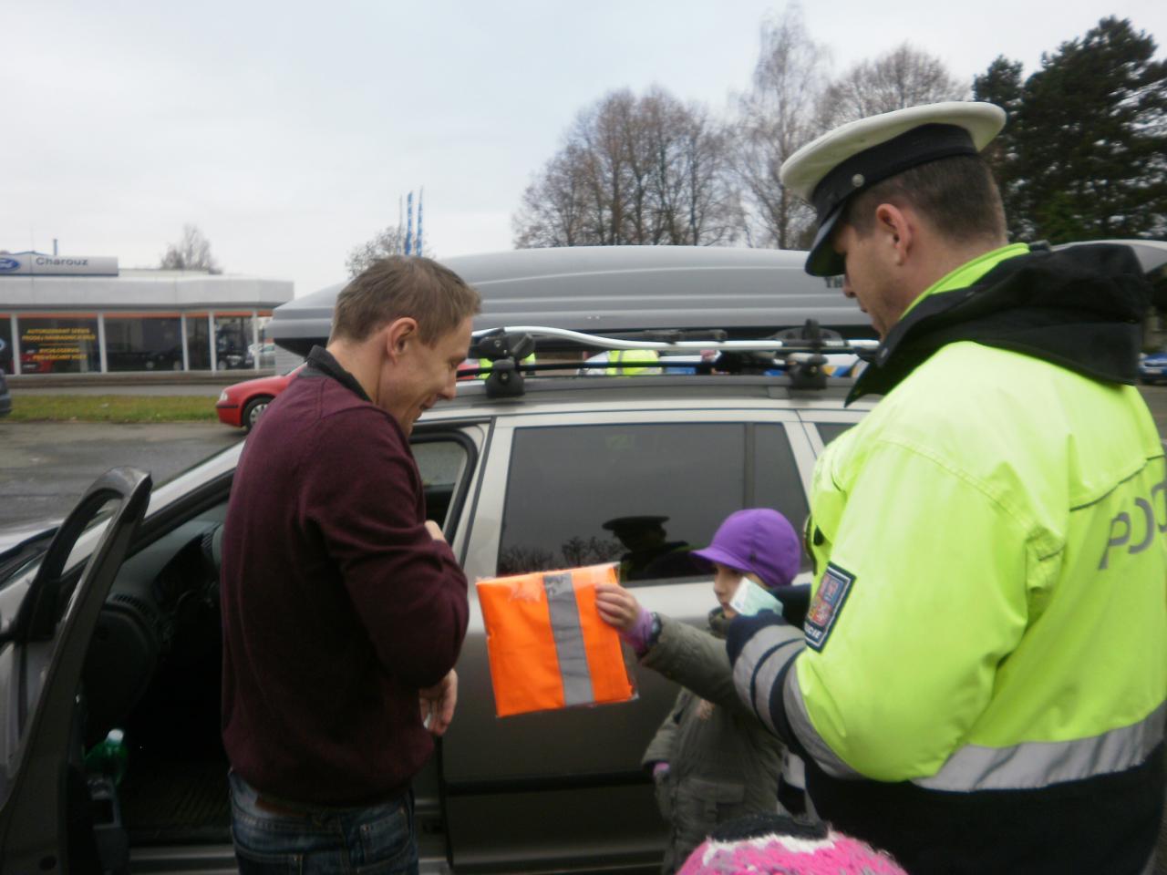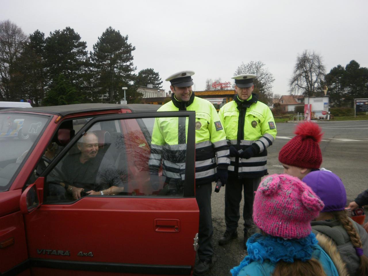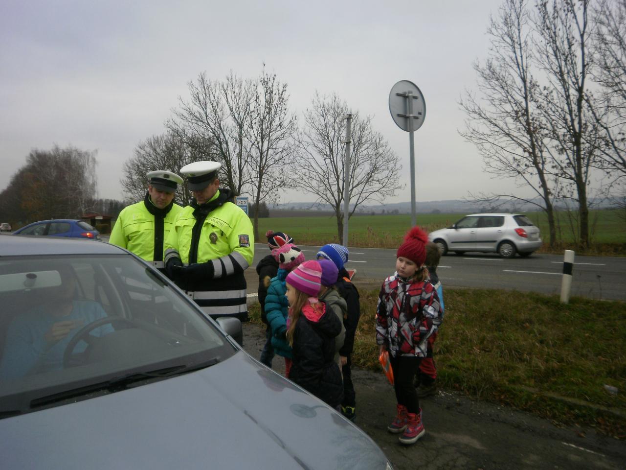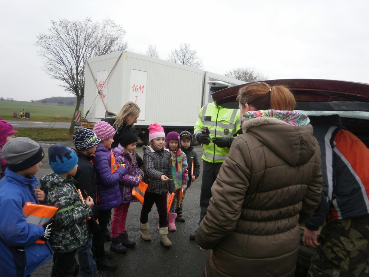 V pondělí se žáci 1. a 2.ročníku zúčastnili policejní akce Policie ČR pomáhá a chrání neoznačené účastníky silnic. V rámci prevence rozdávali řidičům reflexní vesty. Pro ty, kteří vestu u sebe měli, si děti připravily jako odměnu veselé smajlíky. Děkujeme pánům policistům, že nám umožnili vidět jejich práci a spolupracovat s nimi.