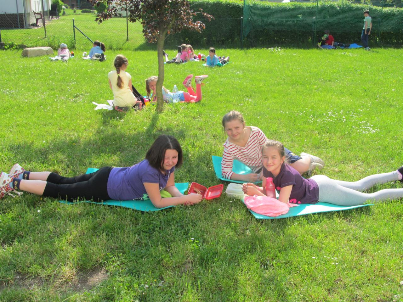Když je venku pěkné počasí, trávíme velkou přestávku na školní zahradě a pořádně si to užíváme!