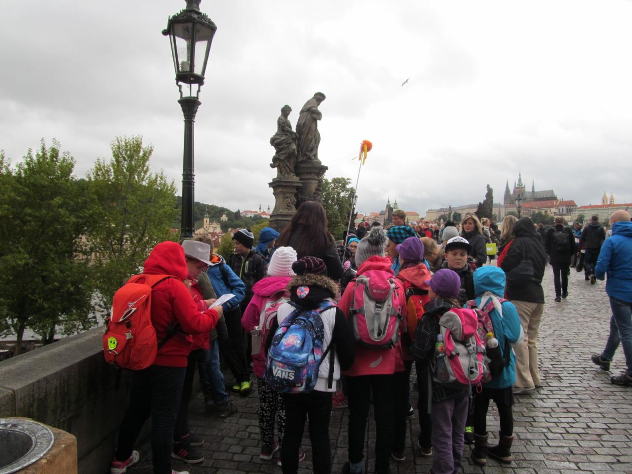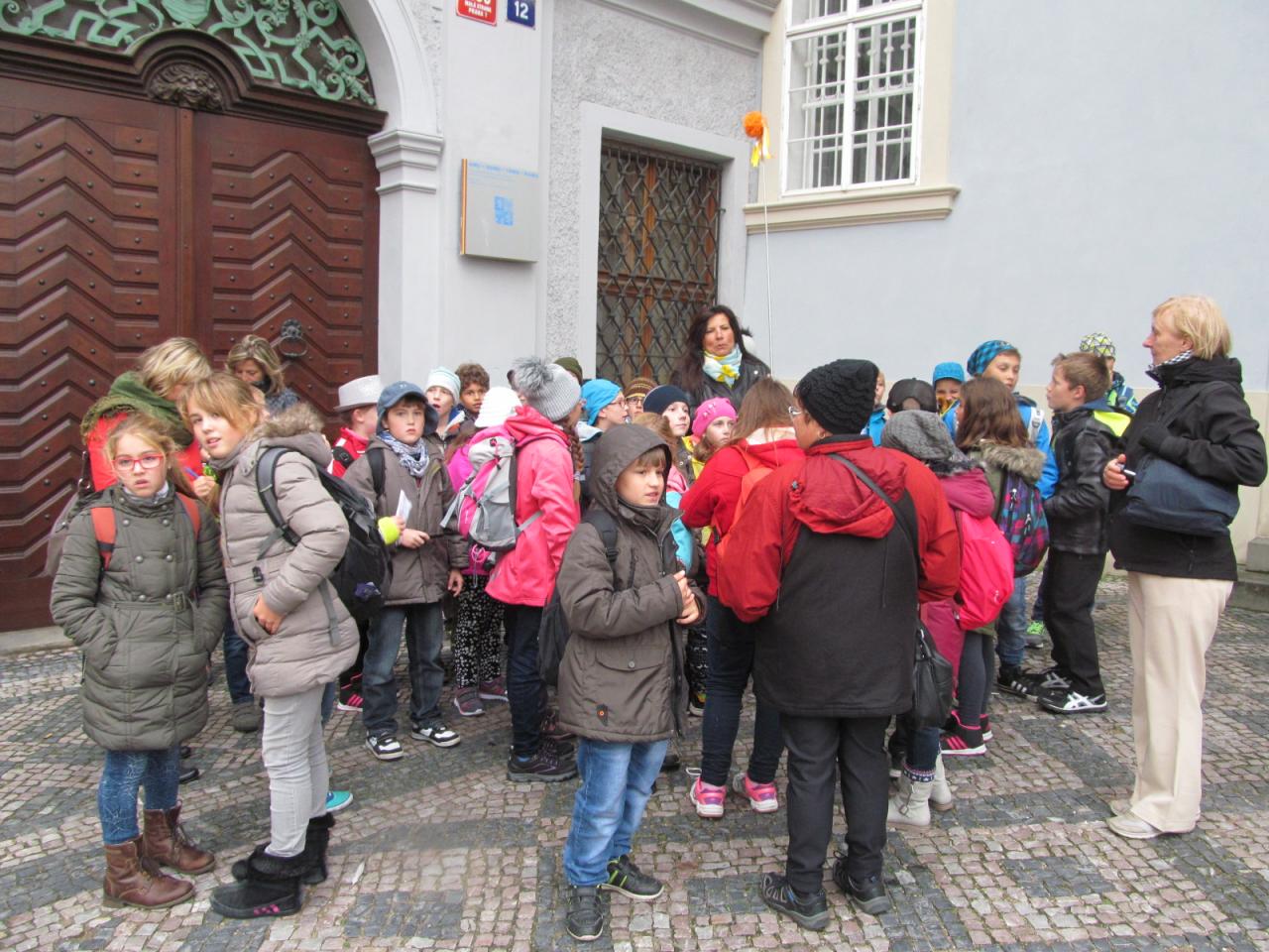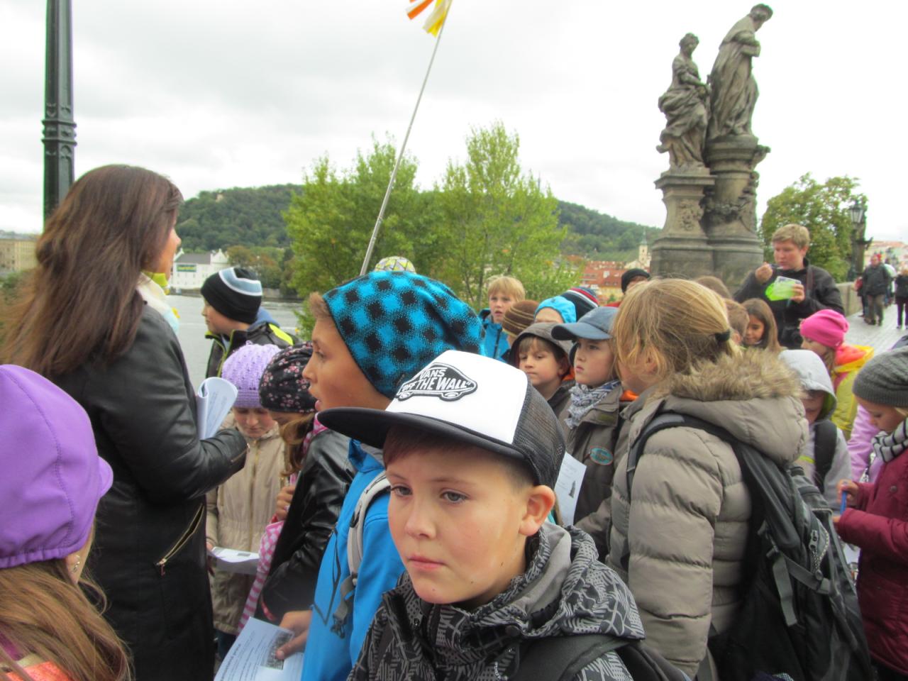 Ve čtvrtek 6. října navštívili žáci 3. - 5. ročníku naše hlavní město. Nejdříve je čekal muzikál "Alenka v kraji zázraků" v Divadle Hybernia, potom se vydali po stopách Karla IV. na Staroměstské náměstí, pokračovali na Karlův most, kde plnili úkoly z pracovního listu a nakonec si na Pražském hradě prohlédli Katedrálu svatého Víta.