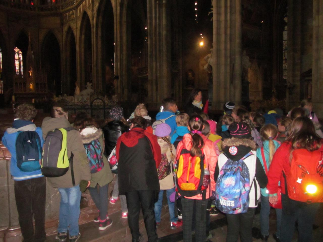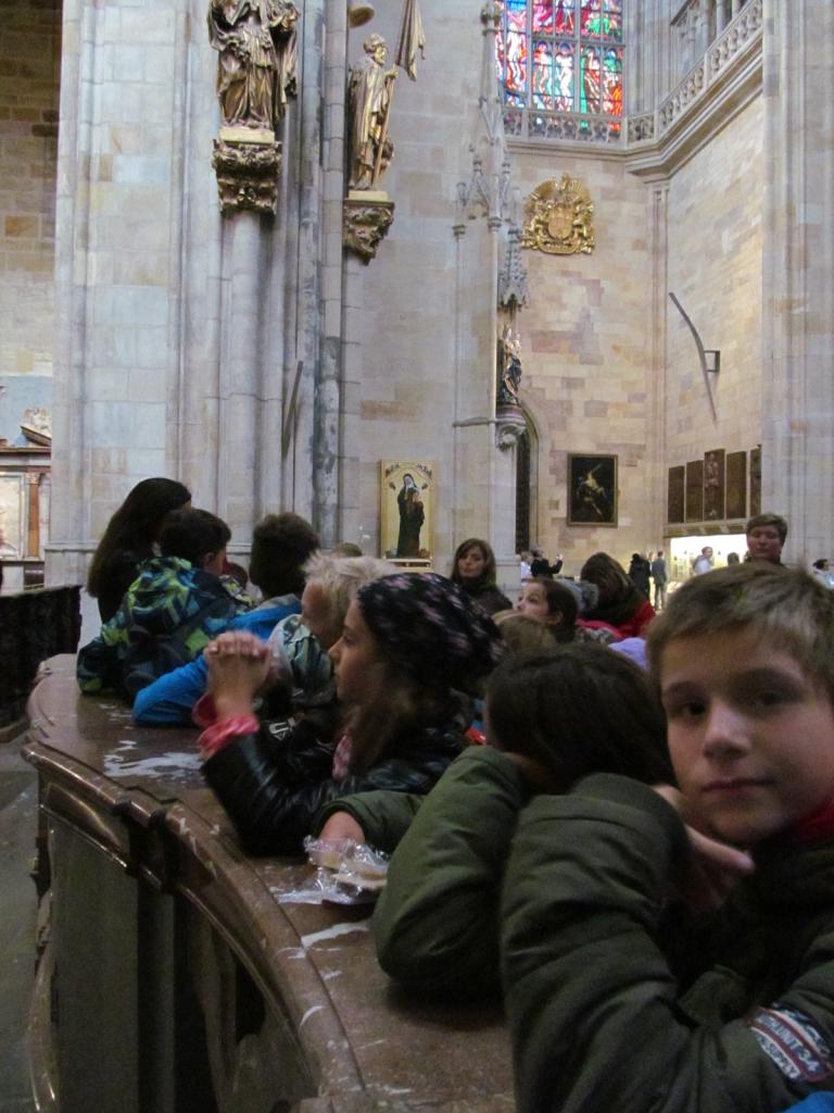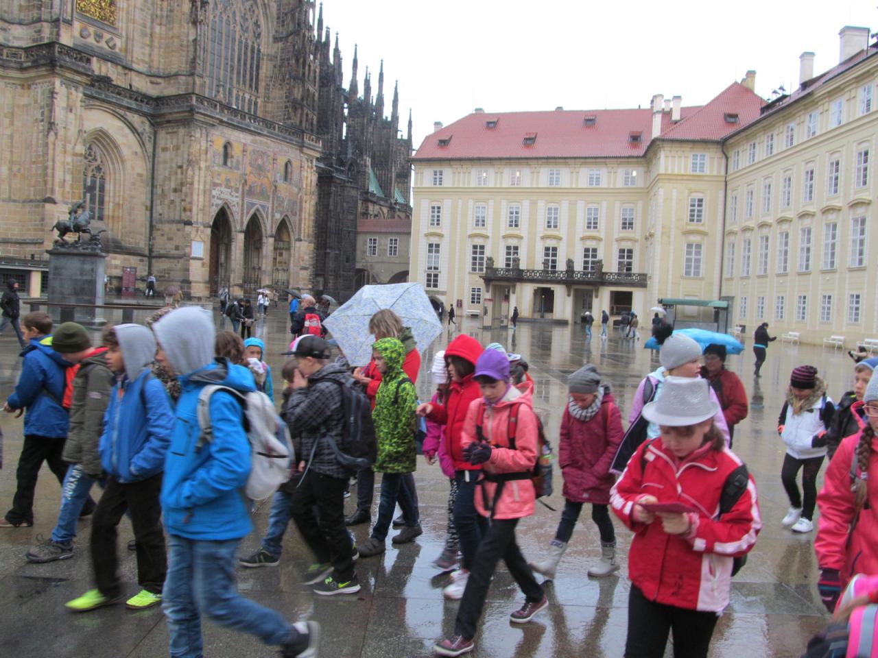 Ve čtvrtek 6. října navštívili žáci 3. - 5. ročníku naše hlavní město. Nejdříve je čekal muzikál "Alenka v kraji zázraků" v Divadle Hybernia, potom se vydali po stopách Karla IV. na Staroměstské náměstí, pokračovali na Karlův most, kde plnili úkoly z pracovního listu a nakonec si na Pražském hradě prohlédli Katedrálu svatého Víta.