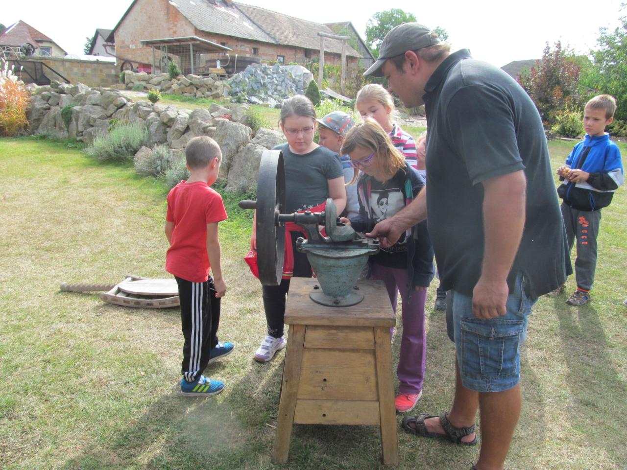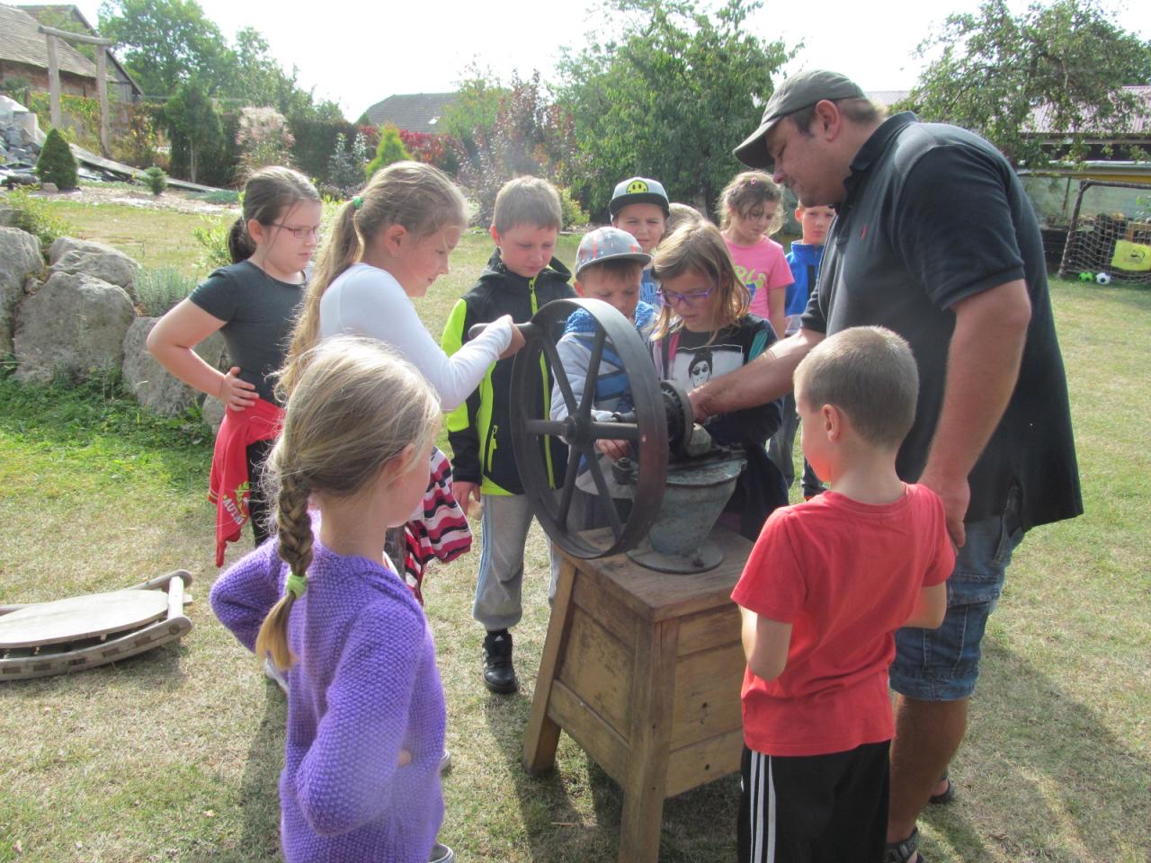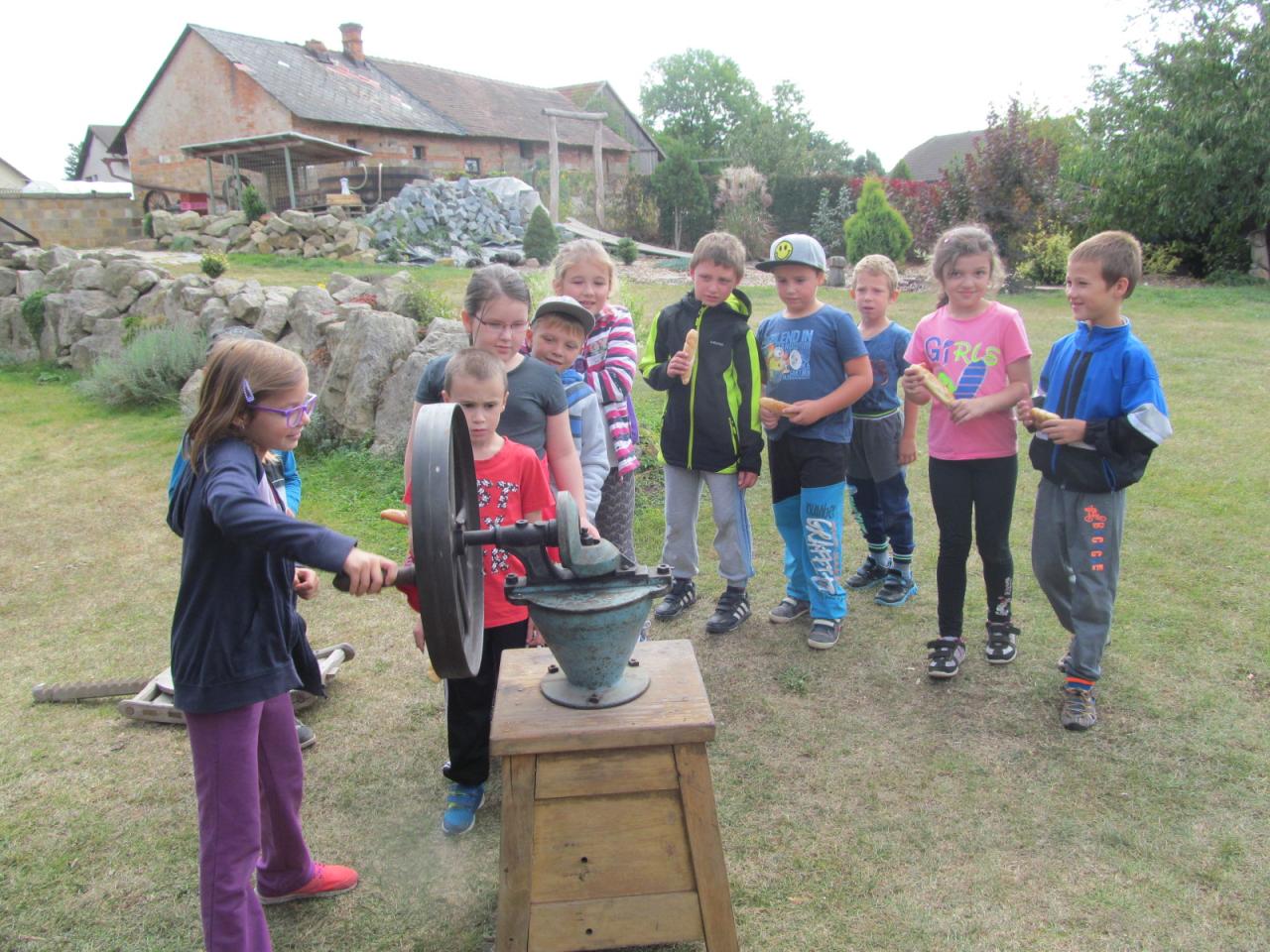 V pátek 30. září 2016 jsme v rámci celoročního projektu "Cestujeme časem" přijali pozvání od rodičů Emičky Brantové ze 3. ročníku. Na zahradě si pro nás připravili poznávačku starých předmětů, ukázku některých historických strojů i vynikající muffiny a jablečný mošt. Děkujeme za poučné i zábavné dopoledne!
