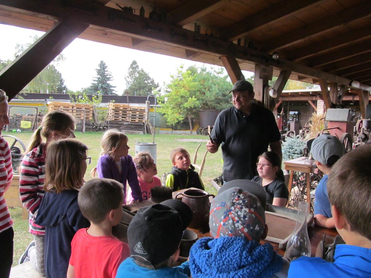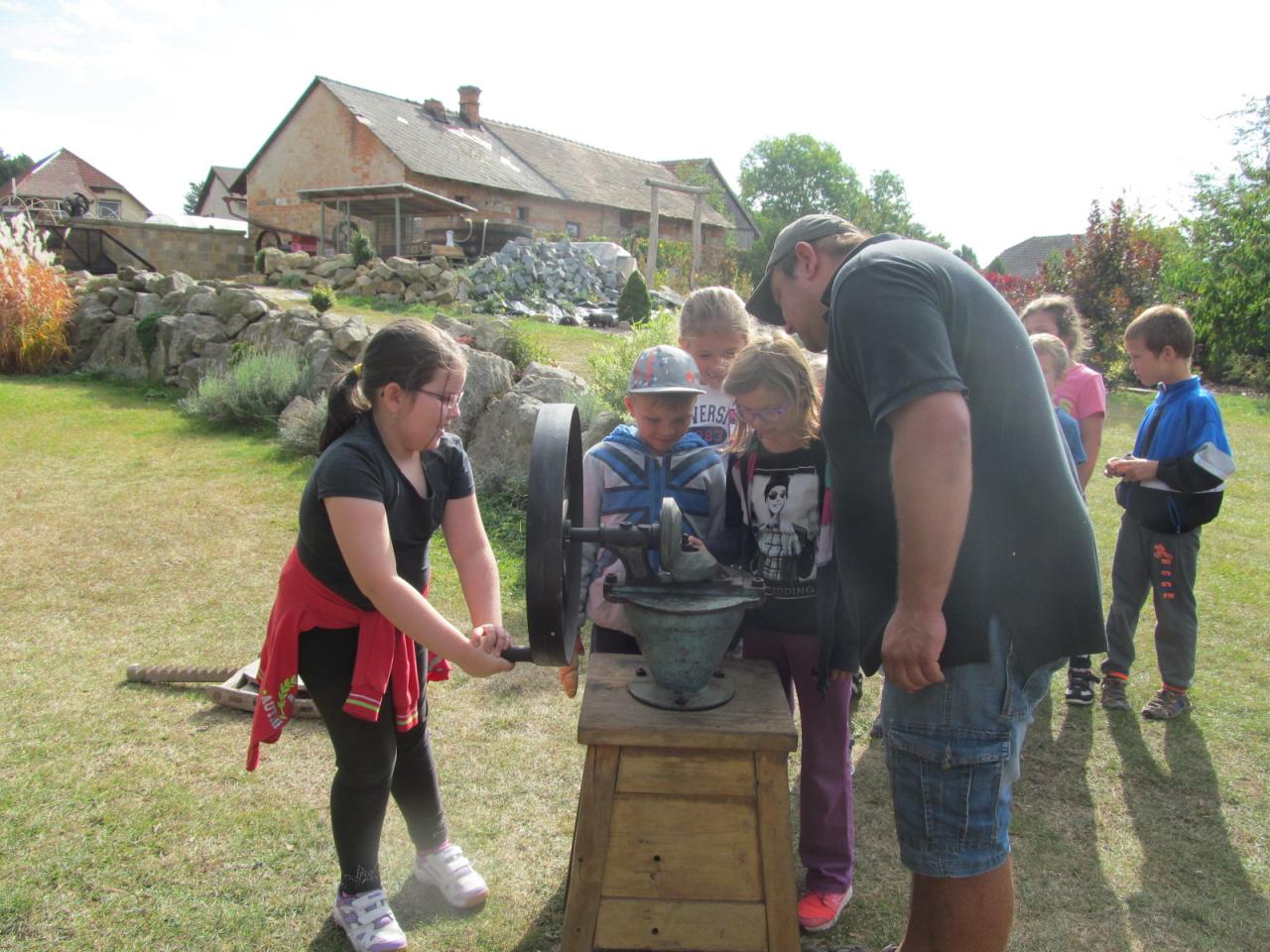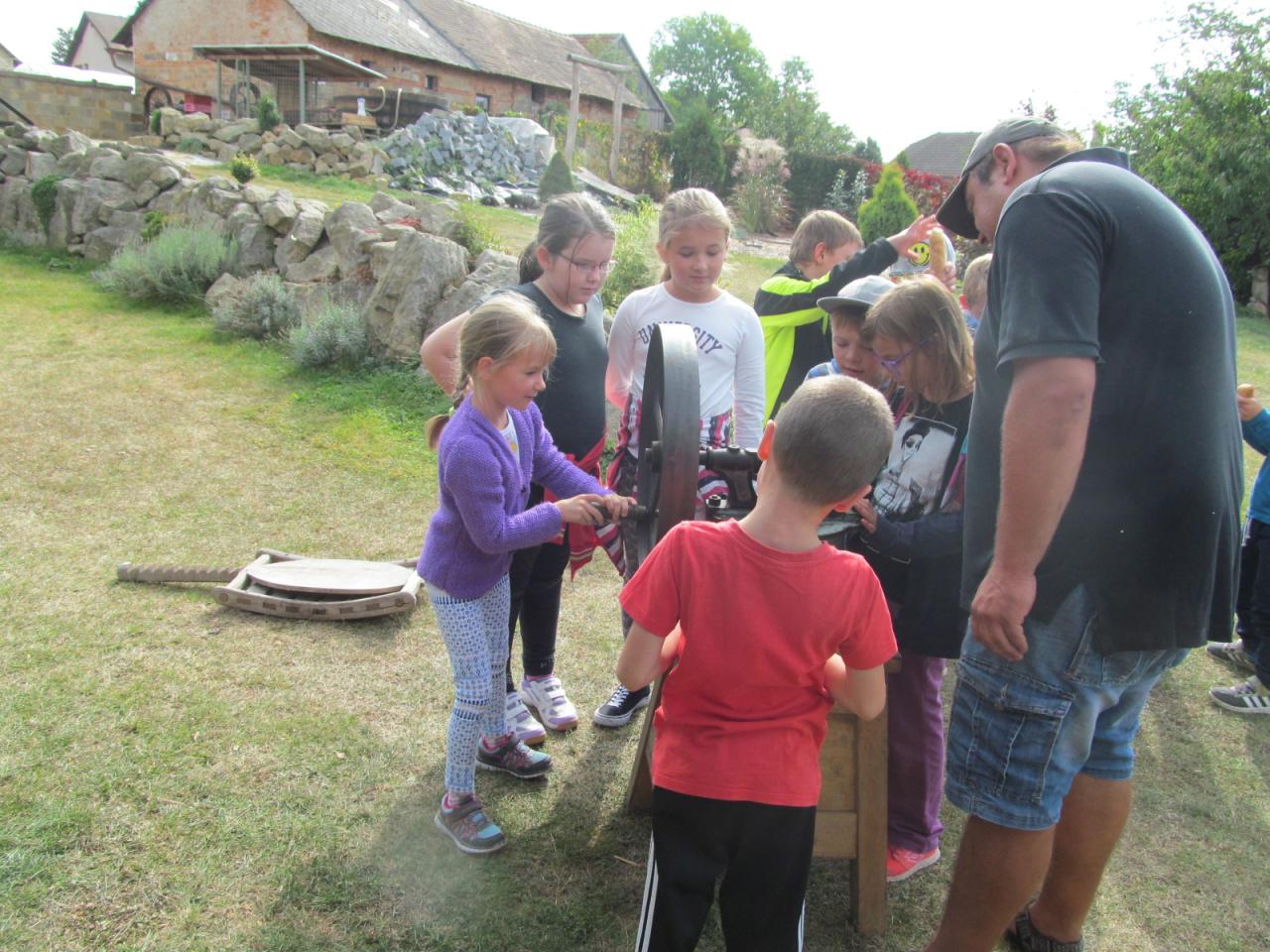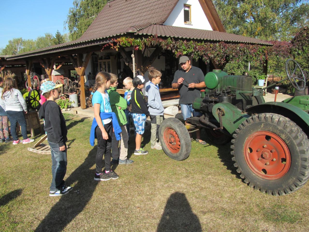 V pátek 30. září 2016 jsme v rámci celoročního projektu "Cestujeme časem" přijali pozvání od rodičů Emičky Brantové ze 3. ročníku. Na zahradě si pro nás připravili poznávačku starých předmětů, ukázku některých historických strojů i vynikající muffiny a jablečný mošt. Děkujeme za poučné i zábavné dopoledne!