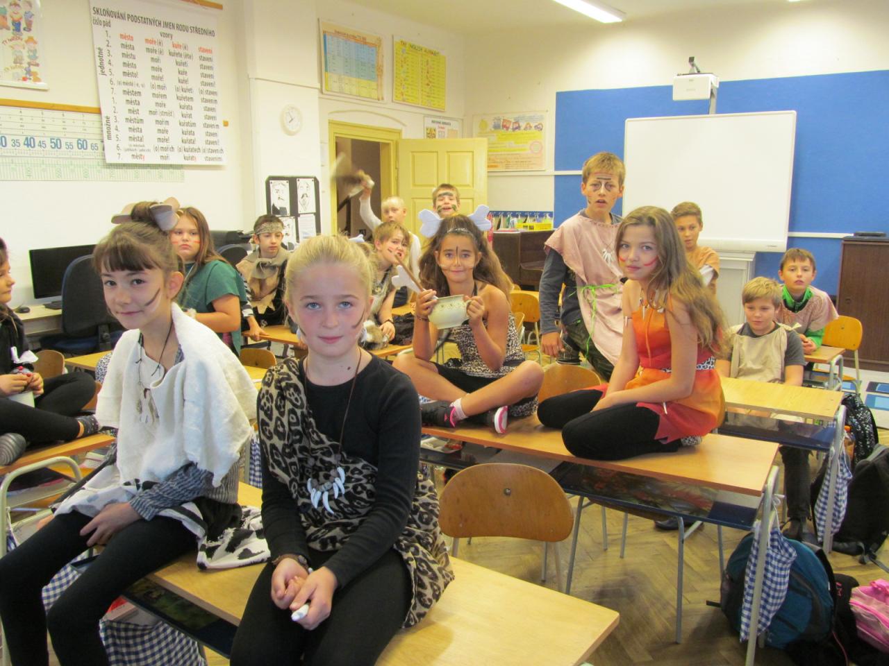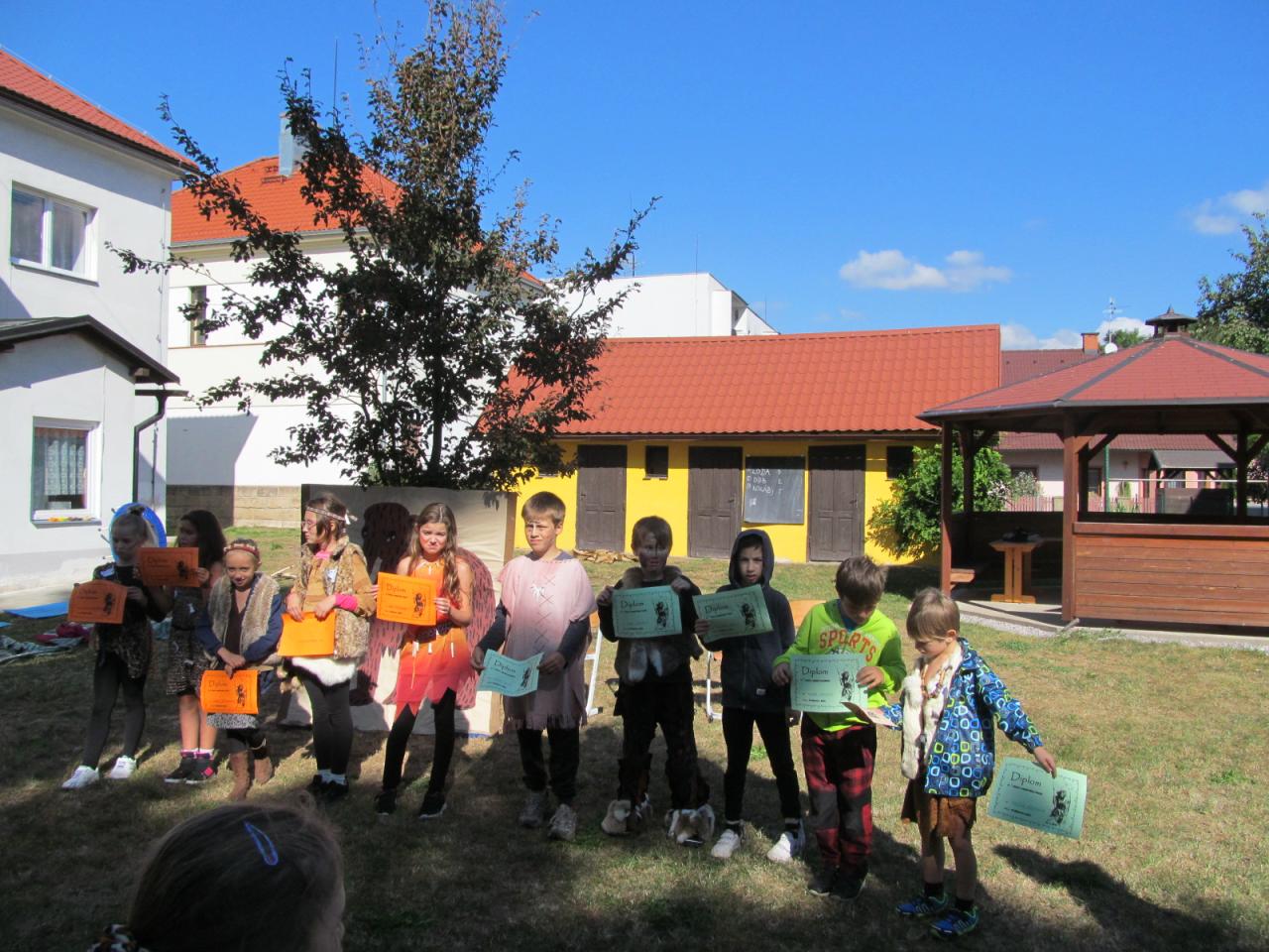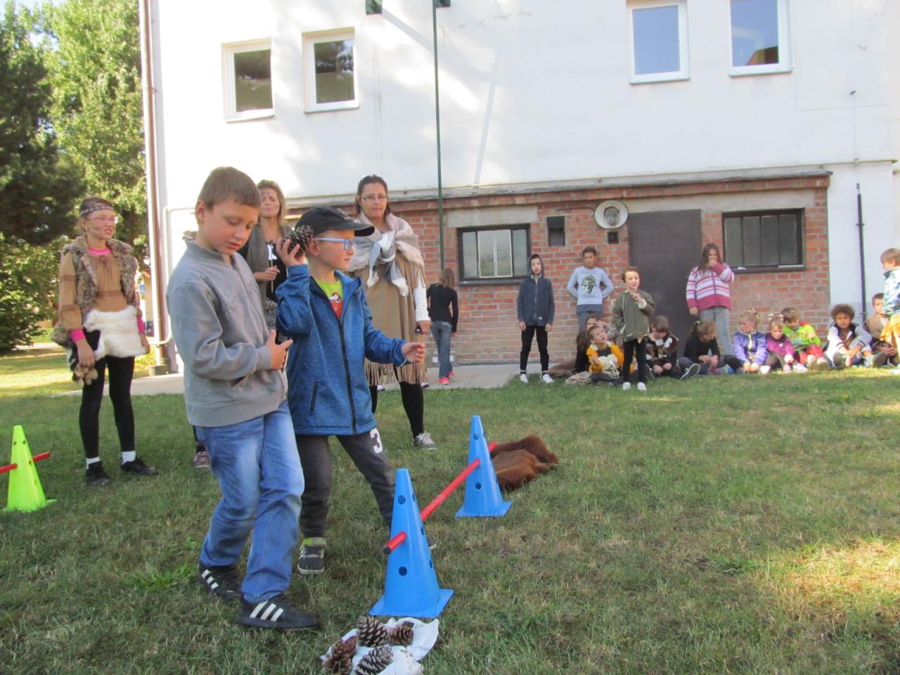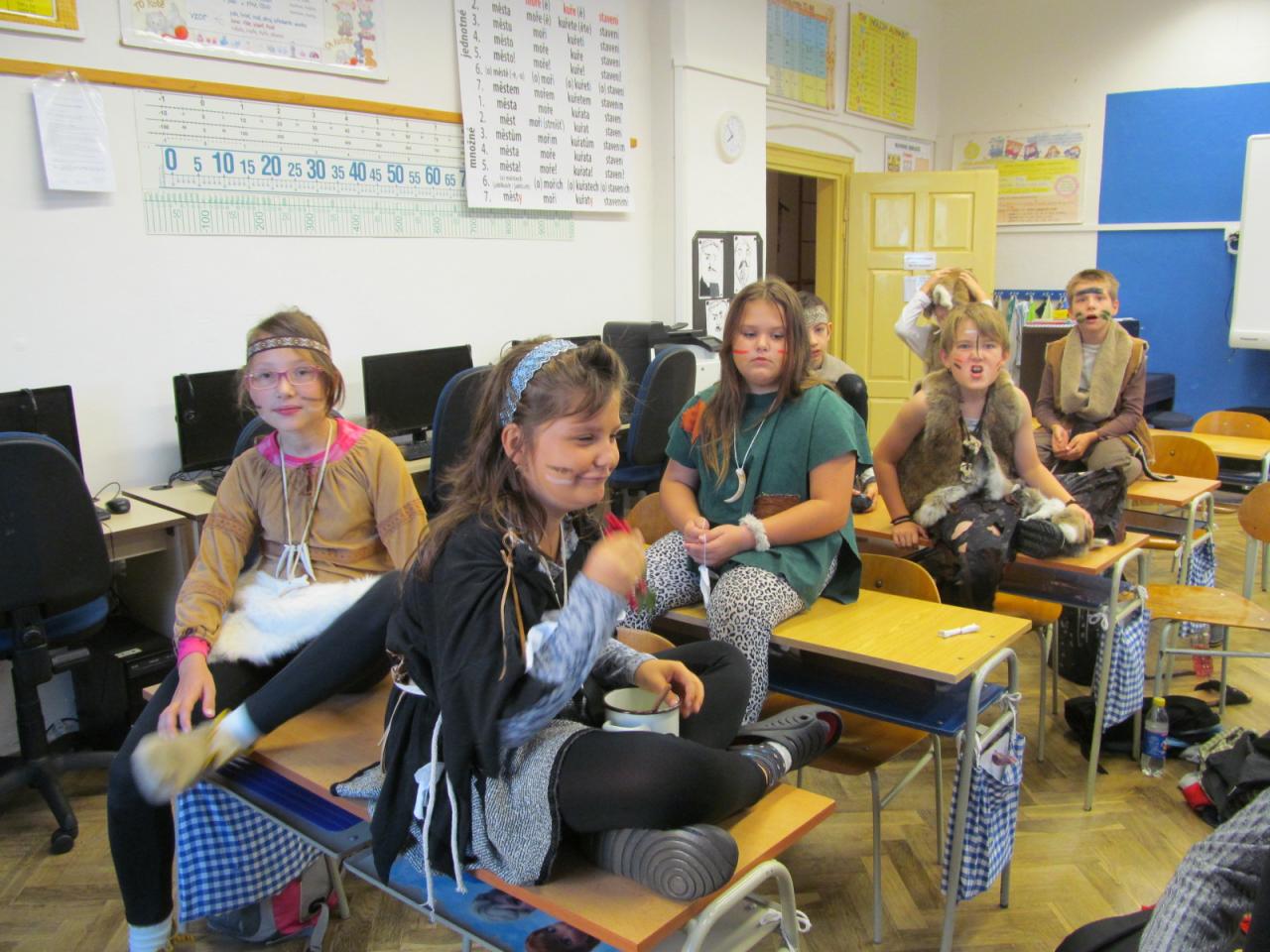 Ve čtvrtek 22. září proběhla v naší škole pravěká olympiáda. Pravěcí lidé se rozdělili do tlup, ve kterých plnili zadané úkoly - vyrobili si vlajku a misku na vodu. Také se volila Miss Pravěk a PravěkMan a v pravěké olympiádě pak všichni vyzkoušeli své dovednosti při štafetovém běhu s kostí, střelbou na mamuta, přenášení vody a dalších.