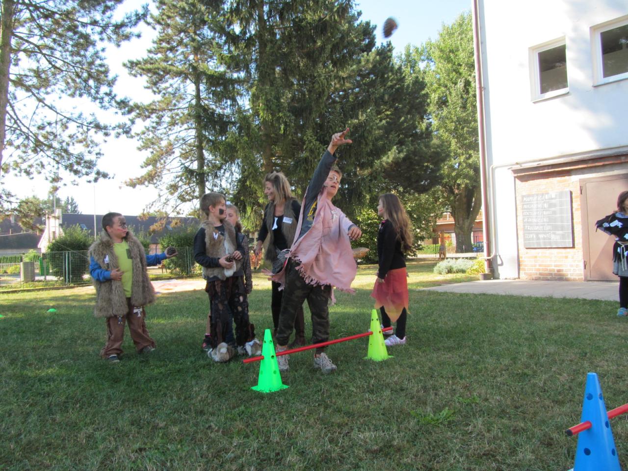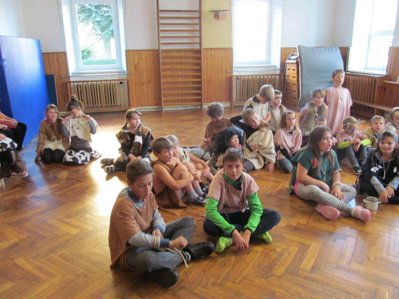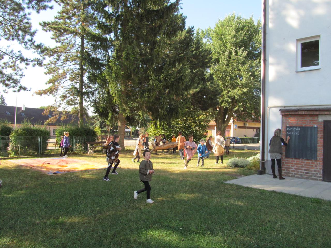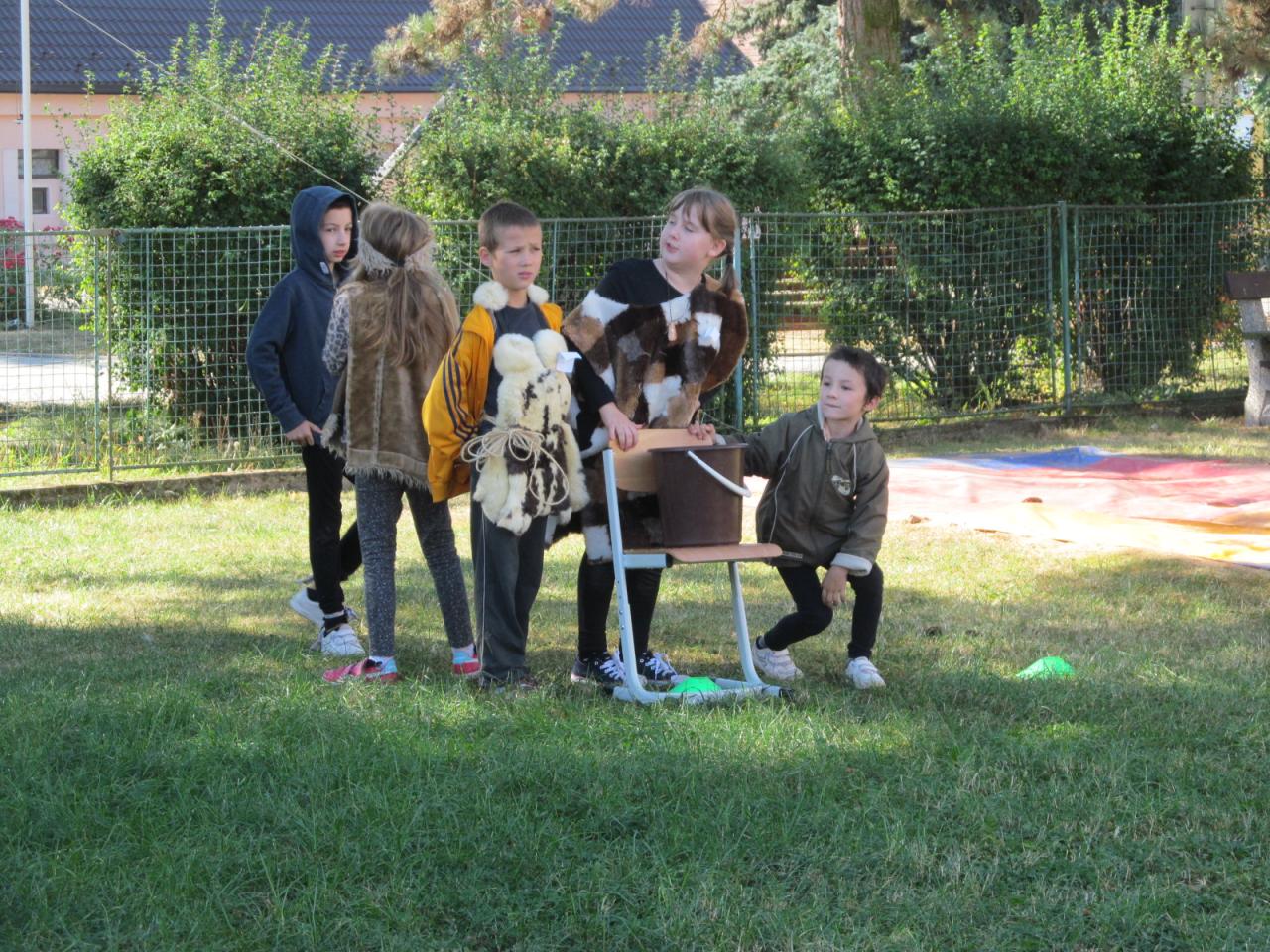Ve čtvrtek 22. září proběhla v naší škole pravěká olympiáda. Pravěcí lidé se rozdělili do tlup, ve kterých plnili zadané úkoly - vyrobili si vlajku a misku na vodu. Také se volila Miss Pravěk a PravěkMan a v pravěké olympiádě pak všichni vyzkoušeli své dovednosti při štafetovém běhu s kostí, střelbou na mamuta, přenášení vody a dalších.
