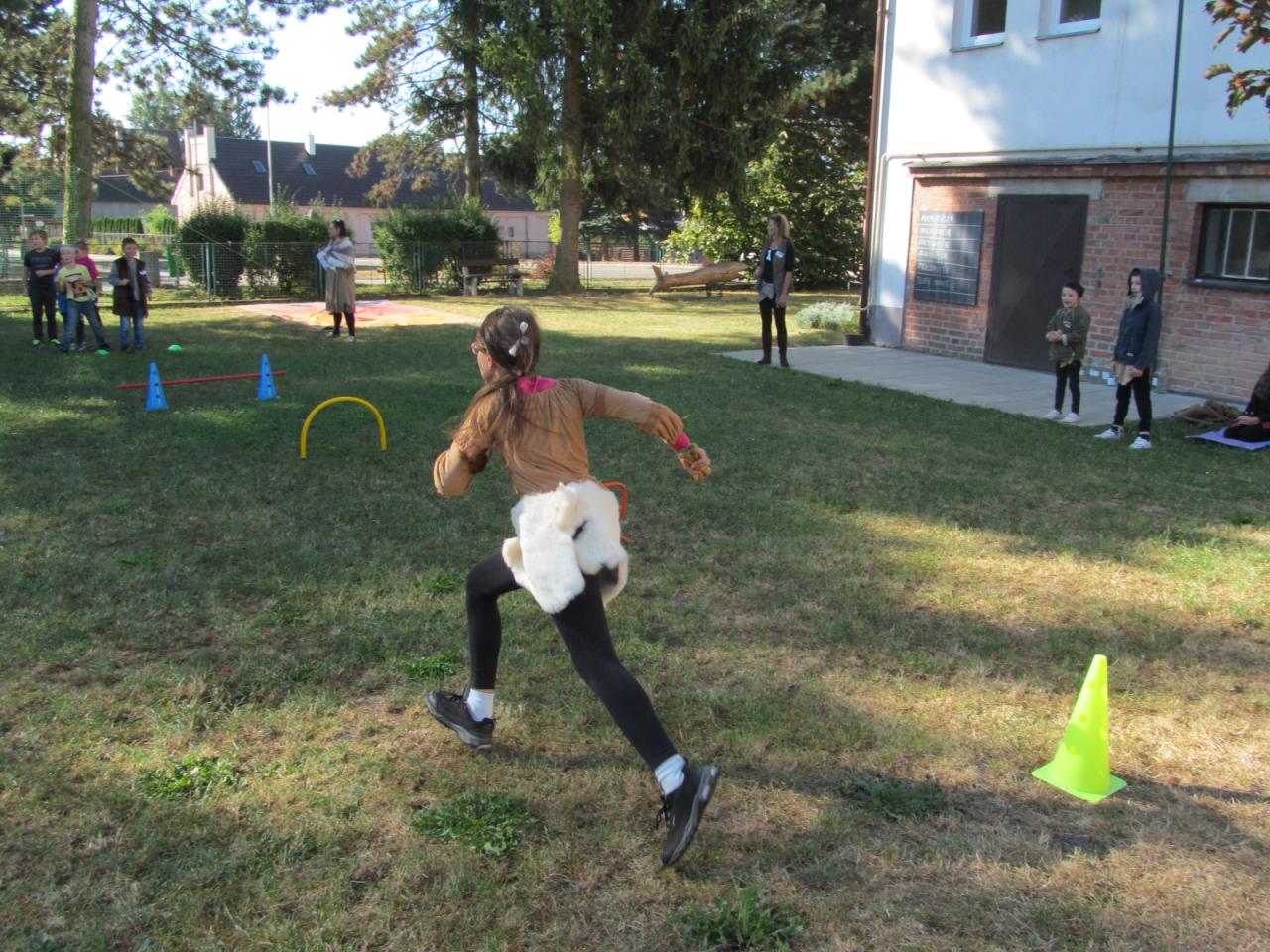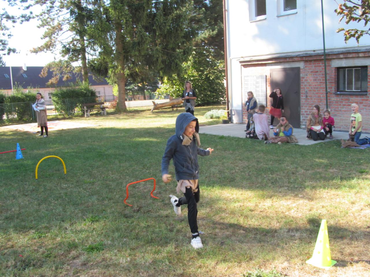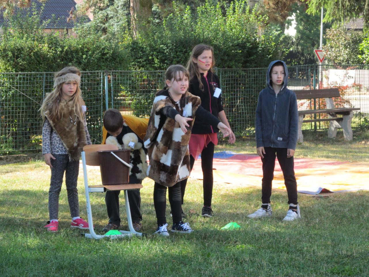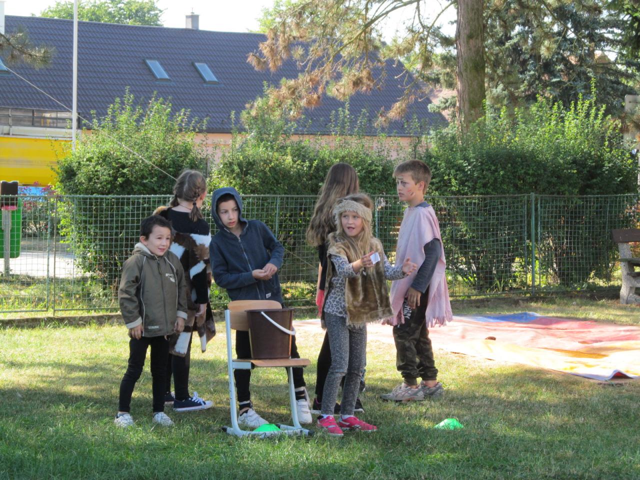 Ve čtvrtek 22. září proběhla v naší škole pravěká olympiáda. Pravěcí lidé se rozdělili do tlup, ve kterých plnili zadané úkoly - vyrobili si vlajku a misku na vodu. Také se volila Miss Pravěk a PravěkMan a v pravěké olympiádě pak všichni vyzkoušeli své dovednosti při štafetovém běhu s kostí, střelbou na mamuta, přenášení vody a dalších.