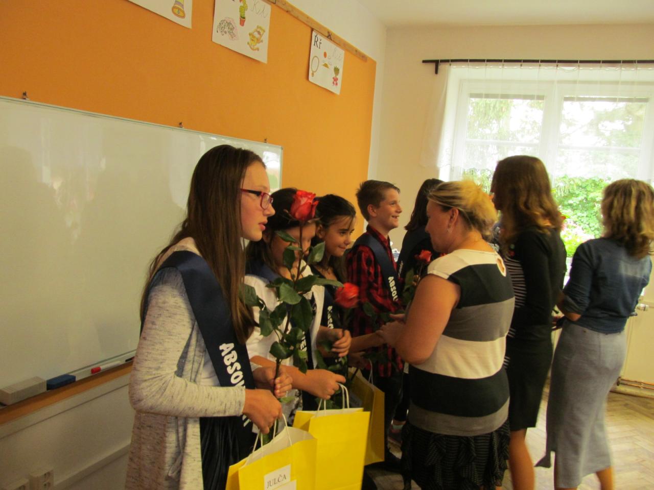 Ve čtvrtek 28. června odpoledne se ve škole sešli rodiče a starší žáci, aby se všichni společně rozloučili s žáky pátého ročníku.