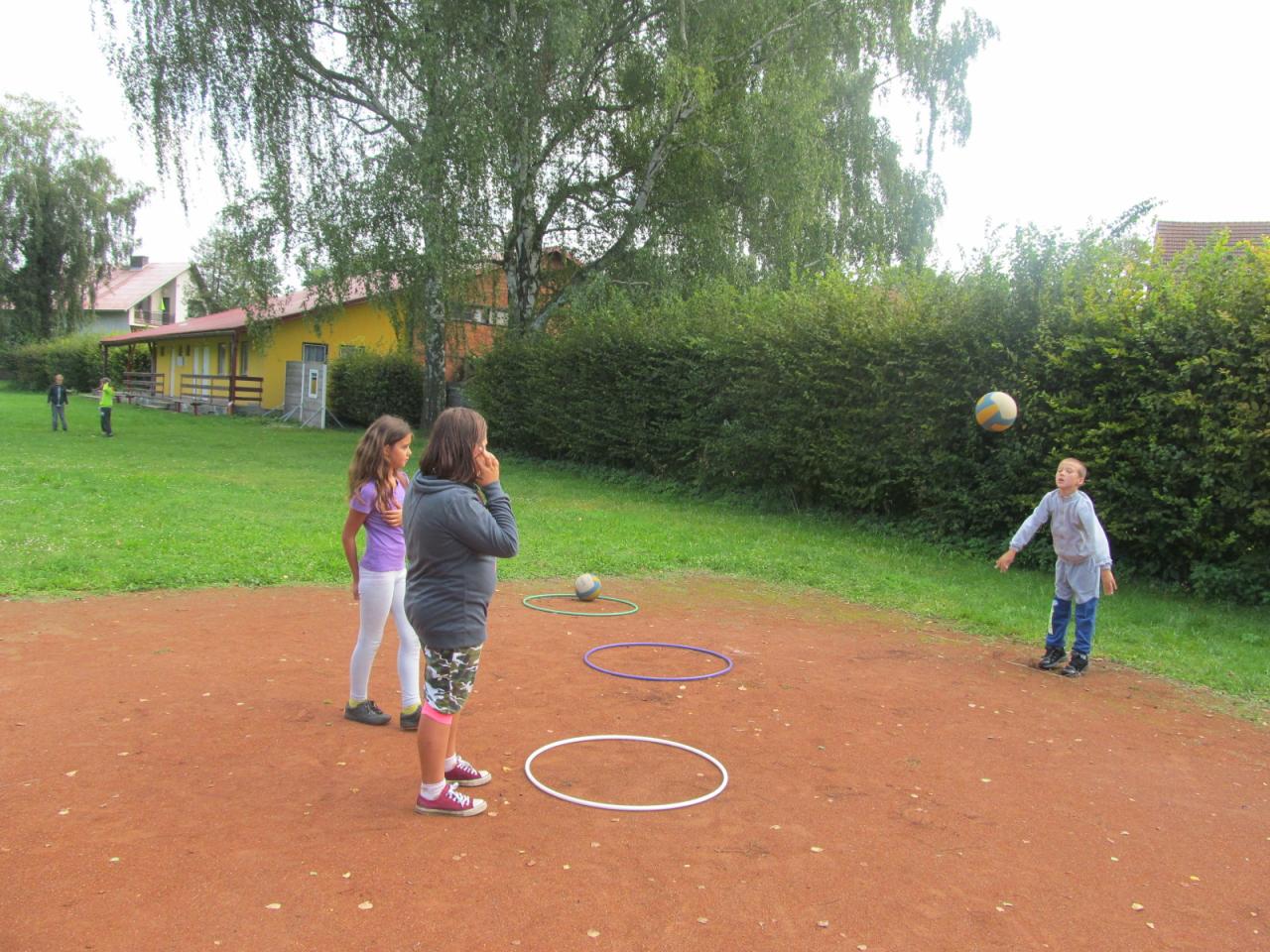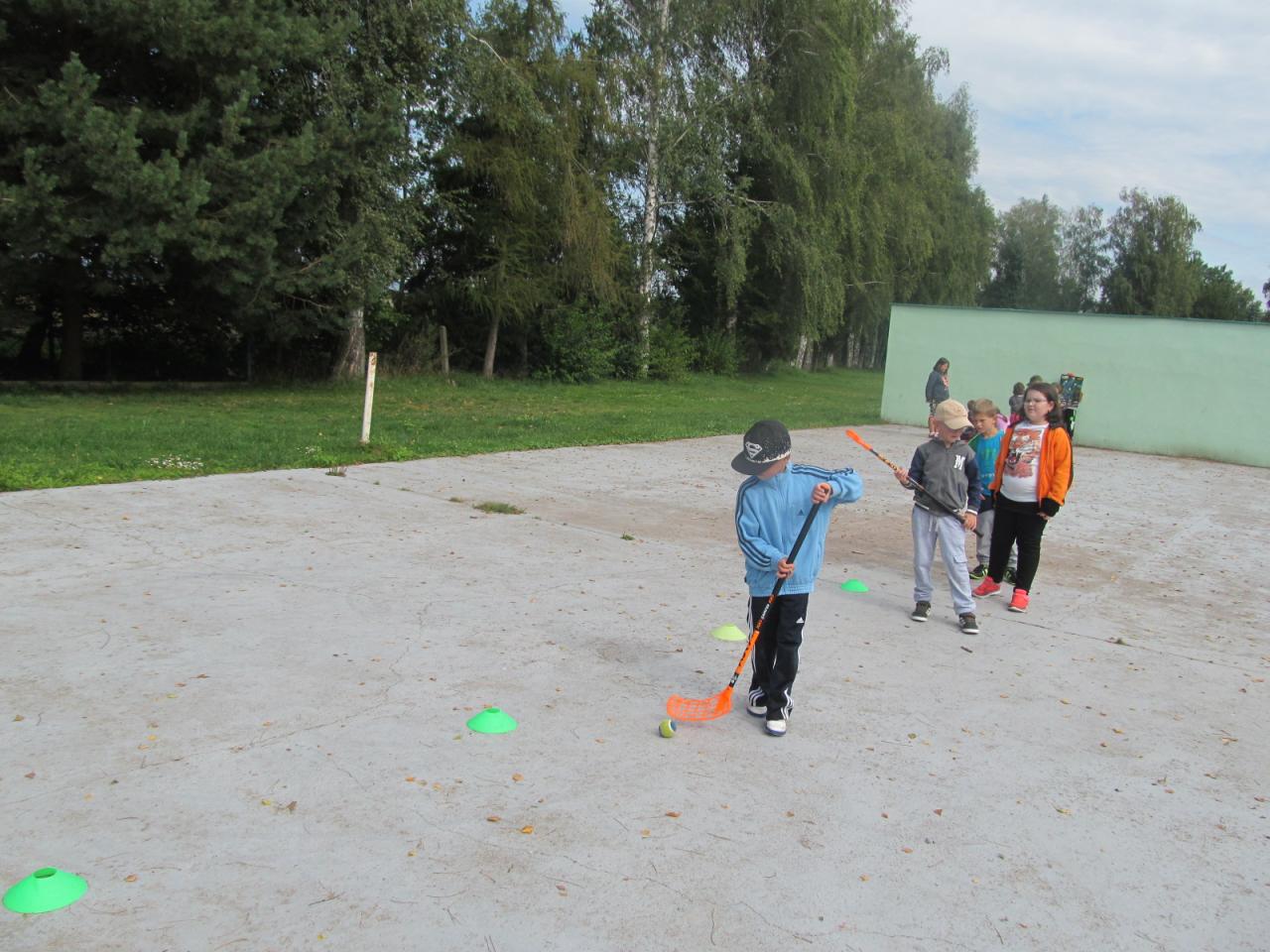 Hned druhý den ve škole si žáci 4. a 5. ročníku připravili pro mladší kamarády sportovní úkoly na stanovištích.