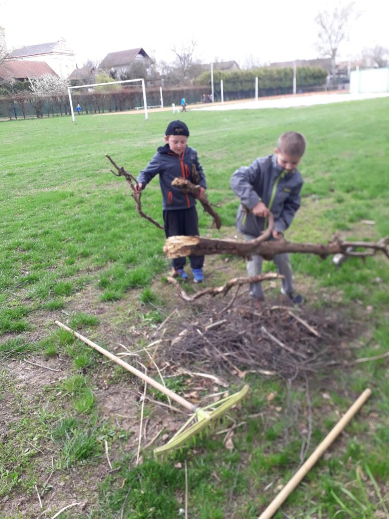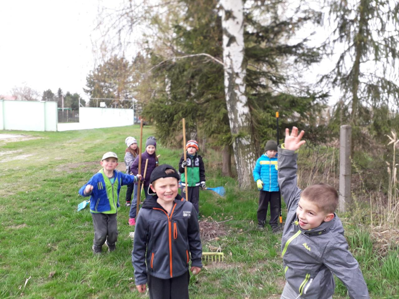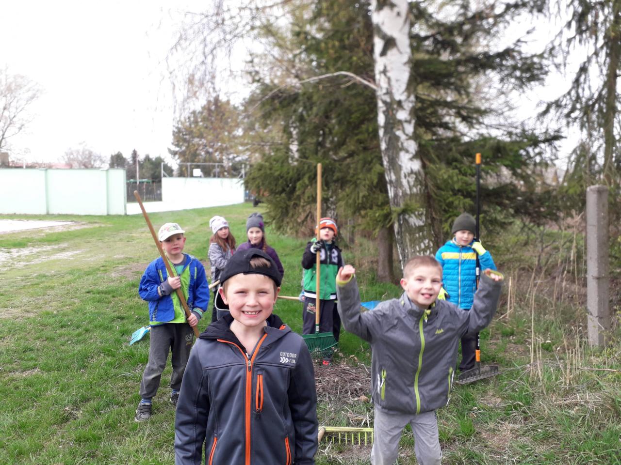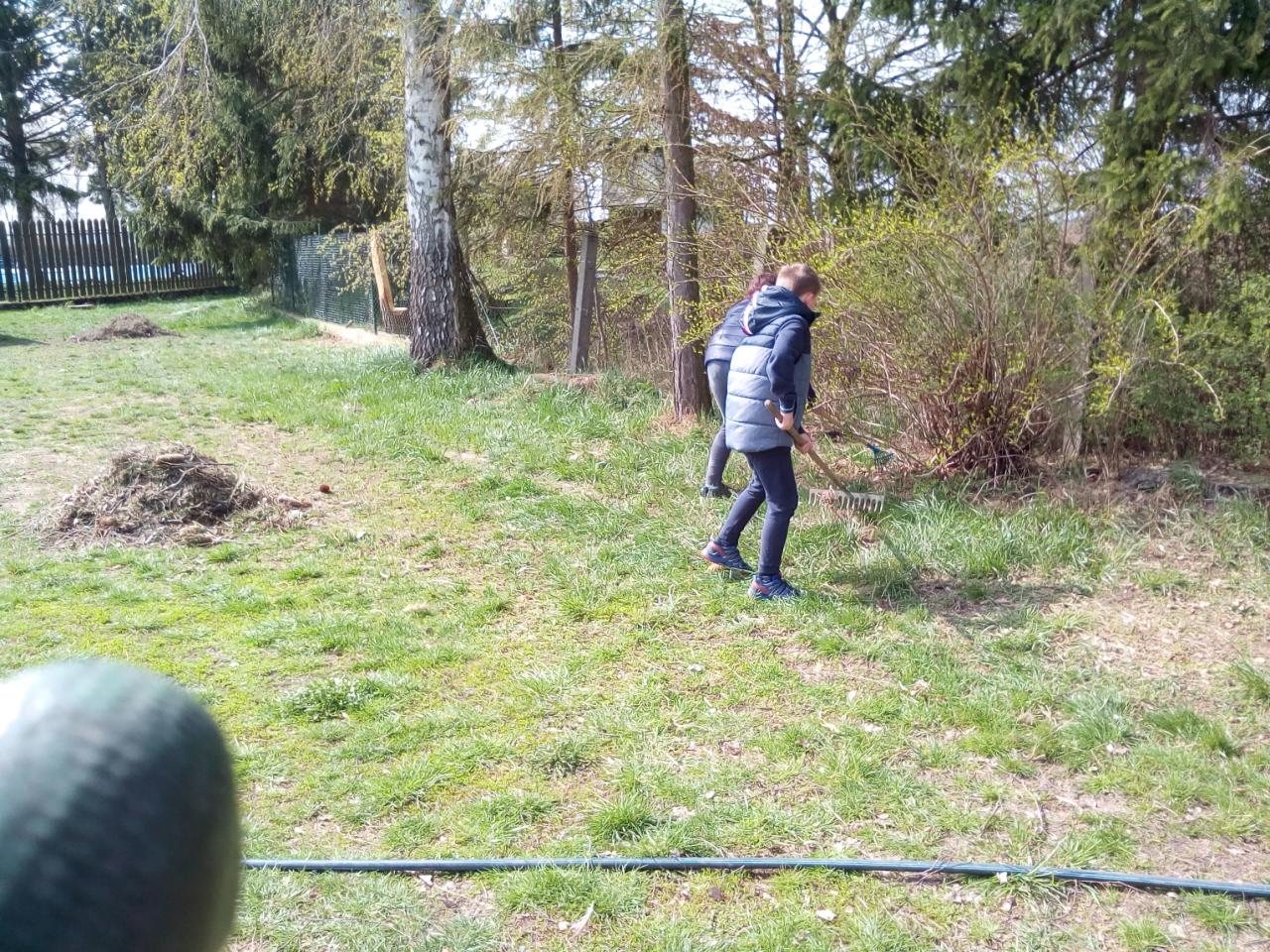 Ve čtvrtek 10.dubna jsme se vydali na milovické hřiště na jarní brigádu.
