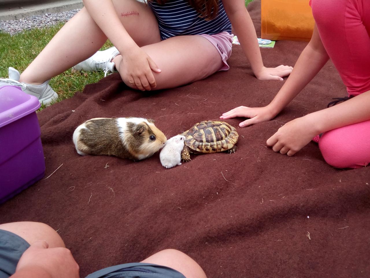 V pátek 21. června se naše škola zaplnila nejen žáky, ale také zvířátky. Děti mohly přinést svého mazlíčka a říci spolužákům, jak o něj pečují a co všechno potřebuje. Také nám přivezla paní Hájková několik zakrslých králíků a zhlédli jsme ukázku „Králičího hopu“.