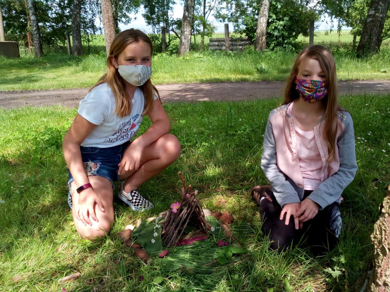 Při hodině slohu jsme na hřišti stavěli z přírodnin domečky pro skřítky a potom popisovali pracovní postup naší stavby.